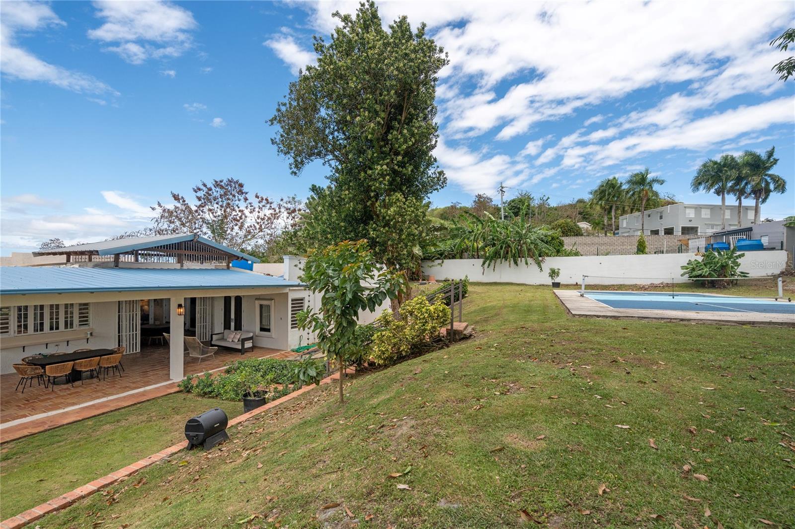 Escondida em uma área privada e tranquila de Carmen Hills, esta propriedade construída sob medida captura a essência da vida no campo em Guaynabo, cercada por vistas da montanha e um ambiente natural e tranquilo, mas a poucos minutos de tudo que você precisa. A residência principal possui 3 quartos e 2,5 banheiros, com espaços confortáveis que se abrem para um terraço coberto, criando um fluxo fácil para a vida cotidiana e entretenimento. Tetos altos e vistas panorâmicas melhoram a sensação de espaço, enquanto a casa permanece alicerçada na sua conexão com a natureza. No nível inferior, uma espaçosa suíte bônus com banheiro completo e entrada privativa oferece flexibilidade para hóspedes, familiares ou um retiro privado. Ao ar livre, a propriedade se desdobra em um grande quintal com piscina, quadra de pickleball e amplo quintal. Uma casa com piscina separada com tetos altos, vista para a montanha e para a piscina e um banheiro completo complementam a experiência, além de um quarto adicional atualmente usado como academia. Localizada em condomínio fechado, a casa conta ainda com gerador de energia, cisterna e aquecedor solar, oferecendo conforto e confiabilidade o ano todo. Esta é uma casa que oferece espaço, privacidade e uma verdadeira conexão com a natureza, tudo a uma curta distância de carro das melhores escolas, restaurantes e conveniências do dia a dia.