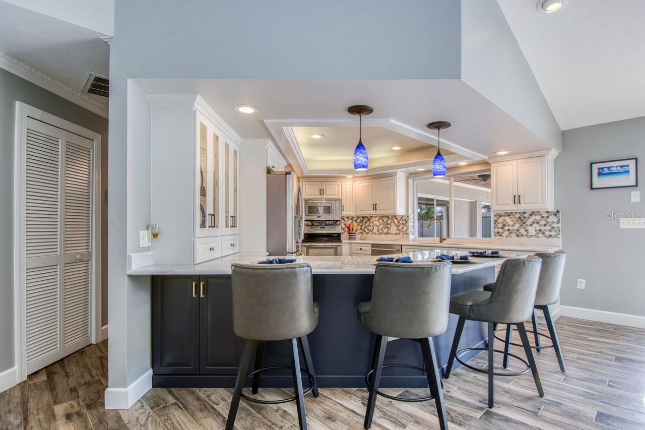 VENDEDOR MOTIVADO! Bem-vindo à vida em estilo resort no seu melhor e sem água nem perto de se intrometer durante os dois últimos furacões! Esta propriedade à beira-mar de tirar o fôlego oferece uma combinação incomparável de luxo, conforto e funcionalidade. Cada centímetro desta casa térrea foi meticulosamente atualizado para criar um verdadeiro oásis. Ao passar pela porta da frente, a sala de estar formal e a sala de jantar foram atualizadas com lindos pisos de porcelanato de madeira flutuante e novos rodapés de madeira com iluminação pendente moderna na sala de jantar. A casa oferece uma planta dividida em 3 vias com quarto principal com amplo closet e banheiro atualizado. Há uma porta de vidro deslizante no quarto principal que dá acesso a um spa privativo e à área da piscina. A cozinha dos sonhos do chef possui bancadas de mármore italiano branco imaculado, armários personalizados de alta qualidade e todos os novos eletrodomésticos. A grande sala que sai da cozinha é ótima para entretenimento! Há dois quartos fora da sala grande com um banheiro atualizado que é compartilhado. Ambos os quartos também possuem armários embutidos. As portas de correr da grande sala permitem privacidade para esses quartos. Um quarto de banho também fica fora da sala grande. A casa de banho da suite também dá acesso à zona da piscina. Depois de sair para a ampla área da piscina, você verá o belo deck de travertino com uma área coberta para entretenimento e mais deck em direção ao cais para aproveitar o sol quente. Quando o sol fica muito forte nos meses de verão, existem cortinas eletrônicas que você pode controlar remotamente. A doca mais recente também é muito grande, com muito espaço para desfrutar das vistas privadas do canal. Para os entusiastas da navegação, o cais tem água e eletricidade, além do proprietário ter adicionado um novo escorregador. Há também iluminação externa embutida no convés que leva ao cais. Novo telhado em 2023, seguro contra inundações de baixo prêmio e novo sistema de irrigação habilitado para Wi-Fi com novos poços para paisagismo eficiente. Todas as janelas e portas classificadas como furacões. A lavandaria tem uma despensa muito grande que fica ao lado da cozinha. Esta casa de planta aberta com muita luz natural tem tudo o que você poderia desejar em uma casa de um andar à beira-mar e localizada no condomínio fechado privado de Pasadena Yacht and Country Club. Se você gosta de golfe, natação, pickleball, tênis, passeios de barco e jantares privativos, você pode ingressar no clube e pular a lista de espera e tornar-se membro logo após fechar esta casa. No entanto, você só tem 30 dias após o fechamento para pular a longa lista de espera para adesão.