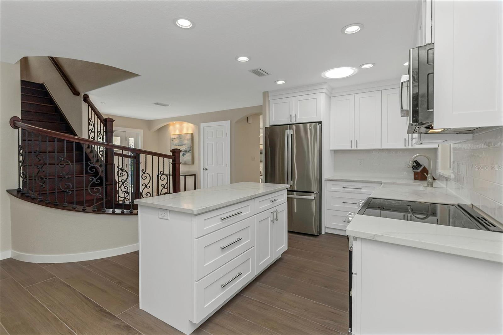 Localizada no desejável distrito de Marina de Gulfport, esta casa espaçosa e bem mantida oferece mais de 2.200 pés quadrados aquecidos e uma planta flexível que se adapta a uma variedade de estilos de vida. A uma curta caminhada do CLAM Bayou Nature Park e das lojas, galerias e restaurantes do centro de Gulfport, a casa combina conforto, função e um local fantástico. Um hall de entrada gracioso com uma escada curva e nicho de parede embutido personalizado define o tom, criando uma entrada acolhedora perfeita para exibir arte. As principais áreas de estar incluem uma sala de estar generosa com armários embutidos, uma sala de jantar formal e uma nova cozinha com uma ilha central, bancadas de quartzo, bar de café da manhã e uma despensa separada. Um recanto de café da manhã adjacente na cozinha tem vista para o quintal exuberante e privado, tornando -o o local perfeito para começar o seu dia. O primeiro andar também inclui um banheiro completo, bem como um quarto com banheiro em suíte, ideal para hóspedes ou família extensa. No andar de cima, a suíte primária possui um banheiro lindamente renovado e um grande closet. Você também encontrará uma lavanderia dedicada ao lado do quarto principal, uma biblioteca embutida, um escritório totalmente funcional com bar molhado, um terceiro quarto e uma sala de bônus que pode servir como covil, academia ou área de dormir adicional. Perfeito para entretenimento, o espaço de vida no térreo se abre para um grande lanai, com belos arcos com vistas do expansivo quintal cercado privado com árvores frutíferas maduras, um pátio aberto para refeições ao ar livre e muito espaço para adicionar uma piscina. O exterior foi pintado recém -pintado e o paisagismo maduro é mantido por um sistema de irrigação por gotejamento com uma bomba e temporizador de poço. Outros recursos incluem iluminação embutida, clarabóias, portas externas e janelas com classificação de impacto no andar de cima, persianas de furacões, cercas de alta velocidade com classificação de vento e uma garagem de dois carros com uma oficina com ar-condicionado, espaço de armazenamento adicional e um elevador de teto para mover itens pesados para o segundo andar. Esta é sua oportunidade de viver em um dos bairros mais amados de Gulfport - uma comunidade conhecida por sua vibração artística, eclética e acolhedora. De jóias culinárias e butiques peculiares a pôr do sol na água e festivais no parque, Gulfport oferece charme antigo da Flórida com uma reviravolta única que você não encontrará em nenhum outro lugar.
