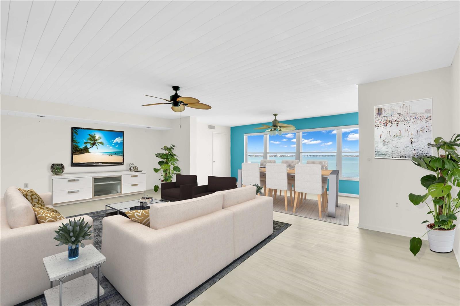Uma ou mais fotos foram praticamente encenadas. Million Dollar View !!! Quando você compra em Town Shores of Gulport uma comunidade de mais de 55 anos, é como levar um cruzeiro 365 dias por ano. Está cheio de vida e aventuras! Seja divertido com seus vizinhos ou se envolvendo na comunidade, sempre há algo para fazer! Você se encontrará desfrutando de novas aventuras, como caiaque, pickleball, shuffleboard, tênis, dança ou até mesmo apreciando o Gulfport Fresh Market toda terça-feira de manhã durante todo o ano para uma ampla variedade de alimentos, banheiros e produtos para o corpo, artistas, artistas, músicos e autores locais feitos à mão! Esta cidade tem tudo! O proprietário da nossa propriedade adorou morar neste 9º andar/1 quarto/1.5 Banheiro de luxo com pouco mais de 1100 pés quadrados e vistas completas em águas abertas da Boca Ciega/Golfo do México. A cozinha, os banheiros, todos os aparelhos/armários/balcões, os tetos do shiplap foram atualizados lindamente para o seu prazer! Se você está procurando uma casa de volta para casa, onde vê golfinhos, peixes -boi e escolas de peixe pela janela, você o encontrou! Todas as medidas devem ser verificadas pelo comprador!