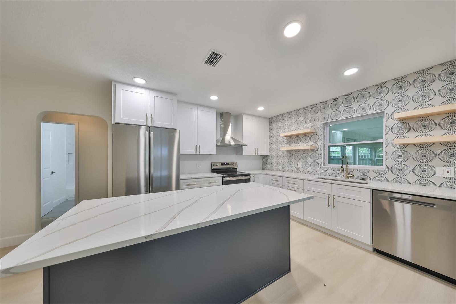 Novo grande melhoria de preços -"Gulfport Living" -desfrute de uma vida livre de estresse nesta casa de plantas baixas de 3 quartos completamente atualizada e brilhante. Ao entrar na casa, você é recebido por um plano aberto que leva perfeitamente para a sala de estar, cozinha, área de jantar e sala de bônus, que apresenta piso de vinil de luxo de madeira natural. A dramática cozinha azul e branca possui eletrodomésticos inoxidáveis, armários brancos e suaves brancos com alças de ouro escovadas, bancadas de quartzo deslumbrantes e prateleiras flutuantes em uma parede artística com um design de girassol azul complementando a ilha azul de mirtilo. O grande quarto primário da cozinha tem um banheiro privativo com chuveiro, dramático azulejo de mármore azul e amplo espaço no armário. Os 2 quartos adicionais estão localizados na frente e na traseira da casa e compartilham um banheiro no corredor com o trabalho de azulejo personalizado. A grande sala de bônus cheia de janelas é um retiro iluminado pelo sol, com vistas do quintal traseiro e uma área de jardim com um dossel de carvalho. Um grande galpão vem completo com eletricidade e AC. Desfrute de divertido e funky Gulfport com um passeio de bicicleta na trilha Pinellas por perto ou a uma curta distância de carro do centro de Gulfport e da praia. Localizado em uma zona não de inundação. Telhado 2024 HVAC 2024. Não há problemas com Helene ou Milton. A propriedade é alta e seca