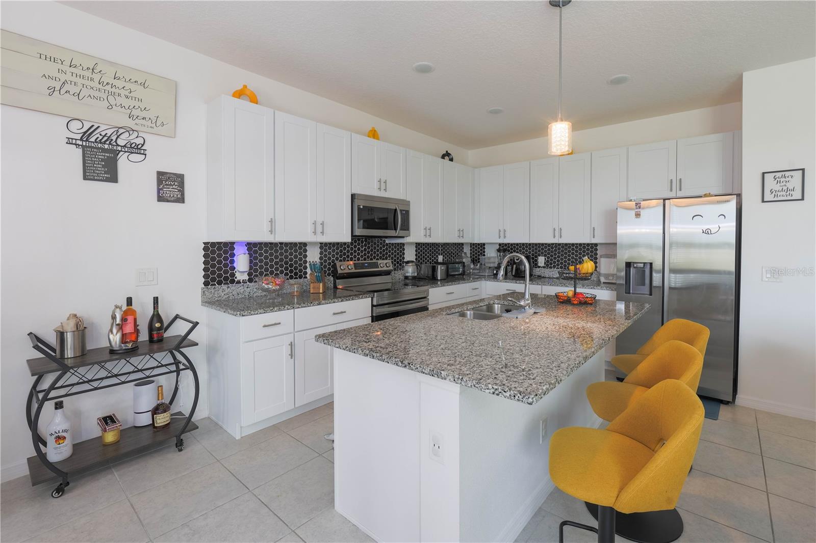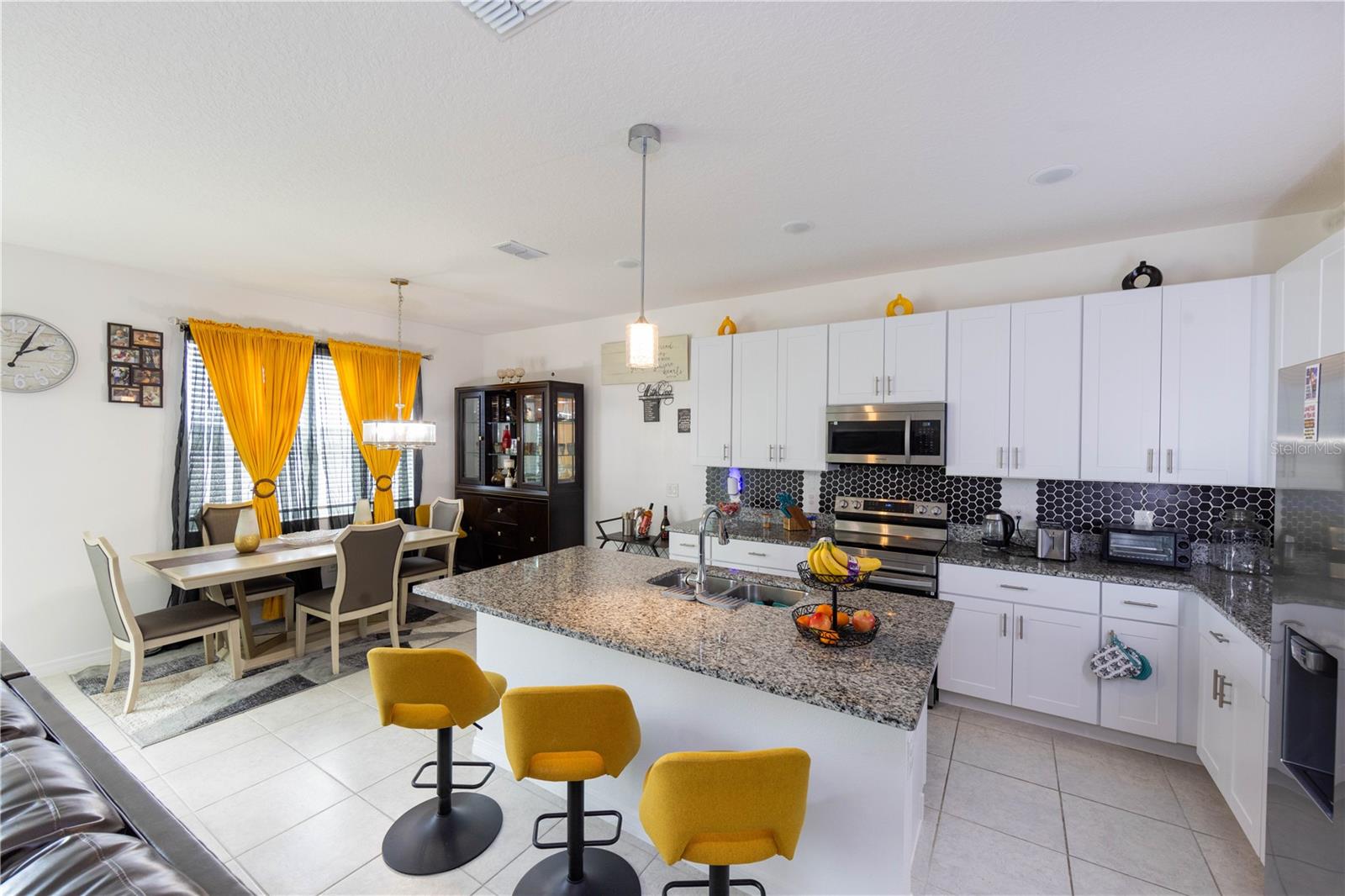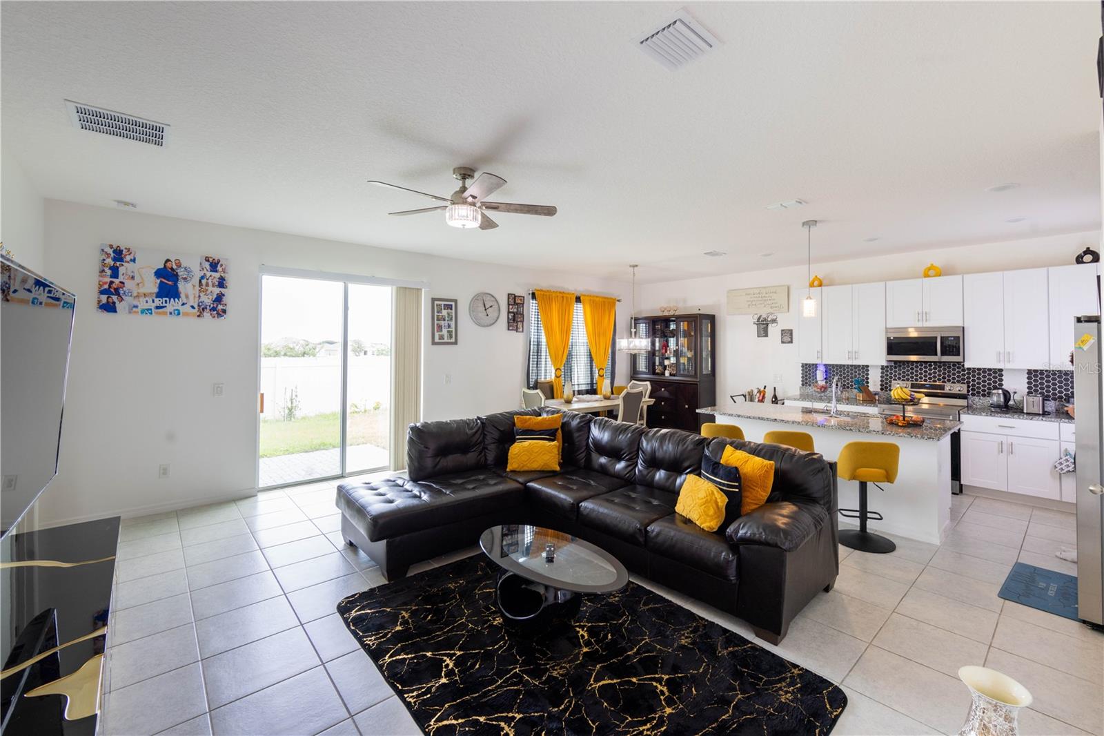 Bem-vindo a esta casa térrea, meticulosamente mantida, de um único proprietário, com 4 quartos, 2 banheiros e uma garagem para 2 carros. Convenientemente localizada perto das principais rodovias I-4, US-17 e US-27, esta residência está situada em uma comunidade vibrante que oferece comodidades como piscina, playground e parque para cães. Ao entrar, você é recebido por um sistema de entrada sem chave com alarme integrado e câmeras dianteiras e traseiras, garantindo tranquilidade e segurança. O amplo quintal, já equipado com cercas de privacidade, oferece amplo espaço para relaxamento e potencial para uma futura piscina. No exterior, uma calçada escura e um sistema de irrigação totalmente zoneado completam as características exteriores. No interior, a casa apresenta cores modernas com revestimento cerâmico em todas as áreas comuns e molhadas, complementadas por carpetes macios nos quartos. A cozinha e todos os banheiros possuem elegantes bancadas em granito, com um backsplash marcante que adiciona um toque de sofisticação à área da cozinha. O quarto principal inclui um closet de tamanho generoso, enquanto os ventiladores de teto estão estrategicamente colocados na sala familiar e em todos os quartos para maior conforto. Os destaques adicionais do interior incluem um aquecedor elétrico de água, um termostato inteligente e janelas de painel duplo para eficiência energética. O layout aberto desta casa, juntamente com uma planta dividida cuidadosamente, garante privacidade e conveniência para todos os ocupantes. Como um bônus adicional, todos os eletrodomésticos, incluindo a lavadora e a secadora, estão incluídos na venda da casa. Não perca a oportunidade de tornar sua propriedade meticulosamente mantida - agende sua exibição privada hoje mesmo!