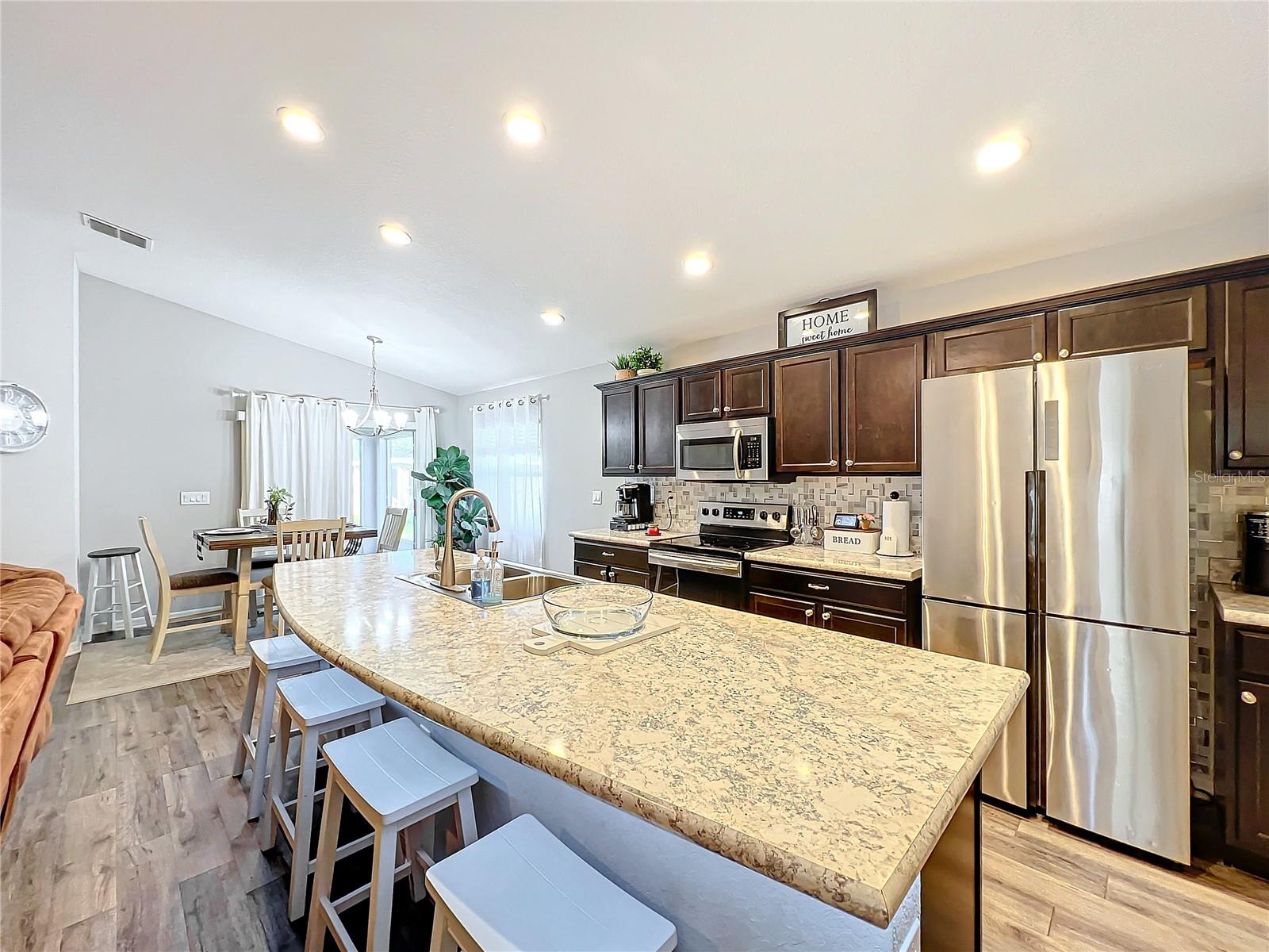 Bem-vindo a esta residência de tirar o fôlego, como nova, com 3 quartos e 2 banheiros, onde a elegância moderna encontra uma conveniência incomparável. Ao entrar, você é recebido por uma área de estar iluminada e tetos abobadados altos, criando um ambiente convidativo, perfeito para relaxamento e entretenimento. O luxuoso piso vinílico de pranchas de madeira flui perfeitamente pelas principais áreas de estar, oferecendo uma recepção calorosa a todos que entram nesta casa. O coração desta casa é a cozinha requintada, o sonho de um chef tornado realidade. O layout aberto e luminoso inclui uma ilha enorme que serve como um ponto focal impressionante para cozinhar e se divertir. Equipado com eletrodomésticos de aço inoxidável de última geração, um elegante backsplash de azulejos, uma torneira suspensa e armários com fechamento suave, este paraíso culinário combina funcionalidade e elegância. Uma espaçosa despensa oferece armazenamento adicional para todos os itens essenciais da sua cozinha. Esta casa foi cuidadosamente projetada com a eficiência energética em primeiro lugar, apresentando painéis solares de grande capacidade e excelente isolamento que mantêm os custos de serviços públicos baixos e, ao mesmo tempo, promovem um estilo de vida sustentável. O fornecedor do sistema solar irá pré-aprovar o novo comprador para a transferência do sistema. A casa tem uma abundância de soluções de armazenamento, garantindo que seu ambiente permaneça livre de bagunça. A lavanderia dedicada possui uma zona de armazenamento conveniente e uma pia de tamanho generoso, facilitando as tarefas domésticas. Fuja para a ampla suíte do proprietário, um verdadeiro santuário que incorpora conforto e elegância. Este retiro luminoso e espaçoso apresenta um closet generoso e uma penteadeira dedicada, proporcionando a combinação perfeita de funcionalidade e luxo. O banheiro privativo foi projetado para relaxar, apresentando pias duplas, um box amplo com belos azulejos e um armário de roupa de cama conveniente. Cada detalhe é pensado para garantir que suas necessidades sejam atendidas com estilo e sofisticação, criando um espaço convidativo para relaxar após um longo dia. Aproveite as alegrias da vida ao ar livre em sua charmosa varanda frontal ou na espaçosa varanda com tela com vista para o quintal - um cenário ideal para reuniões familiares ou noites tranquilas sob as estrelas. Situada na desejável comunidade de Highland Meadows, esta casa fica a poucos minutos de lojas, restaurantes e recreação, tornando-a o santuário ideal para o estilo de vida atual. Este bairro notável e vibrante oferece uma variedade de comodidades, incluindo piscina comunitária, campo de futebol, playground e parque para cães. Experimente a combinação perfeita de estilo, conveniência e vida comunitária nesta deslumbrante joia de 3 quartos e 2 banheiros. O vendedor também está colocando os móveis à venda, todos os eletrodomésticos estão incluídos na venda, exceto a lavadora e a secadora que não transmitem. Não perca a oportunidade de chamar esta propriedade requintada de lar - agende hoje mesmo sua visita privada e comece a imaginar o estilo de vida que espera por você nesta residência imaculada e acolhedora!