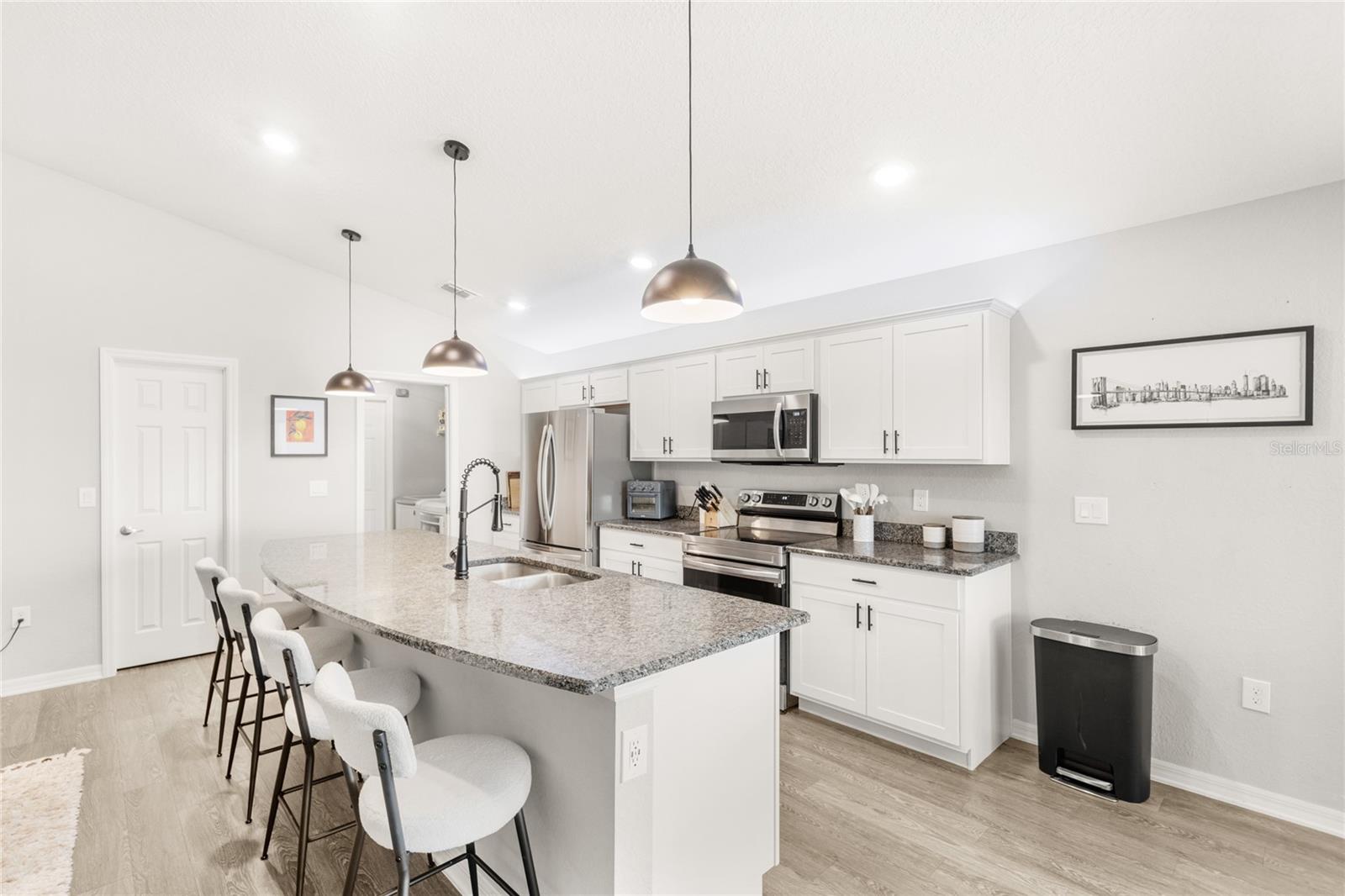 Bem-vindo a esta casa lindamente mantida de 3 quartos e 2 banheiros no coração de Haines City, Flórida! Construído em 2021, esta residência moderna oferece um layout de conceito aberto com uma cozinha deslumbrante com uma ilha perfeita para entretenimento. Fluxos de piso atualizados em toda a casa, adicionando um toque de elegância e conforto. Saia para desfrutar da espaçosa lanai exibida, ideal para relaxar as noites da Flórida, e um quintal personalizado, colocando verde-perfeita para os entusiastas do golfe ou apenas colocando com os amigos. Esta casa combina estilo, conforto e vida ao ar livre em um pacote fantástico!