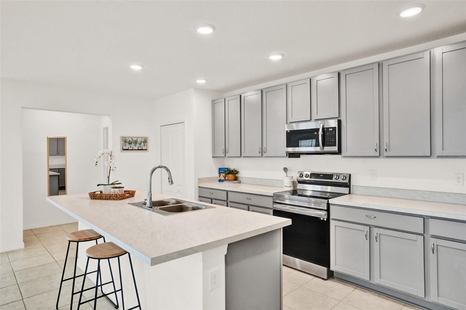 O vendedor pagou TAXA DE COMPRA DOWN nos primeiros 2 anos! Bem-vindo a este quase NOVO CONCEITO ABERTO. Casa térrea, construída em 2023 na comunidade de Calabay Crossing... 4 quartos, 2 banheiros, 2.182 pés quadrados, todos projetados com uma desejável planta dividida em 3 vias... Amplo hall de entrada com teto falso, amplo piso de cerâmica nas principais áreas de estar e carpete macio nos quartos. Ventiladores de teto são cuidadosamente colocados em toda a casa e na varanda externa (excluindo o primeiro quarto). Ao entrar pelo Hall de entrada, à esquerda você será recebido por dois quartos e um banheiro completo completo com um grande armário de roupa de cama, e à direita você terá uma lavanderia e um terceiro quarto - perfeito para hóspedes ou home office. No coração da casa fica uma enorme ilha de cozinha de grandes dimensões com muitos armários cinza claro, assentos em ilha e balcão. A cozinha flui perfeitamente para a sala de jantar e a ampla sala de estar, emoldurada por 3 portas deslizantes de vidro que se abrem para uma tranquila varanda nos fundos, perfeita para entretenimento... criando um estilo de vida interno e externo confortável. A suíte primária privada fica escondida na parte de trás da casa, incluindo um grande closet e um banheiro tipo spa completo com um armário de roupa de cama para armazenamento extra, armário de água, pias duplas separadas por uma área de maquiagem/vaidade, espelho enorme e um impressionante chuveiro de azulejos do chão ao teto e banheira de imersão. Esta casa está localizada em uma área de rápido crescimento... Perto dos principais parques temáticos, inúmeras lojas, restaurantes, principais estradas e praias! Esta linda casa é imperdível. Agende sua exibição privada hoje mesmo!