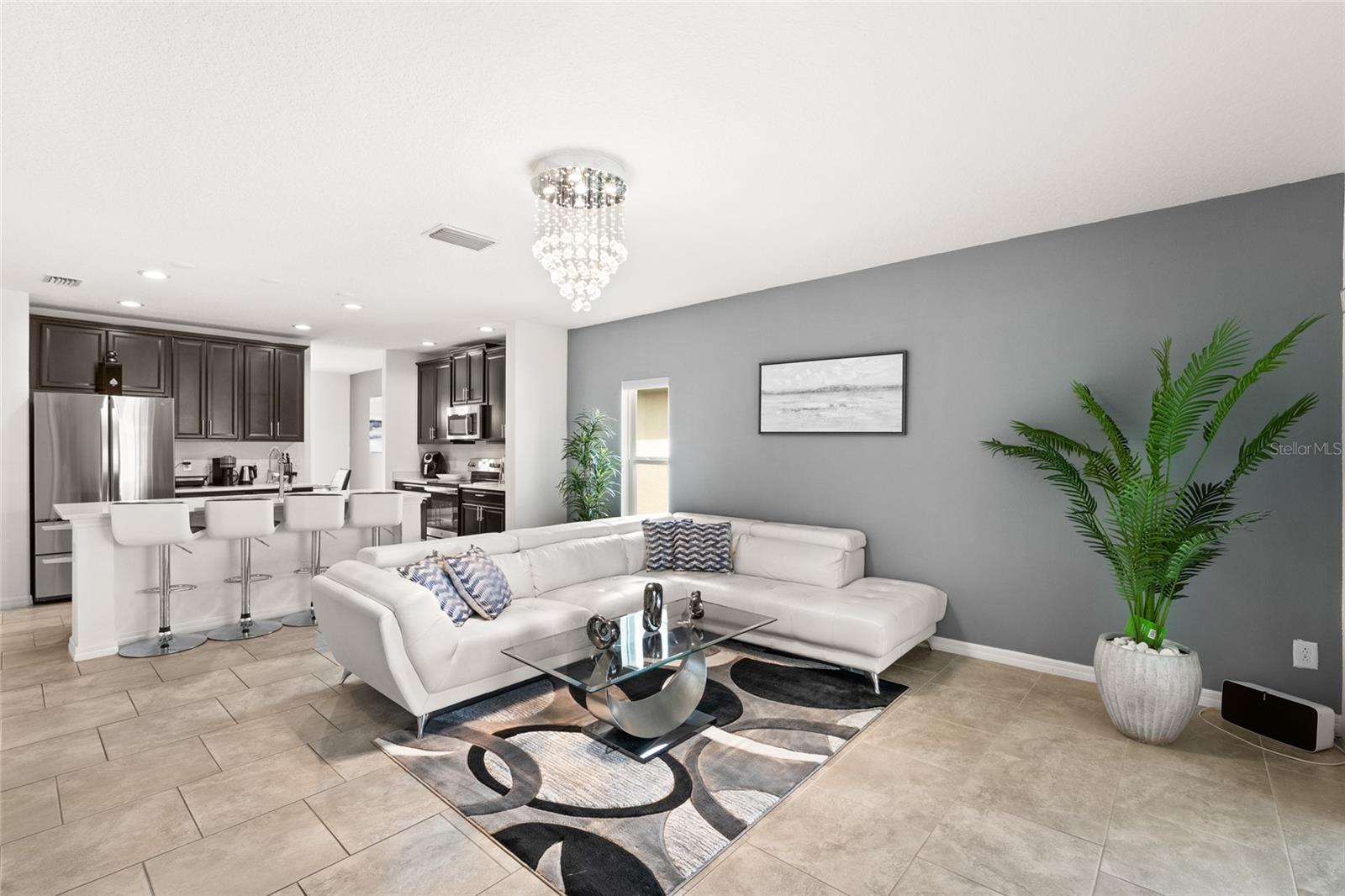 O modelo praticamente novo da Berkshire, com 3 quartos e 2 banheiros (1.770 pés quadrados), oferece uma vida elegante e de baixa manutenção. A sala de jantar formal é separada da sala de estar e se integra a uma espaçosa sala familiar (com piso de cerâmica) e uma cozinha pronta para chef com armários de madeira de 42 polegadas, bancadas de superfície sólida, azulejos de quartzo e eletrodomésticos de aço inoxidável. Ladrilhos de 18 polegadas cobrem as principais áreas de estar; carpete macio aquece os quartos divididos. A suíte master possui pias duplas elevadas (ladrilho de quartzo) e um chuveiro digital Kohler duplo atrás de um vidro sem moldura. Tratamento de água para toda a casa, janelas baixas e com baixo consumo de energia, irrigação inteligente, entrada de pavimentação de tijolos e varanda coberta acrescentam conveniência ao dia a dia. O Orchid Terrace mantém as taxas HOA ao mínimo, ao mesmo tempo que oferece uma piscina estilo resort, parque para cães, playground e trilhas para caminhada. Idealmente localizado para viajantes: a 10 minutos da I-4 e das lojas Posner Park e a 25 minutos do Walt Disney World. Inscrições USDA/FHA/VA são aceitas. Chave na mão, imaculada e com um preço incrível, totalmente mobilada. Agende sua visita antes que alguém a agarre!