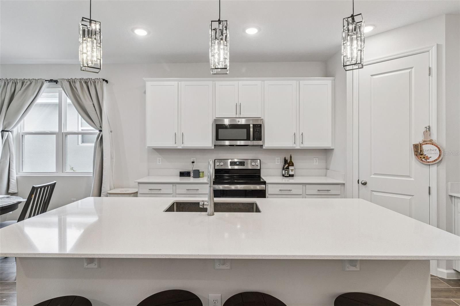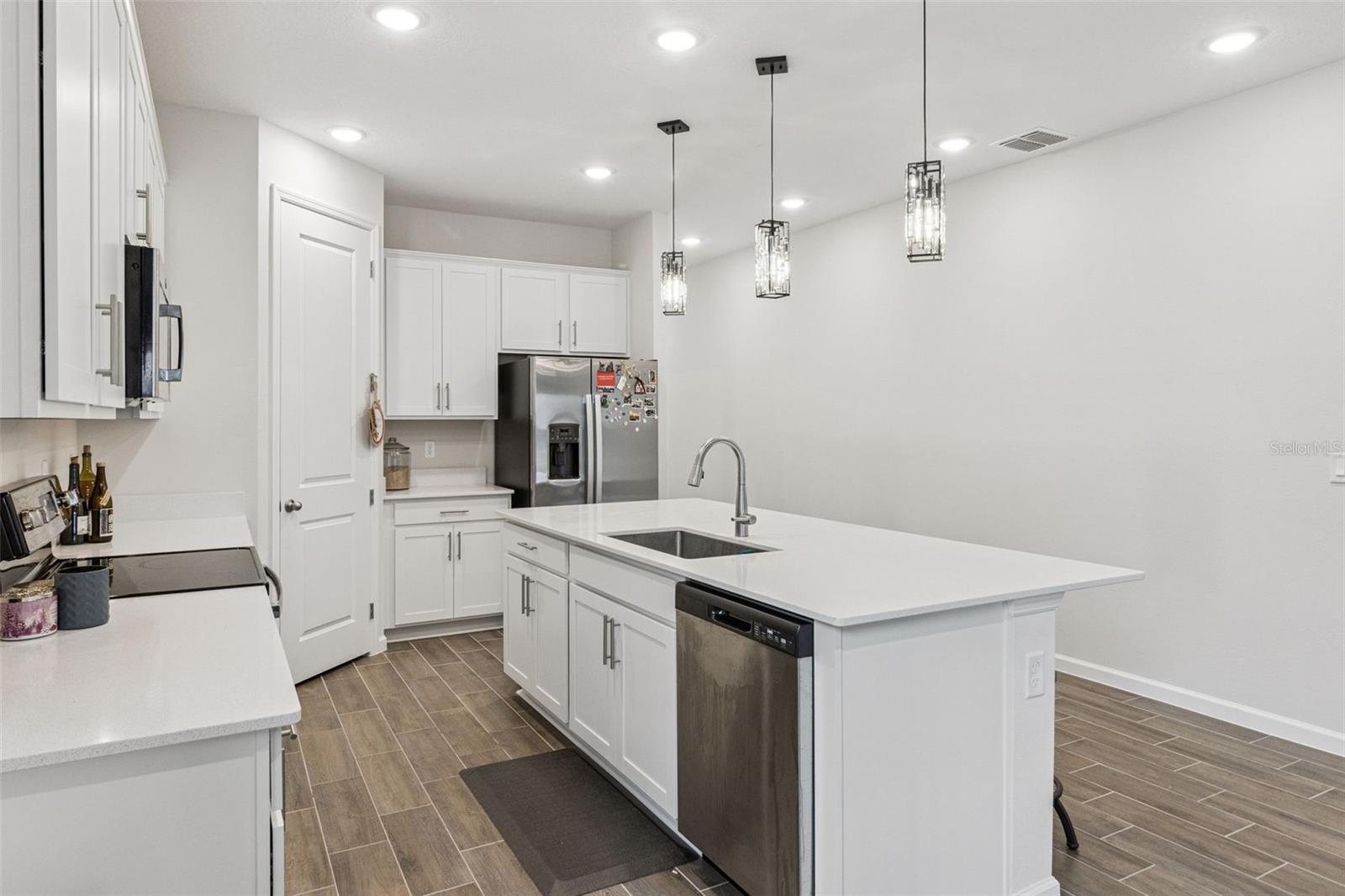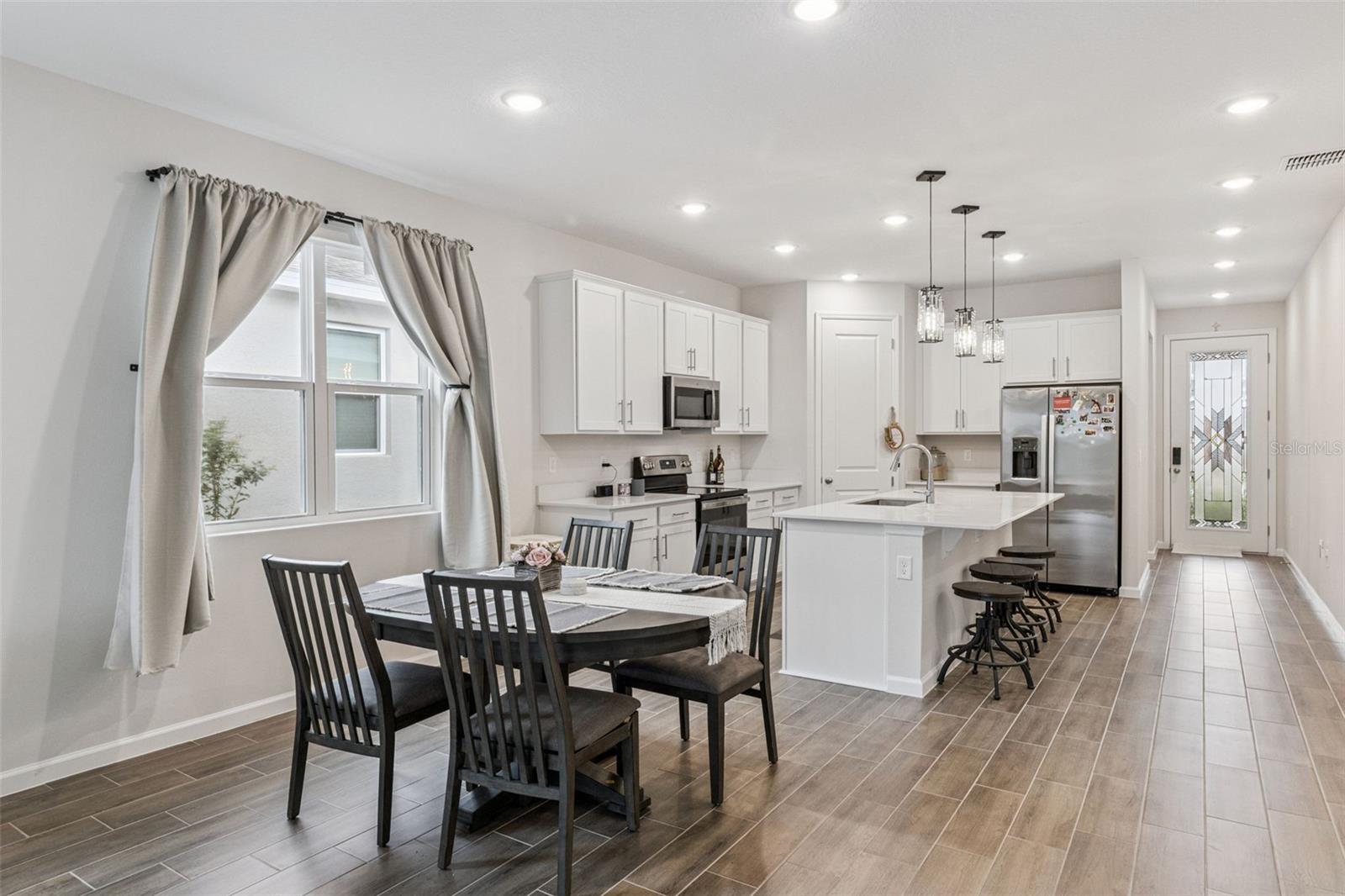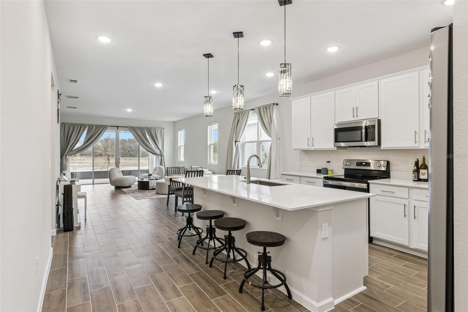 Casa pronta para morar com 4 quartos e 2 banheiros em Haines City, oferecendo vistas tranquilas para o lago e sem vizinhos traseiros. Uma porta frontal recém-instalada com vidro decorativo dá as boas-vindas a um layout aberto e convidativo, com azulejos com aparência de madeira nas principais áreas de estar, quartos acarpetados e portas internas em estilo artesanal que adicionam calor e personalidade. A espaçosa sala grande flui para a área de jantar aberta e uma cozinha bem iluminada completa com bancadas de quartzo, eletrodomésticos de aço inoxidável, armários de 42 polegadas, iluminação pendente, uma grande ilha central com assentos e uma despensa, tornando-a perfeita para entretenimento e vida cotidiana. A suíte principal oferece um retiro relaxante com um amplo closet e banheiro privativo com pias duplas. As características adicionais incluem uma lavanderia interna, um pátio coberto e protegido, ideal para desfrutar da vida na Flórida, uma garagem para 2 carros com carregador Tesla/EV e um quintal com vista para um lago tranquilo para maior privacidade. Esta casa oferece acabamentos modernos, uma planta aberta e um ambiente sereno, tudo em um. Agende sua exibição hoje.