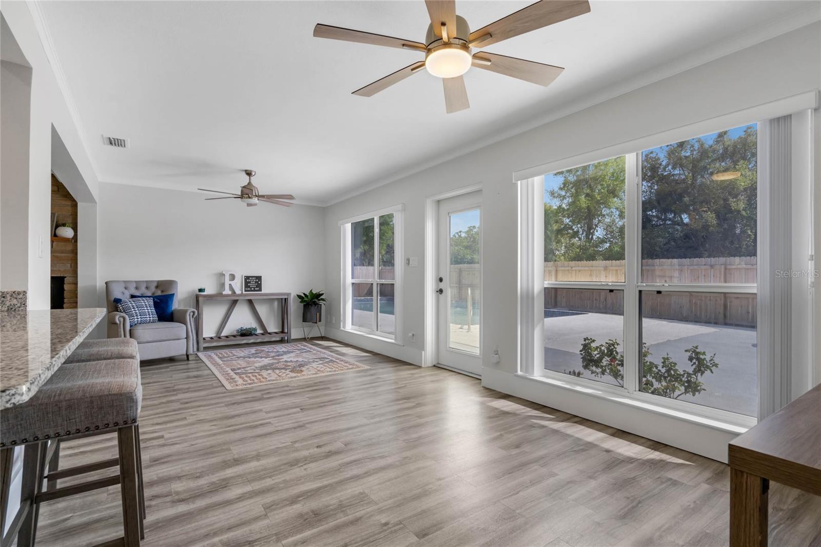 Aproveite esta casa de 3 quartos 2 de banheiros aninhada no coração de Haines City, que foi remodelada. Você tem acesso rápido a jantar, escola e compras, mas escondido em uma área tranquila. Esta enorme propriedade de esquina é completa com um telhado de metal elegante (instalado 7 a 8 anos atrás), uma piscina brilhante que foi ressurgida, garagem de 2 carros, edifício de armazenamento ao ar livre e 2 garagem para seus brinquedos ou barco. Ao entrar, você encontrará uma espaçosa sala de estar com uma lareira aconchegante com uma fornalha de fogo para madeira. À direita está uma área de jantar formal, tudo com grandes janelas para deixar entrar essa luz natural. A área de estar possui painéis de portas de vidro em estilo acordeão que se abrem para uma sala de estar formal. A partir daqui, você tem grandes janelas com vista para a área da piscina. A cozinha tem armários de madeira e contra-tops em granito, completos com um passe pela janela para a sala de estar e um comer na área do bar para a sala de estar formal, perfeita para entretenimento. O quarto principal é completo com um chuveiro de walk-in. Os outros 2 quartos e banheiros estão localizados do outro lado da casa neste design de nível dividido. Faça sua consulta para ver esta adorável casa hoje.