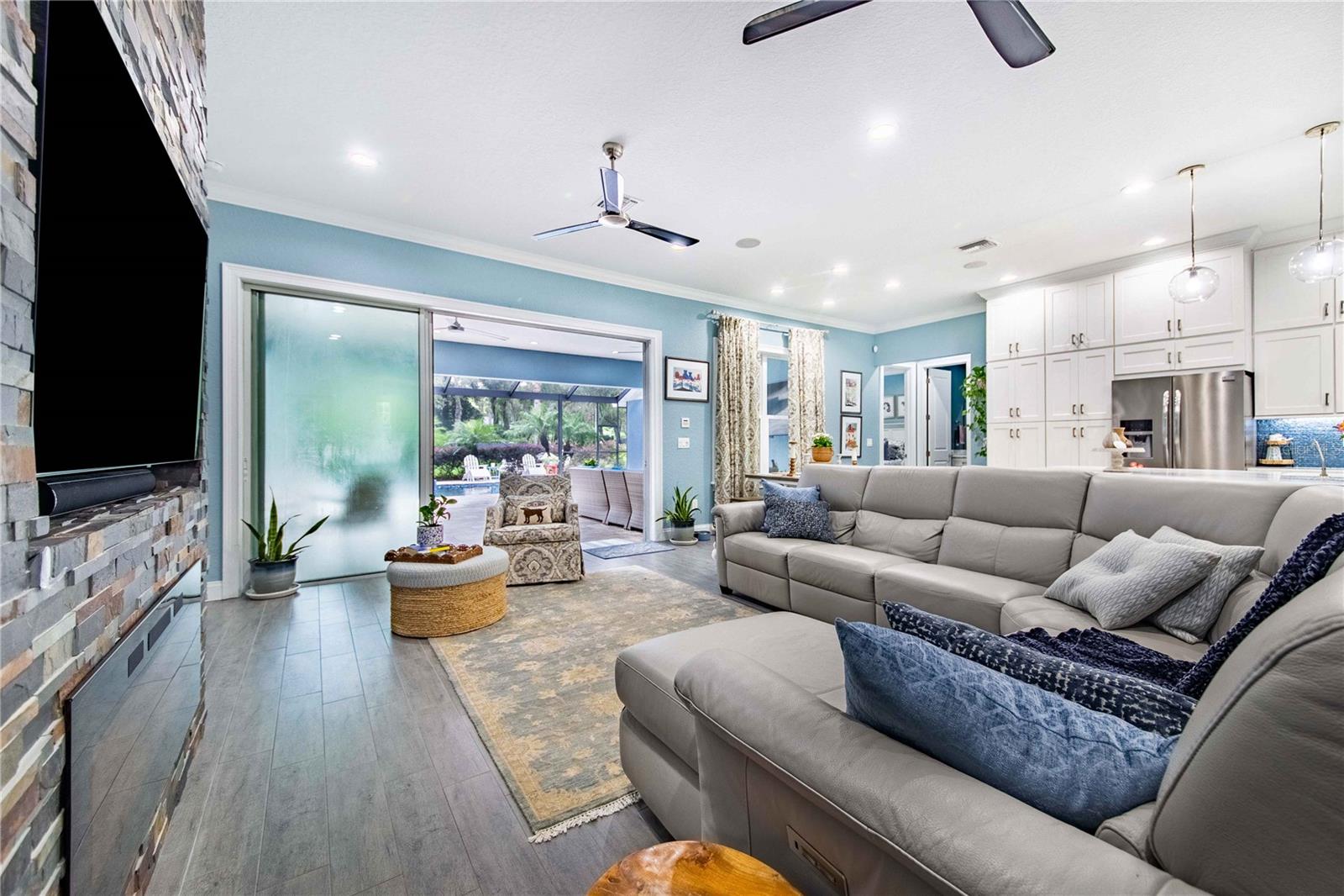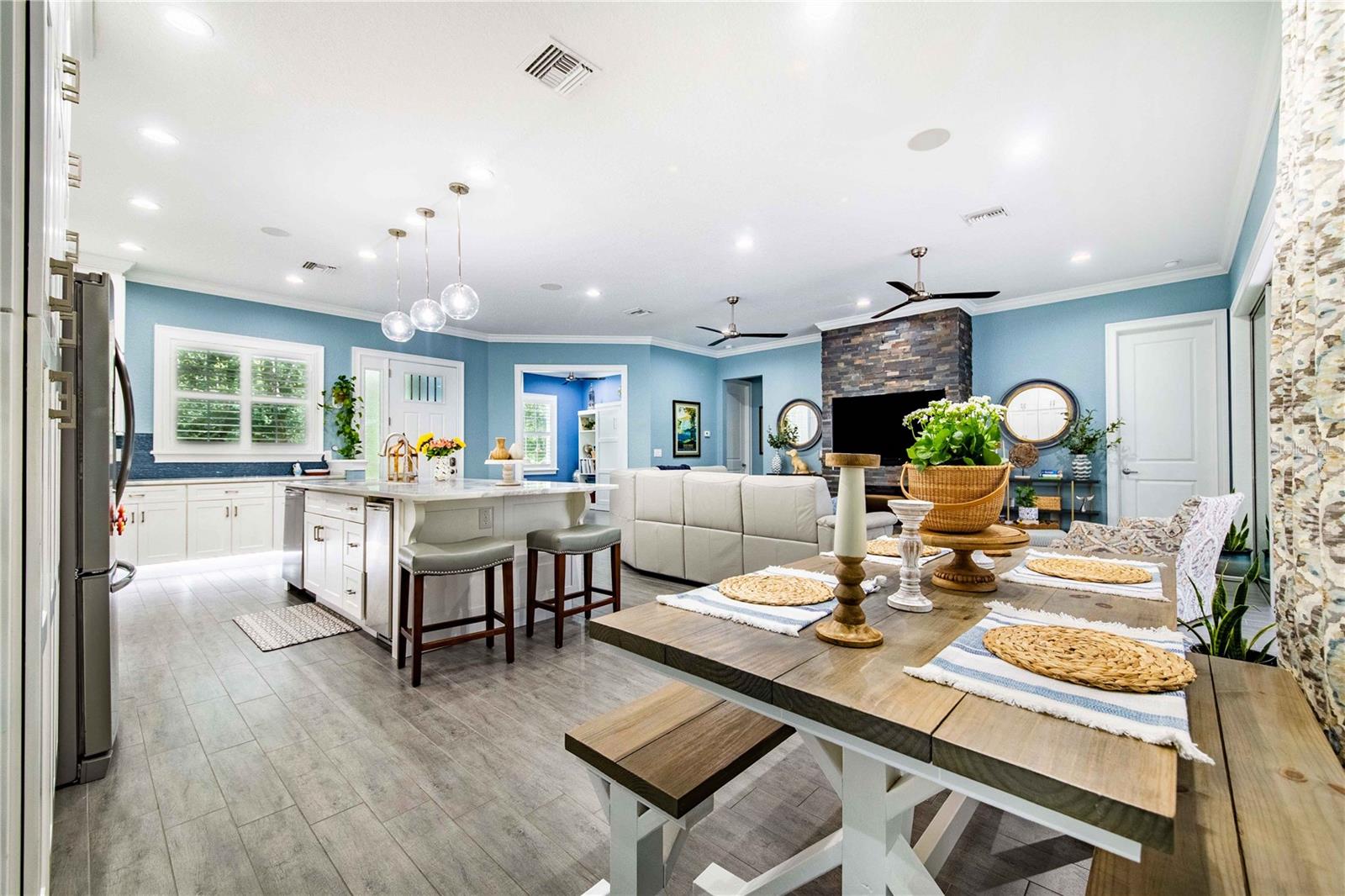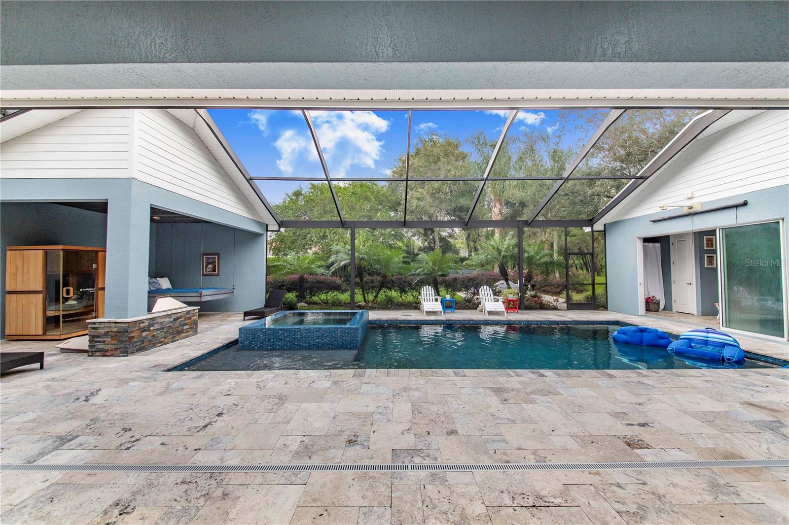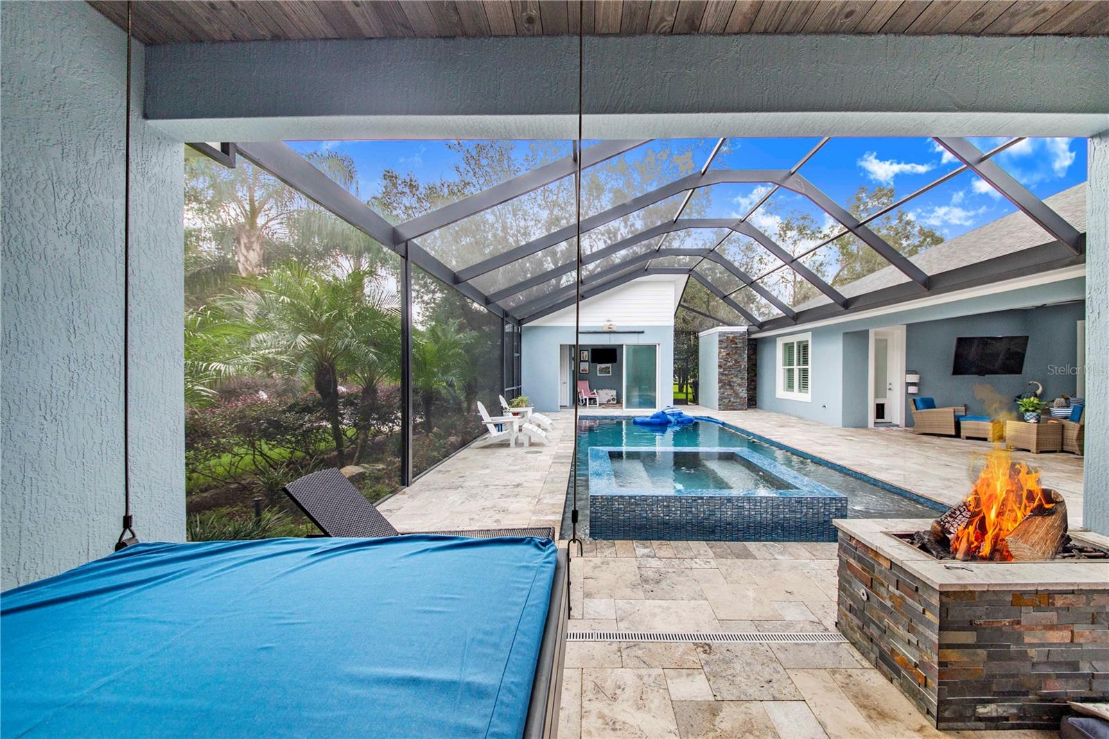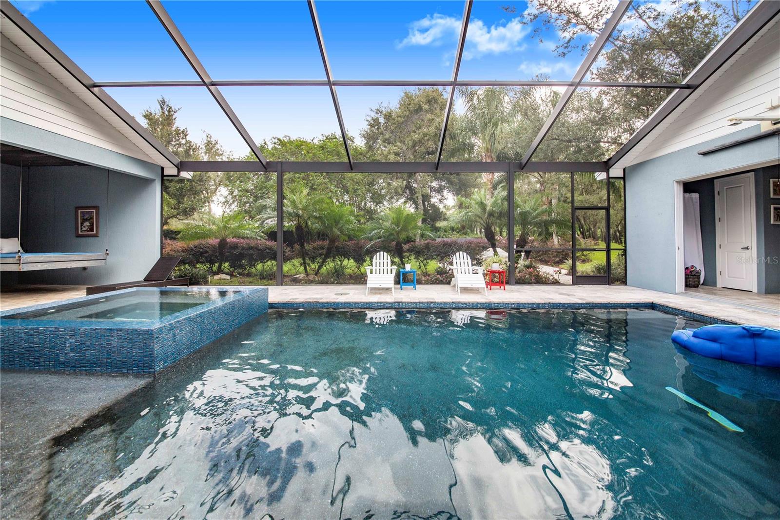 bem-vindo a esta deslumbrante propriedade de três quartos, três banheiros completos e três lavabos, localizada em um condomínio fechado de prestígio no coração da Flórida Central. A sala bônus pode ser usada como um 4º quarto e atualmente é usada como um escritório dedicado, com uma cama Murphy personalizada para maior versatilidade. Esta casa foi projetada com luxo e conforto em mente, ostentando uma calçada e calçada pavimentada com tijolos, venezianas e azulejos de travertino requintados na varanda dos fundos e no deck da piscina. A área de estar ao ar livre é o sonho de qualquer artista, completa com uma grande cabana com banheiro totalmente fechado, ar-condicionado e uma linda cama suspensa. Relaxe na piscina aquecida e na banheira de hidromassagem, reúna-se ao redor da fogueira personalizada de dois lados - um lado para madeira de verdade e outro para gás - ou desfrute de uma noite aconchegante em frente à lareira a gás à beira da piscina. Uma TV externa de nível comercial de 75 polegadas, chuveiro externo e uma cozinha externa personalizada com um ovo verde extra grande, churrasqueira Bull, ilha grande e exaustor tornam este espaço perfeito para hospedar reuniões. O interior é igualmente de tirar o fôlego, com tetos de 3 metros, sancas por toda parte, piso de porcelanato e abundante iluminação LED. A cozinha de conceito aberto oferece armários personalizados, iluminação sob o armário, água potável por osmose reversa e uma máquina de gelo. Recém-pintada por dentro e por fora, esta casa também inclui um sistema de áudio doméstico, dois aquecedores de água sem tanque, uma lareira elétrica na sala de estar, um banho de vapor no banheiro principal e recursos atenciosos, como uma porta para cães na suíte master e na sala de tela. . A propriedade paisagística oferece tranquilidade e luxo, e sua localização central oferece fácil acesso às principais rodovias e parques temáticos próximos. Não perca a oportunidade de possuir esta casa incrível onde a elegância encontra a funcionalidade, por dentro e por fora.