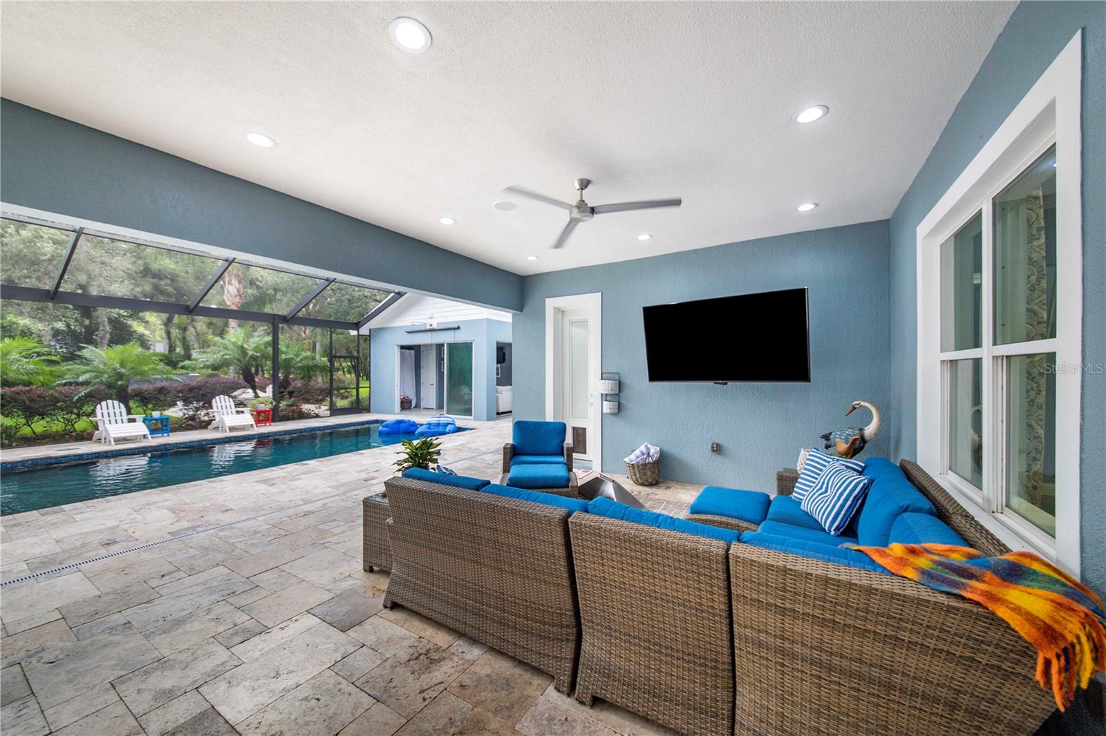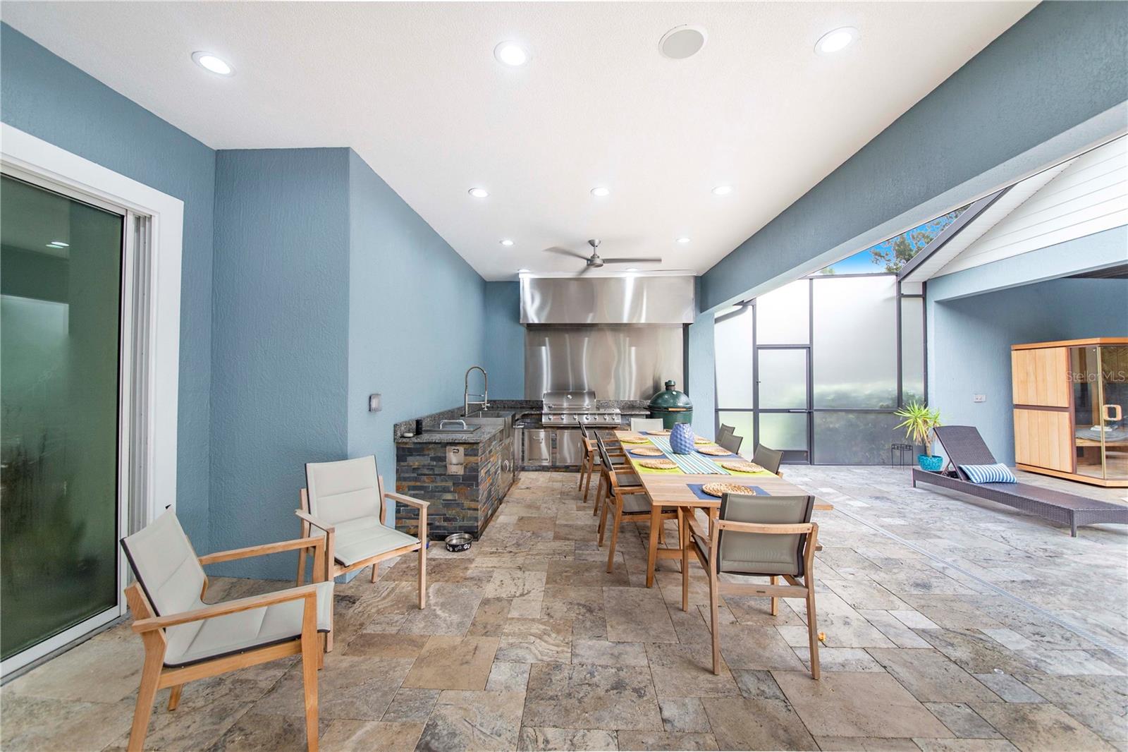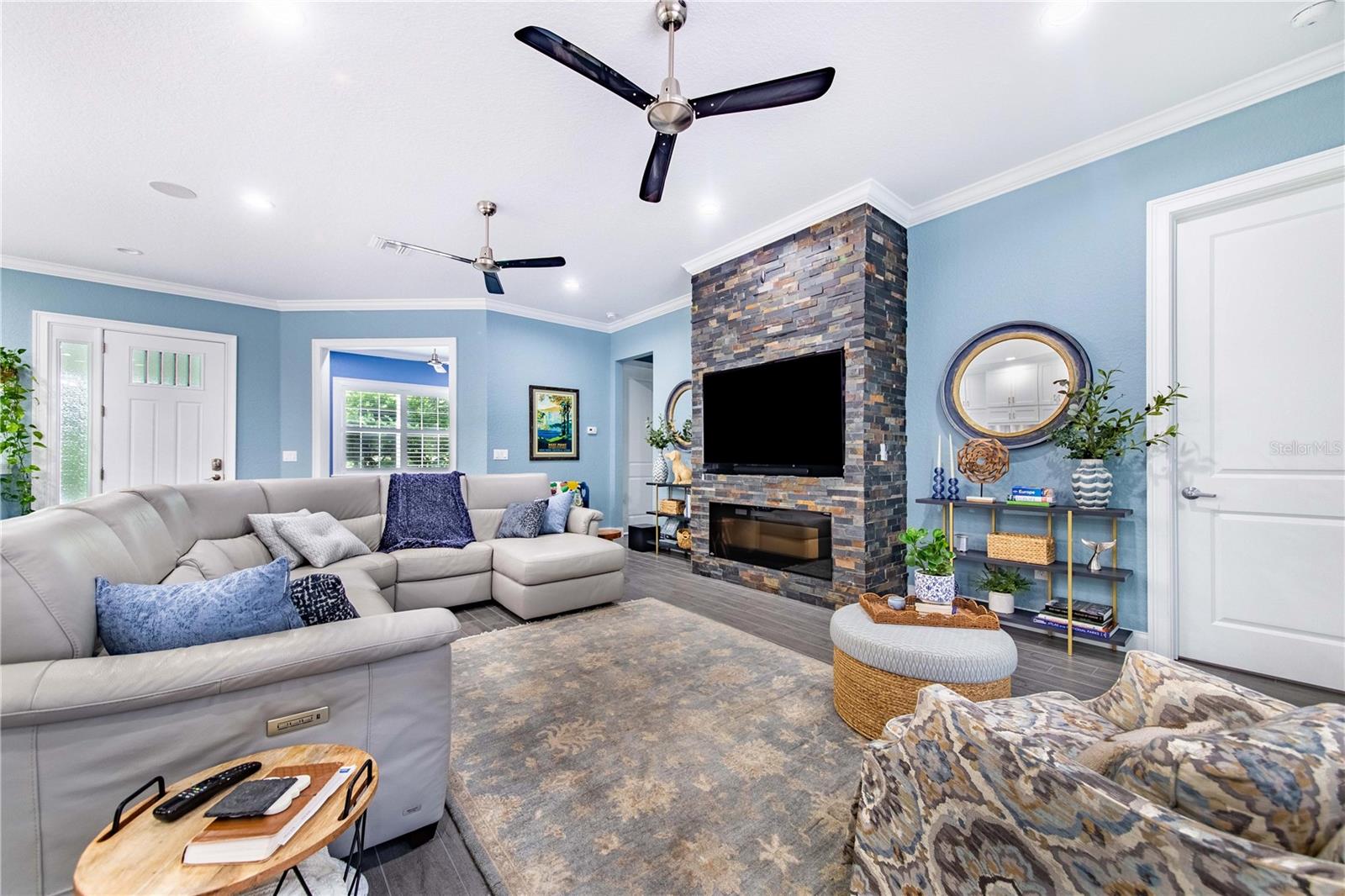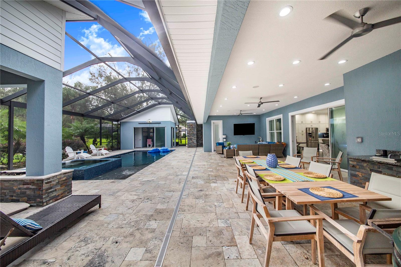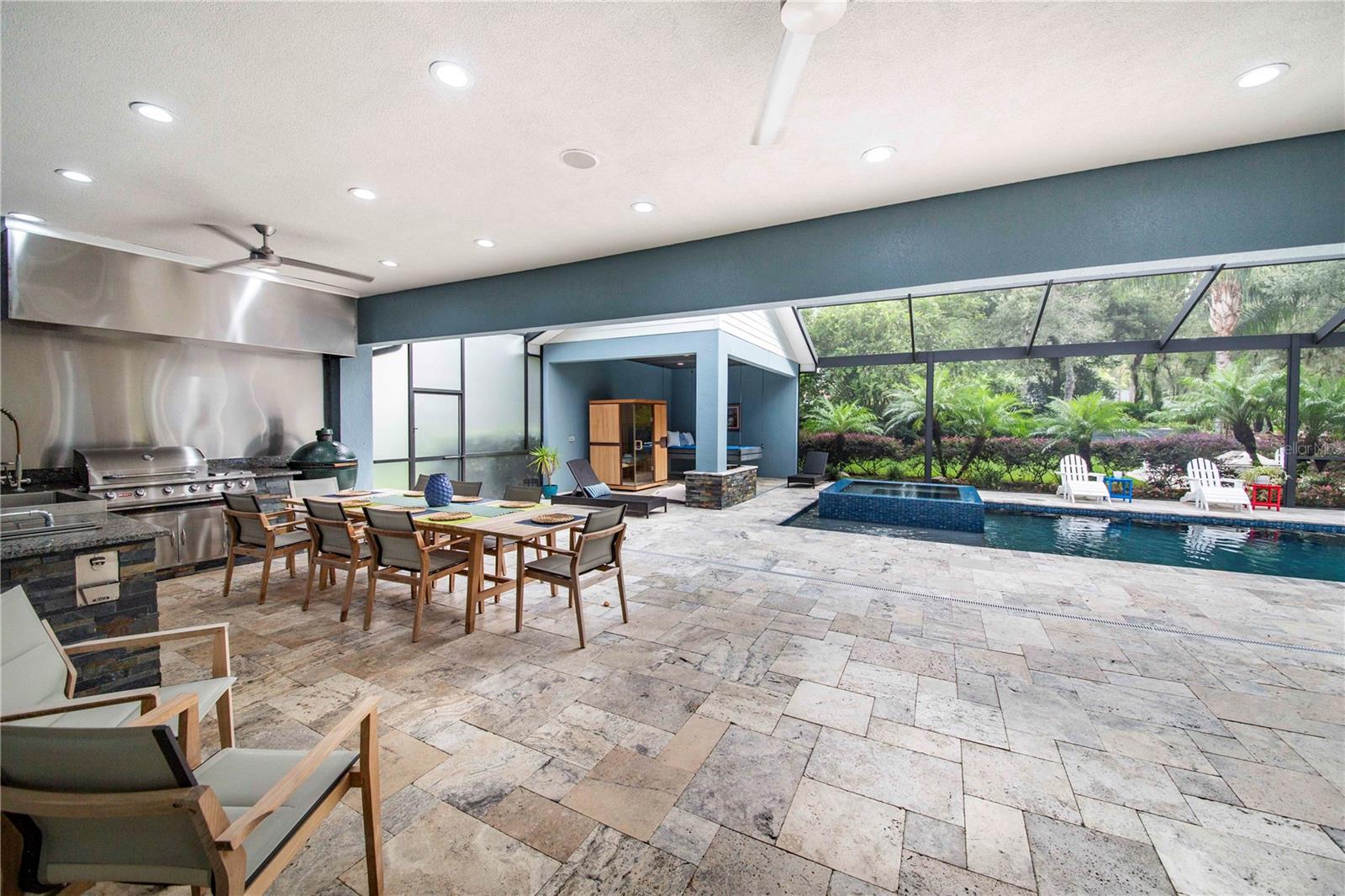 bem-vindo a esta deslumbrante propriedade de três quartos, três banheiros completos e três lavabos, localizada em um condomínio fechado de prestígio no coração da Flórida Central. A sala bônus pode ser usada como um 4º quarto e atualmente é usada como um escritório dedicado, com uma cama Murphy personalizada para maior versatilidade. Esta casa foi projetada com luxo e conforto em mente, ostentando uma calçada e calçada pavimentada com tijolos, venezianas e azulejos de travertino requintados na varanda dos fundos e no deck da piscina. A área de estar ao ar livre é o sonho de qualquer artista, completa com uma grande cabana com banheiro totalmente fechado, ar-condicionado e uma linda cama suspensa. Relaxe na piscina aquecida e na banheira de hidromassagem, reúna-se ao redor da fogueira personalizada de dois lados - um lado para madeira de verdade e outro para gás - ou desfrute de uma noite aconchegante em frente à lareira a gás à beira da piscina. Uma TV externa de nível comercial de 75 polegadas, chuveiro externo e uma cozinha externa personalizada com um ovo verde extra grande, churrasqueira Bull, ilha grande e exaustor tornam este espaço perfeito para hospedar reuniões. O interior é igualmente de tirar o fôlego, com tetos de 3 metros, sancas por toda parte, piso de porcelanato e abundante iluminação LED. A cozinha de conceito aberto oferece armários personalizados, iluminação sob o armário, água potável por osmose reversa e uma máquina de gelo. Recém-pintada por dentro e por fora, esta casa também inclui um sistema de áudio doméstico, dois aquecedores de água sem tanque, uma lareira elétrica na sala de estar, um banho de vapor no banheiro principal e recursos atenciosos, como uma porta para cães na suíte master e na sala de tela. . A propriedade paisagística oferece tranquilidade e luxo, e sua localização central oferece fácil acesso às principais rodovias e parques temáticos próximos. Não perca a oportunidade de possuir esta casa incrível onde a elegância encontra a funcionalidade, por dentro e por fora.