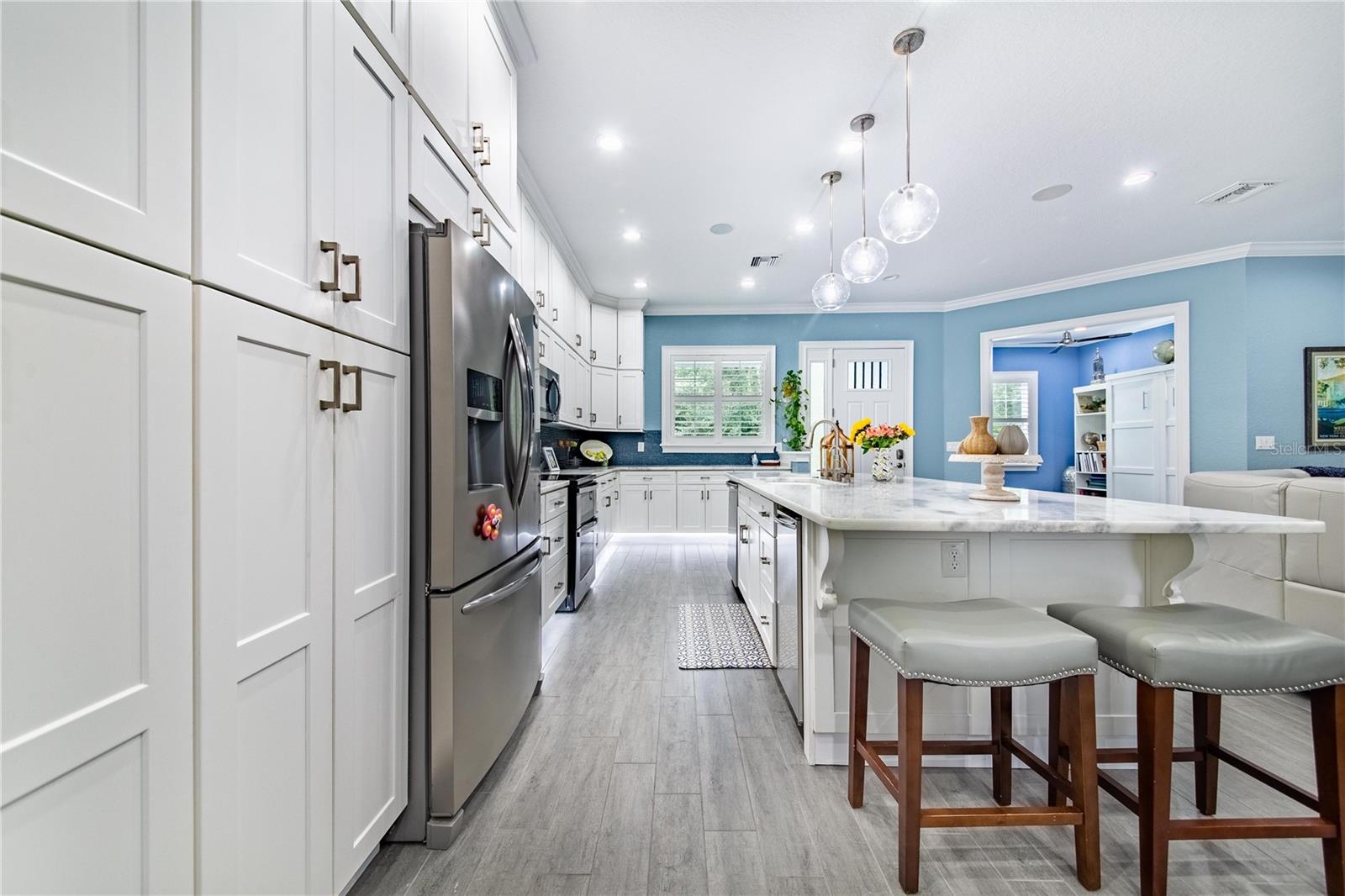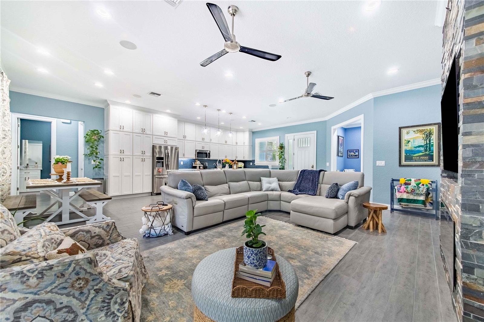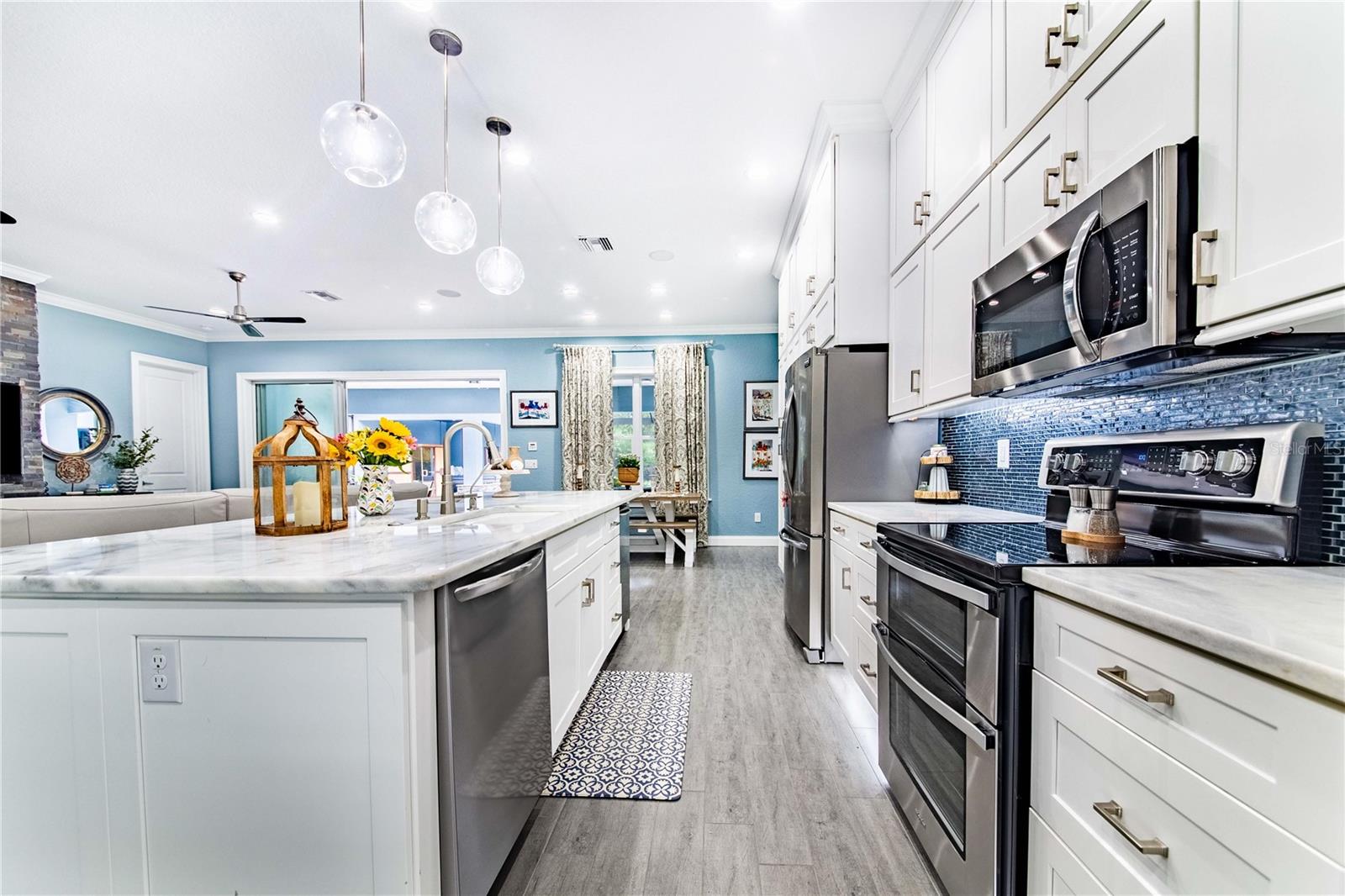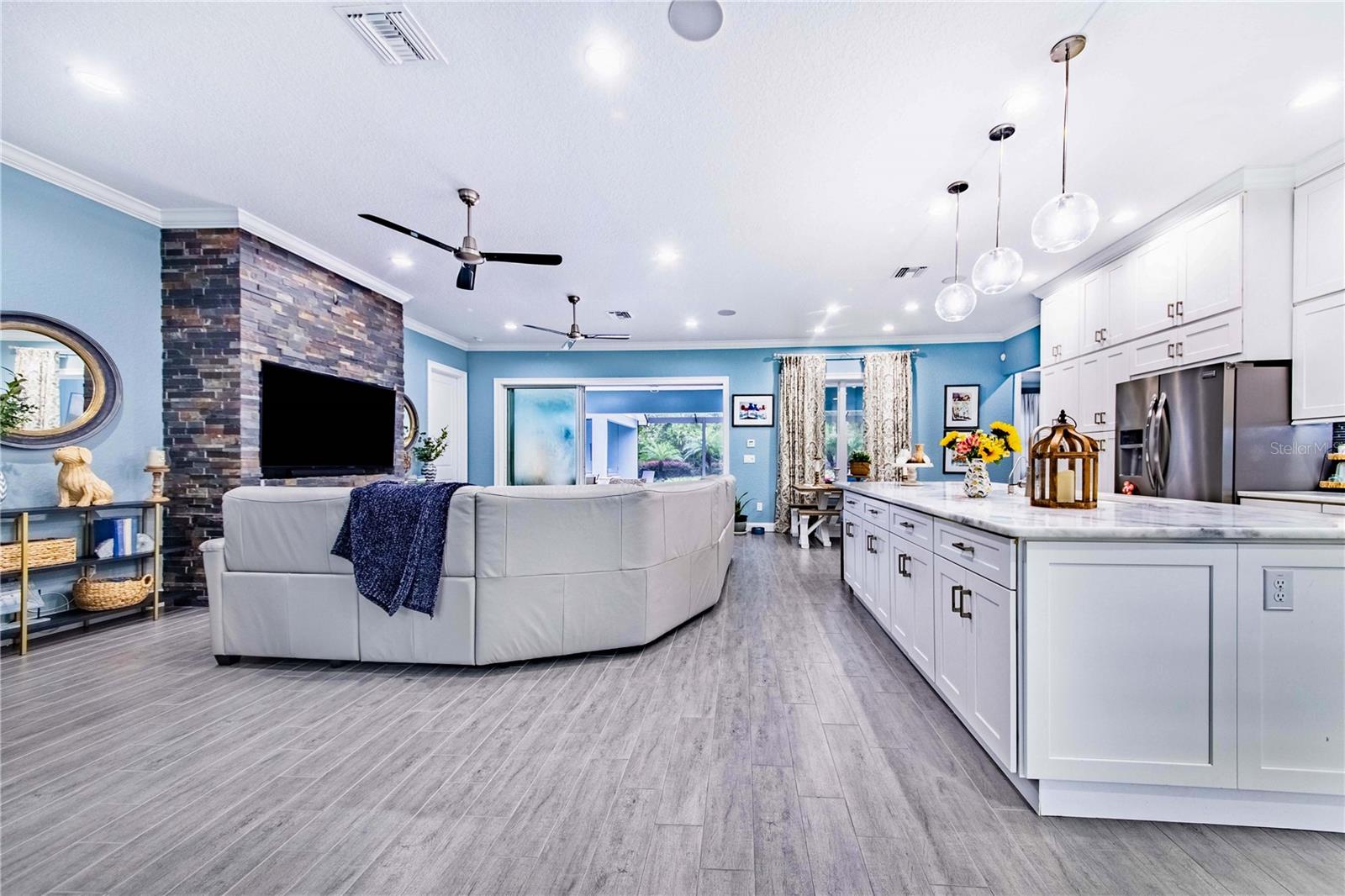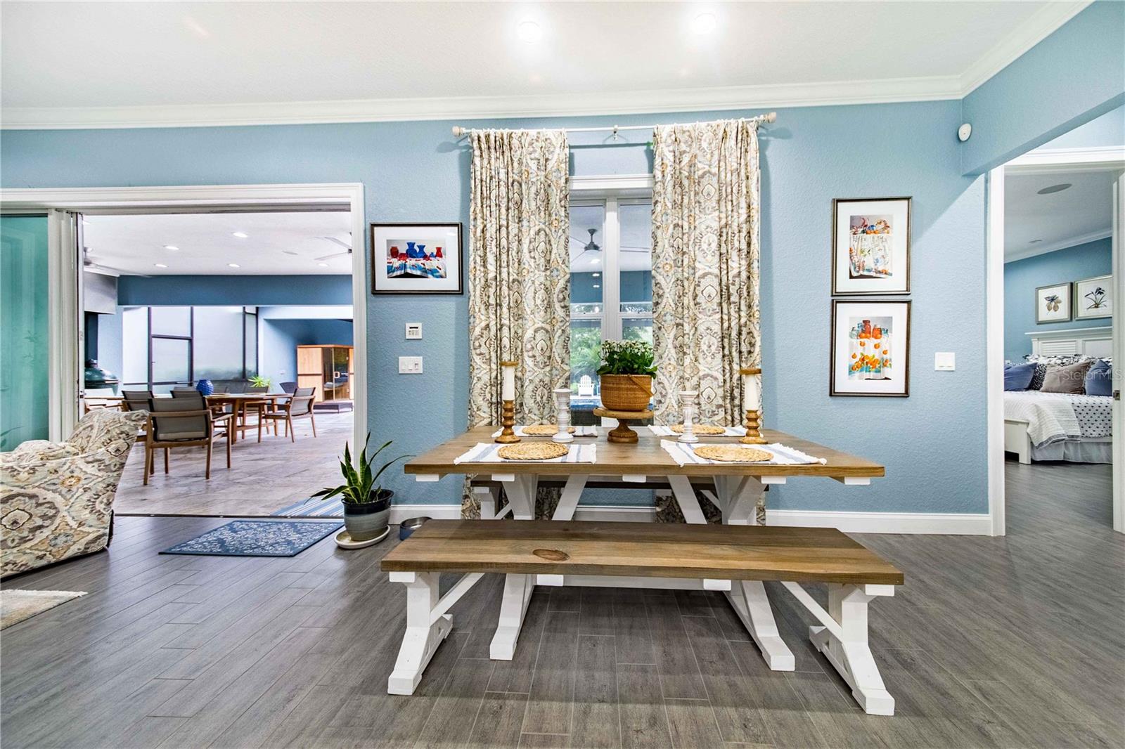 bem-vindo a esta deslumbrante propriedade de três quartos, três banheiros completos e três lavabos, localizada em um condomínio fechado de prestígio no coração da Flórida Central. A sala bônus pode ser usada como um 4º quarto e atualmente é usada como um escritório dedicado, com uma cama Murphy personalizada para maior versatilidade. Esta casa foi projetada com luxo e conforto em mente, ostentando uma calçada e calçada pavimentada com tijolos, venezianas e azulejos de travertino requintados na varanda dos fundos e no deck da piscina. A área de estar ao ar livre é o sonho de qualquer artista, completa com uma grande cabana com banheiro totalmente fechado, ar-condicionado e uma linda cama suspensa. Relaxe na piscina aquecida e na banheira de hidromassagem, reúna-se ao redor da fogueira personalizada de dois lados - um lado para madeira de verdade e outro para gás - ou desfrute de uma noite aconchegante em frente à lareira a gás à beira da piscina. Uma TV externa de nível comercial de 75 polegadas, chuveiro externo e uma cozinha externa personalizada com um ovo verde extra grande, churrasqueira Bull, ilha grande e exaustor tornam este espaço perfeito para hospedar reuniões. O interior é igualmente de tirar o fôlego, com tetos de 3 metros, sancas por toda parte, piso de porcelanato e abundante iluminação LED. A cozinha de conceito aberto oferece armários personalizados, iluminação sob o armário, água potável por osmose reversa e uma máquina de gelo. Recém-pintada por dentro e por fora, esta casa também inclui um sistema de áudio doméstico, dois aquecedores de água sem tanque, uma lareira elétrica na sala de estar, um banho de vapor no banheiro principal e recursos atenciosos, como uma porta para cães na suíte master e na sala de tela. . A propriedade paisagística oferece tranquilidade e luxo, e sua localização central oferece fácil acesso às principais rodovias e parques temáticos próximos. Não perca a oportunidade de possuir esta casa incrível onde a elegância encontra a funcionalidade, por dentro e por fora.