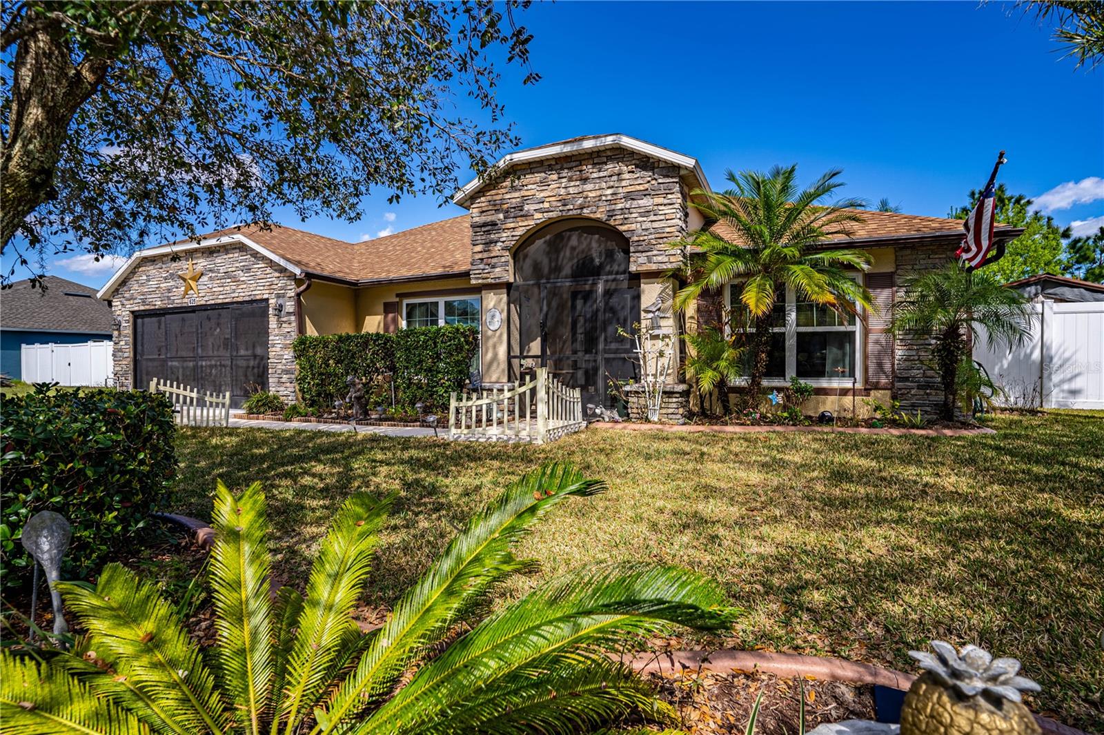 Bem-vindo a esta impressionante casa de 4 quartos e dois banheiros em um espaçoso lote de meio hectare, oferecendo o equilíbrio perfeito de conforto e vida ao ar livre. Situado em um ambiente pacífico, esta propriedade possui um quintal cercado com paisagismo maduro que aumenta sua beleza natural. Os principais recursos incluem um gerador de casas inteiras, um poço de água com aspersores e torneiras, e portas de garagem selecionadas e entrada da frente para manter as pragas fora e deixar entrar a brisa. O telhado mais recente (2022) fornece tranquilidade, enquanto as clarabóias na cozinha e na sala enchem a casa com luz natural. A casa também possui pisos de ladrilhos por toda parte e foi meticulosamente mantida, com o exterior pintado em 2022 e as paredes e tetos internos pintados em 2024. Saia para uma piscina de 12 'totalmente fechada com uma área de estar e cozinha, perfeita para entretenimento. O lanai fechado de 14 x 75 'oferece espaço adicional para relaxamento ou jantar. A cozinha e os banheiros apresentam lindas bancadas de pedra, acrescentando um toque de elegância. Para necessidades de armazenamento, esta propriedade inclui três galpões de armazenamento de 4 x 8 e galpões maiores, incluindo um galpão de 15 x 20, 14 x 16 e 10 x 10 galpões. A propriedade também possui uma casa de pedra e caixa de correio inglês, adicionando charme e caráter. Uma garagem para dois carros com oficina oferece muito espaço para veículos e projetos. Com tanto a oferecer, esta casa é o refúgio final para quem aprecia a funcionalidade e a beleza. Venha ver hoje!