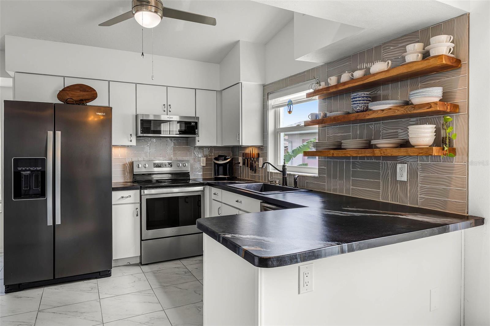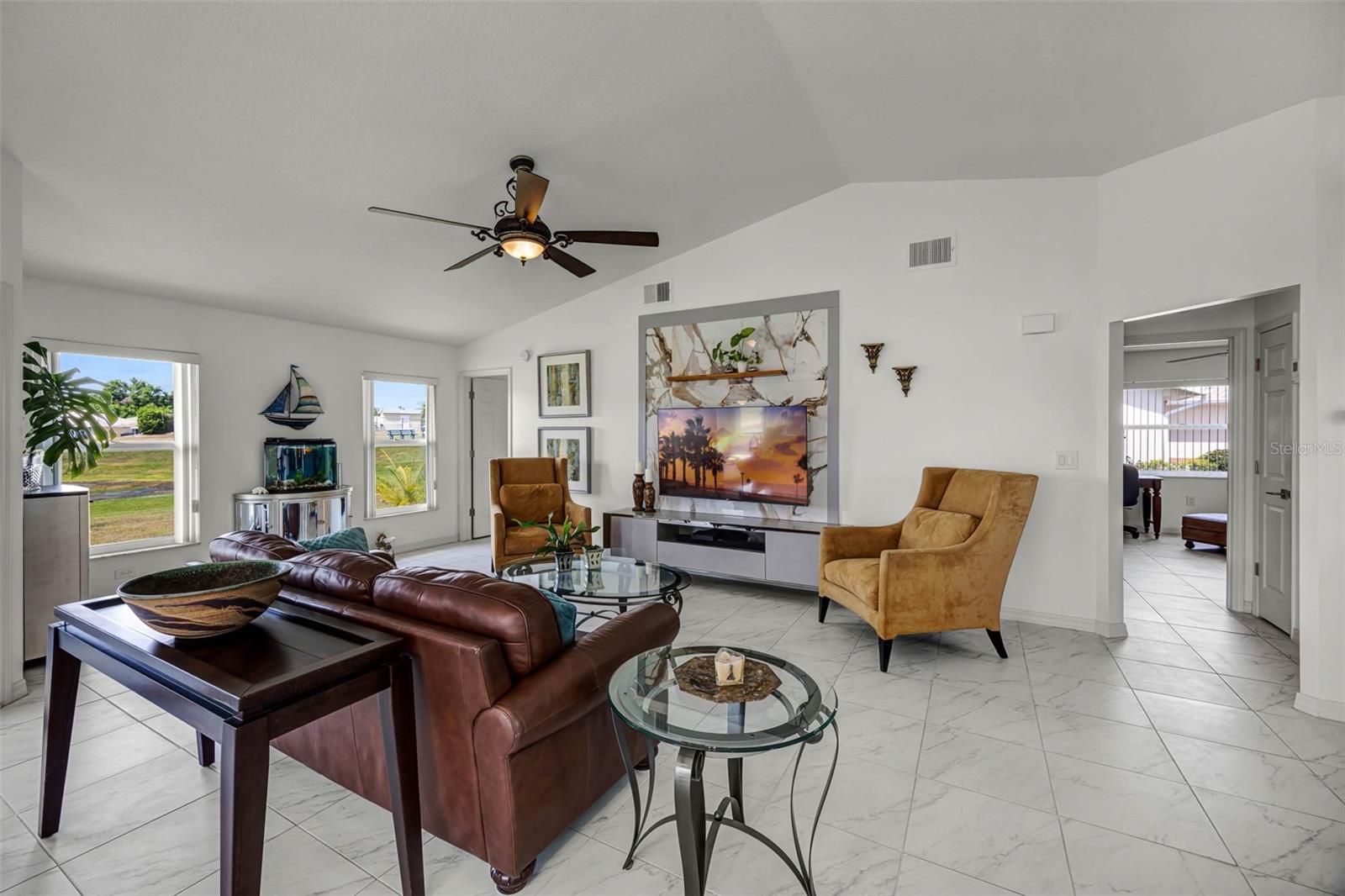 Localizada na comunidade fechada altamente desejável de Lake Henry Estates, esta casa de 2 quartos e 2 banheiros está sendo oferecida em casa de 2 banheiros, está sendo oferecida totalmente mobiliada e pronta para a mão pronta. Ao entrar, um encantador pátio da frente adornado com pavimentadores convida você a sentar e relaxar. Esta planta baixa de conceito aberto mostra vistas deslumbrantes da lagoa e do campo de golfe. A cozinha possui um elegante backsplash de telha que complementa perfeitamente as bancadas com acabamento epóxi, armários brancos e prateleiras flutuantes. Uma pia dupla com um sistema de osmose reversa aumenta a funcionalidade, enquanto uma barra de café da manhã oferece assentos adicionais. Uma despensa e dois nichos fechados oferecem amplo armazenamento. O acolhedor canto de café da manhã tem vista para o pátio da frente, tornando -o um local delicioso para aproveitar seu café da manhã. A espaçosa sala grande apresenta uma impressionante parede de sotaque de mármore, uma unidade de entretenimento embutida e tetos abobadados, criando um espaço convidativo e elegante. O piso de telha corre por toda a casa para uma aparência perfeita e polida. Uma sala de jantar formal oferece o cenário perfeito para entreter os hóspedes. A suíte principal do quarto inclui um closet e uma cabeceira de madeira recuperada com iluminação de argola, adicionando um toque de designer. O banheiro privativo é um retiro privado, com um chuveiro, um armário de linho, pias de tigela de vidro duplas e uma bancada de madeira personalizada única. A suíte de convidados é cuidadosamente projetada com uma atraente cama Murphy e um ventilador de teto atualizado. A sala da Flórida oferece vistas serenas do lago e do campo de golfe, tornando -o um espaço ideal para relaxar. As atualizações adicionais incluem uma lavadora e secadora inteligente atualizada, um sistema de amaciador de água, interior e exterior recém-pintados, um sistema HVAC com um purificador de ar, escadas no sótão puxadas, piso de ladrilho novo por toda parte, maçanetas de porta de alavanca de alavanca elegantes, calçadas com pavimentação e uma garagem de dois carros com um toque de entrada sem chave. Os moradores desta comunidade adulta ativa desfrutam de uma variedade de comodidades no estilo resort, incluindo um clube à beira do lago, uma piscina aquecida, quadras de pickleball e tênis, torneios de cartas, uma biblioteca, uma sala de bilhar, uma sala de artesanato, um centro de fitness, workshop, shuffleboard, chapas de barco, bordo de barcos, um bar com um bar e um broto. Convenientemente localizado perto de uma variedade de opções de compras e restaurantes, esta casa oferece a mistura perfeita de luxo e estilo de vida.