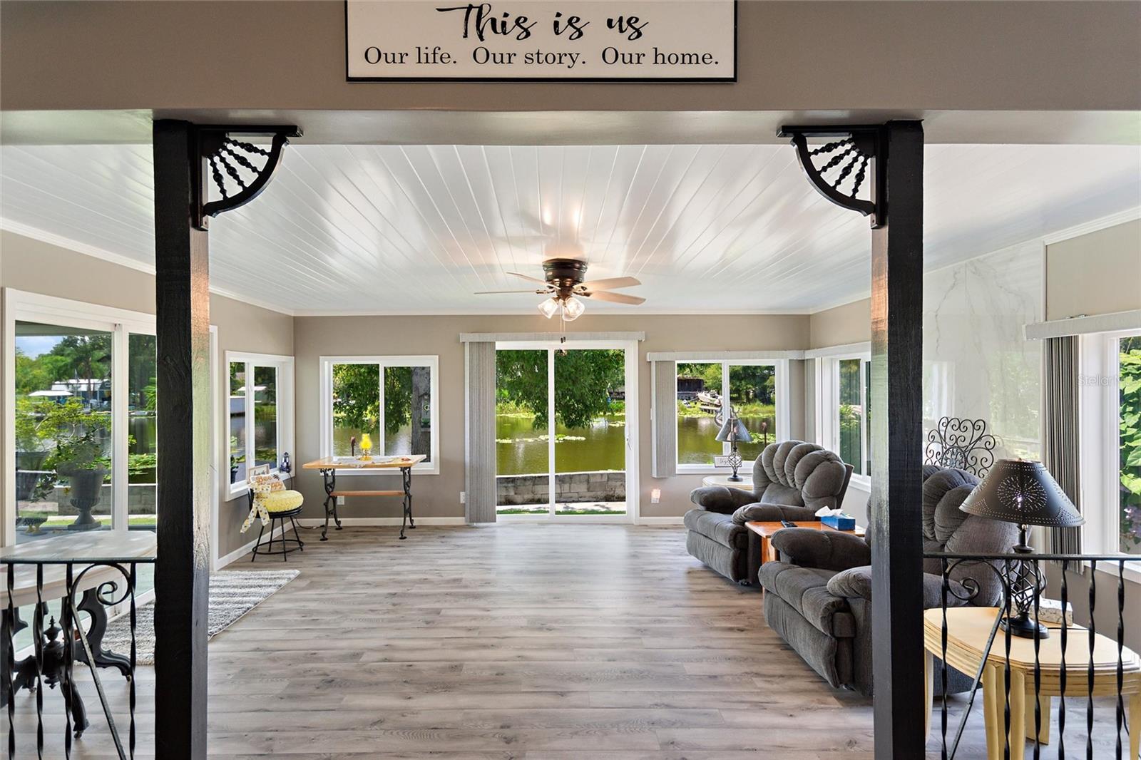 Venha desfrutar deste refúgio na água! Sente-se na varanda frontal de grandes dimensões ou aprecie a vista para o mar enquanto está sentado na enorme varanda fechada nos fundos. Esta casa está situada em 0,51 acres e tem vista para o canal que liga o Lago Ellen e o Lago Bonnet. Esta casa tem a sua própria rampa para barcos privada e 2 áreas de estacionamento cobertas para os seus barcos. As características exteriores incluem também 2 galpões e uma enorme oficina, tudo dentro de um quintal completamente vedado com um paredão nas traseiras. Há também uma sala Florida do lado de fora da sala de jantar. A casa também tem utilidade interna ao lado da cozinha. Esta casa tem uma planta dividida com 2 quartos de um lado da espaçosa sala de estar e o quarto principal do outro lado. O banheiro principal tem um chuveiro vertical, bem como uma banheira de jardim profunda separada para relaxar depois de um dia no barco.