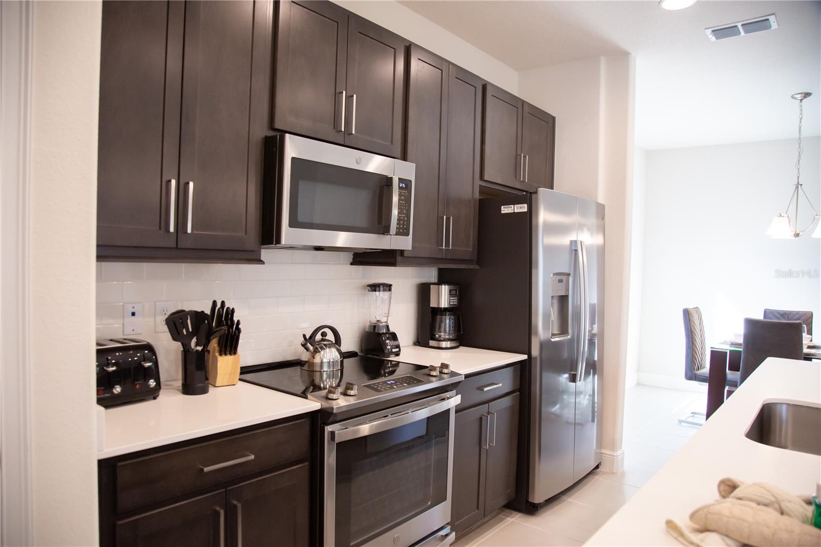 Máquina de lavar louça, secadora, micro-ondas, fogão, geladeira, compactador de lixo, lavadora