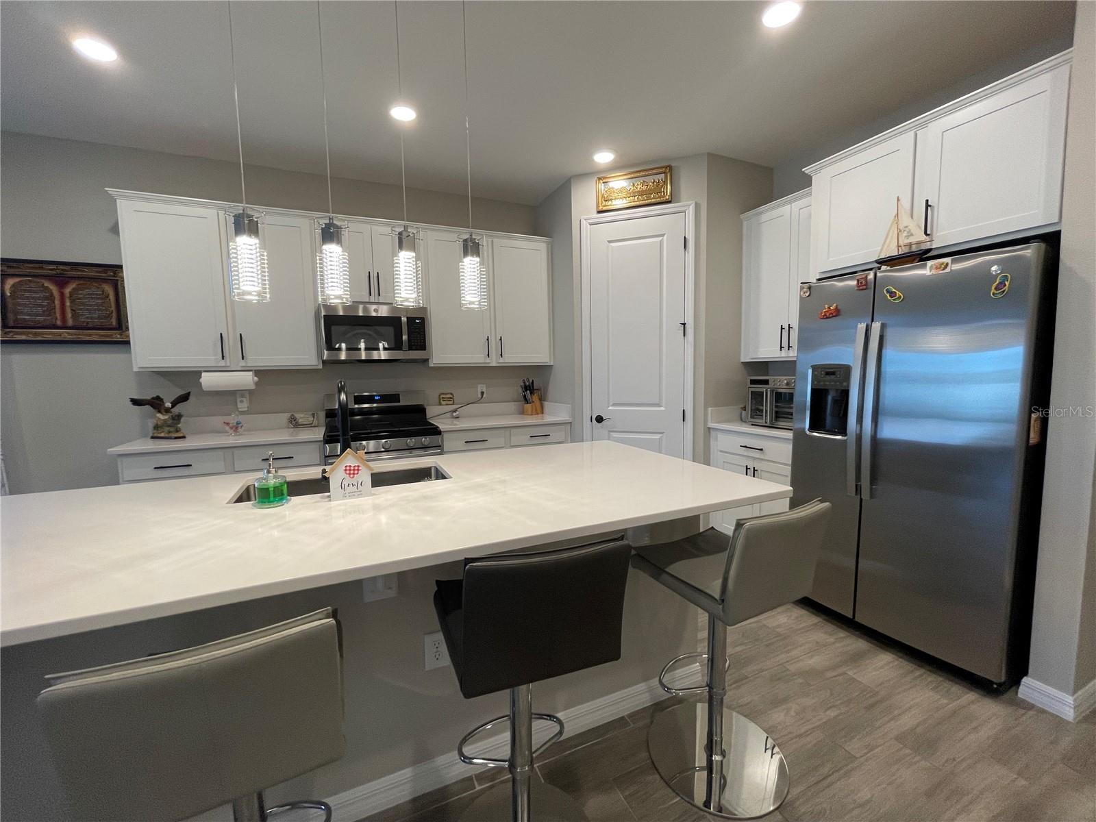 O piso de cerâmica contemporâneo enfeita a passarela principal, sala de jantar, cozinha e sala grande. Eletrodomésticos GE de aço inoxidável, bancadas de quartzo e armários de 42"destacam uma cozinha luxuosa. Experimente a vida na Flórida no seu melhor com uma grande varanda coberta de tela que não possui vizinho traseiro e um lote premium. Um grande quarto principal com banheiro privativo possui um box de chuveiro de azulejos e pia dupla. Uma lista obrigatória de atualizações elegantes pelas quais você certamente se apaixonará. Esta propriedade tem muitas atualizações: pedras na frente, calhas, varanda de tela, fogão a gás, conexão, tanque de gás, Organizador de armário no quarto principal, escada na garagem, ventilador na sala e varanda, persianas em todas as janelas, fechadura na porta da frente, luz UV no ar central, filtro de água ultravioleta e abridor de garagem. É uma boa oportunidade.