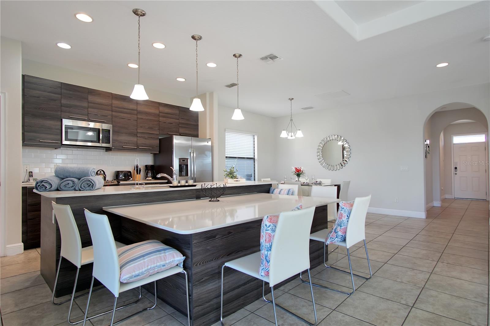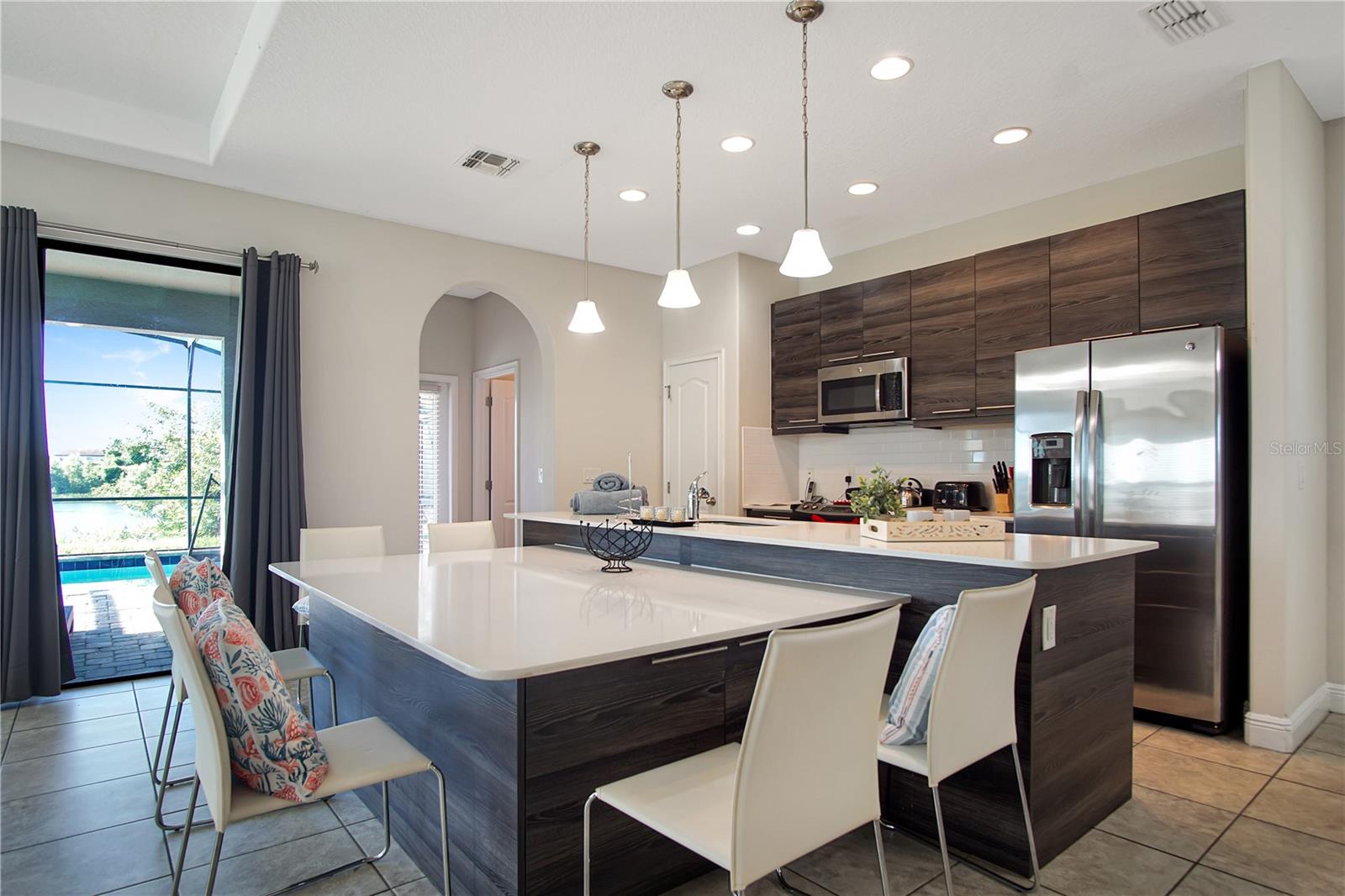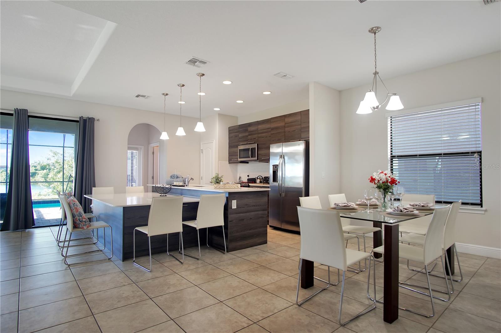 Bem -vindo ao Balmoral! Esteja você procurando uma propriedade de investimento, uma segunda casa ou uma residência permanente, esta casa é a combinação perfeita. Localizada na vibrante comunidade Balmoral, você desfrutará de uma infinidade de comodidades, incluindo uma entrada fechada, um centro de eventos, uma academia, um fliperama, uma piscina em estilo resort com um bar e restaurante completo, um palco de eventos mensais e campos esportivos. Convenientemente situado a uma curta distância do clube principal, esta casa oferece uma mistura ideal de luxo e conveniência. Ao chegar, você será recebido por uma entrada de automóveis atualizada e uma espaçosa garagem de dois carros com armazenamento extra na parte de trás. Movendo-se para a parte traseira da propriedade, você descobrirá uma vista deslumbrante da lagoa e uma piscina privada sob um grande pátio exibido. O convés da piscina totalmente pavimentado, completo com espreguiçadeiras, promete relaxamento sem fim. Entre para encontrar um dos seis quartos e banheiros à direita, perfeitos para os hóspedes ou aqueles que preferem a vida no térreo. A área de estar principal inclui um espaço para refeições, uma sala de estar e uma cozinha com utensílios de aço inoxidável combinando. Essa área, juntamente com todas as áreas molhadas, possui pisos de ladrilhos, enquanto os quartos, escadas e loft no andar de cima são acertados. Um banheiro meio está convenientemente localizado perto do convés da piscina, e uma porta de vidro deslizante fornece acesso direto à piscina. No andar de cima, uma área de loft aconchegante leva a um armário de lavanderia com uma lavadora e secadora. Os cinco quartos adicionais têm seus próprios banheiros particulares, garantindo conforto e privacidade para todos os residentes. Esta casa está totalmente mobiliada e pronta para você se mudar. A localização principal de Balmoral, no coração de Haines City, oferece fácil acesso a inúmeras lojas e restaurantes. Além disso, para os entusiastas da Disney, essa propriedade é um sonho tornado realidade. Agende sua visualização hoje - esta oportunidade não vai durar muito!