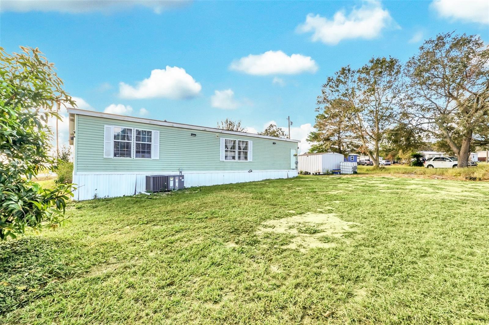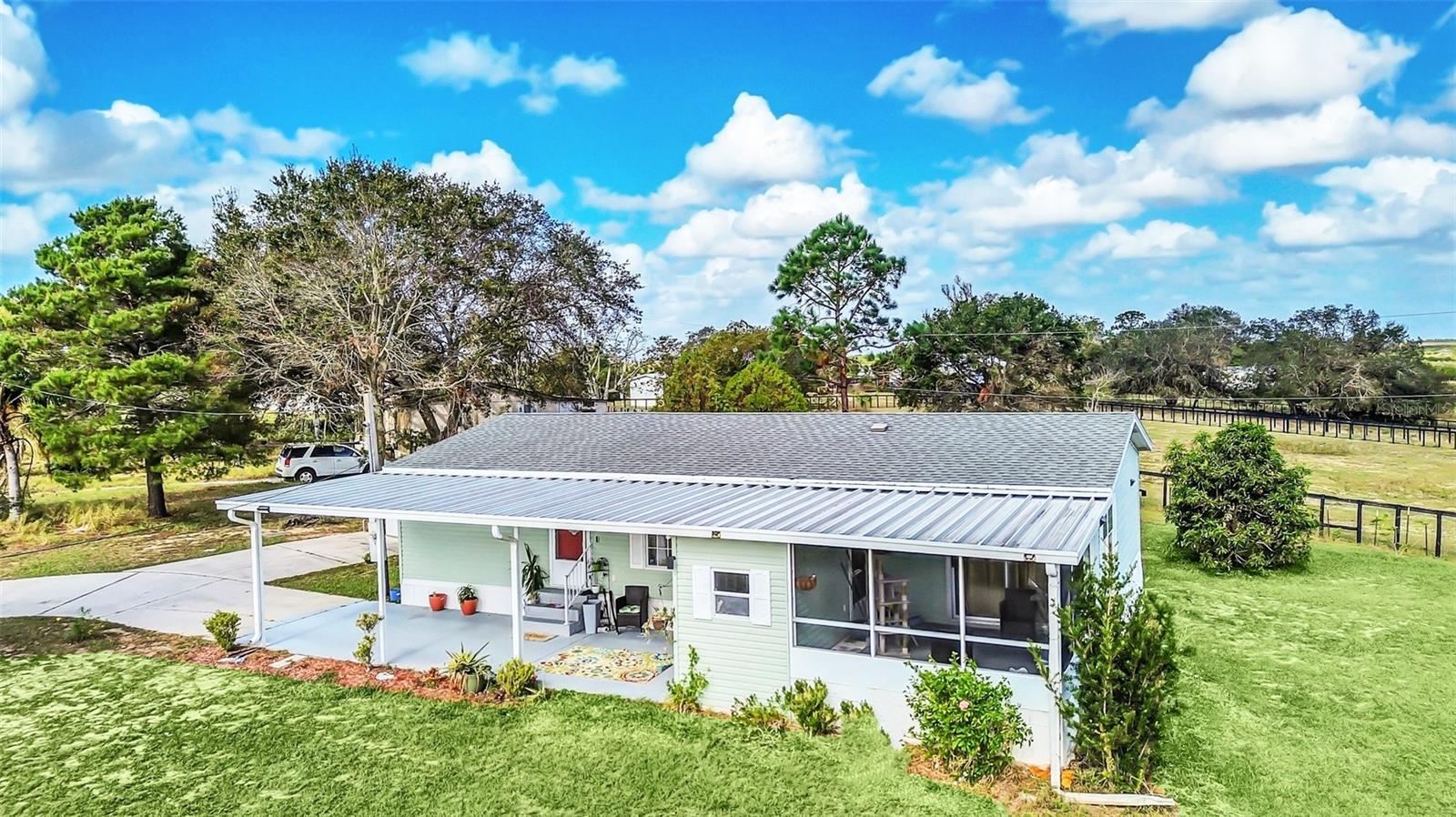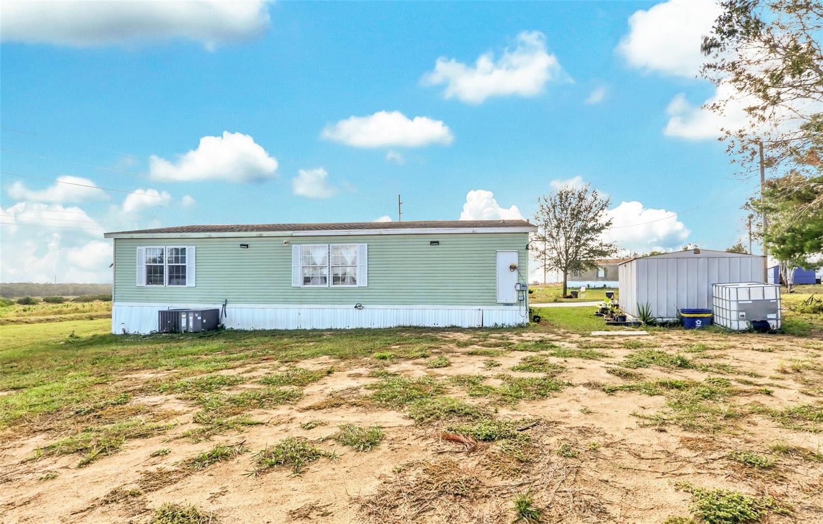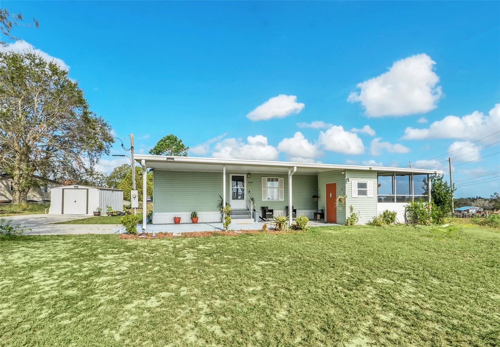 Esta serena casa pré-fabricada de 2 quartos e 2 banheiros de largura dupla em um amplo terreno de esquina de meio acre é a sua fuga perfeita. Imagine acordar com a tranquilidade da natureza, bem no seu quintal! Entre e seja recebido por uma espaçosa área de estar e jantar que flui perfeitamente para a cozinha bem equipada, oferecendo armários e balcão. A suíte master possui um amplo closet e banheiro privativo. O segundo quarto e o banheiro proporcionam privacidade para todos da casa. Os tetos abobadados criam uma atmosfera arejada e aberta, enquanto o pátio com tela oferece um ambiente externo encantador, acessível tanto pela sala de jantar quanto pelo exterior. Uma garagem coberta e muito espaço na garagem garantem um estacionamento conveniente, e um galpão de armazenamento oferece amplo espaço para todas as suas ferramentas e equipamentos.