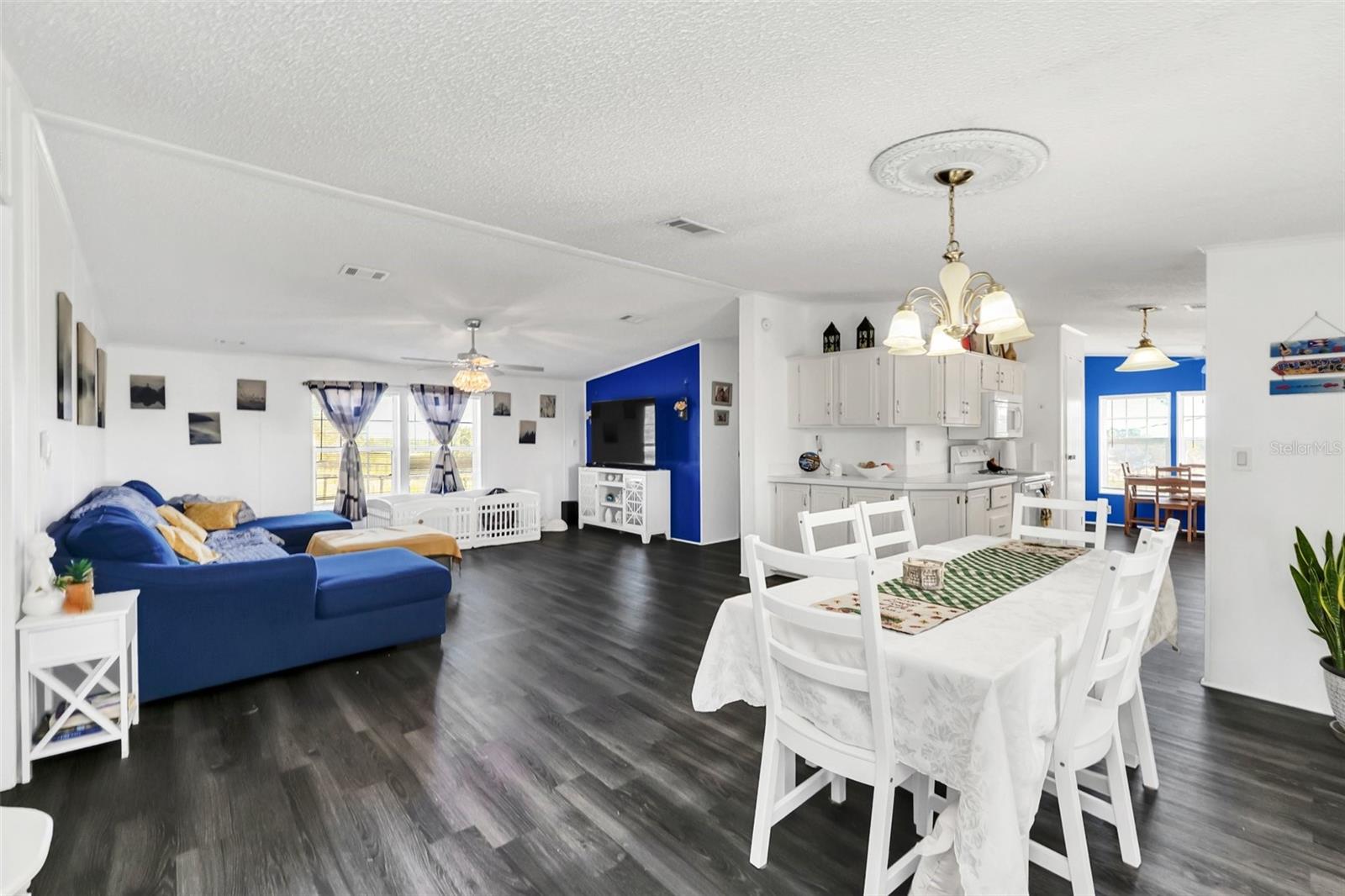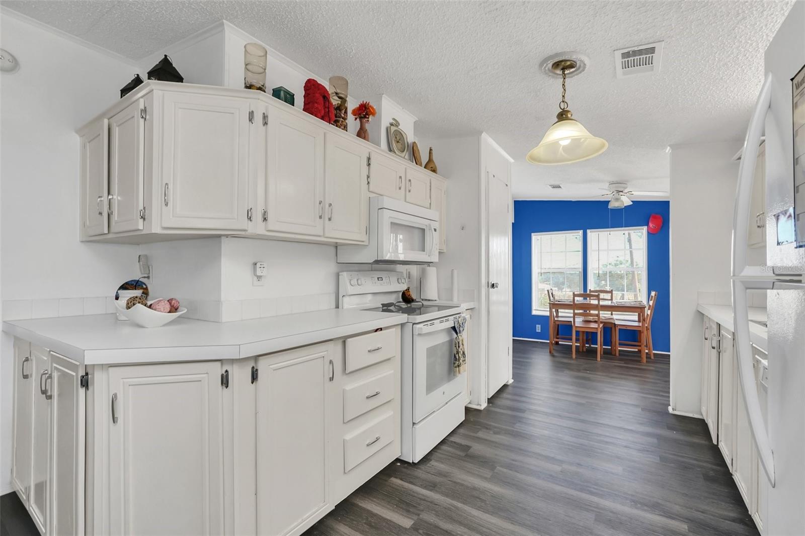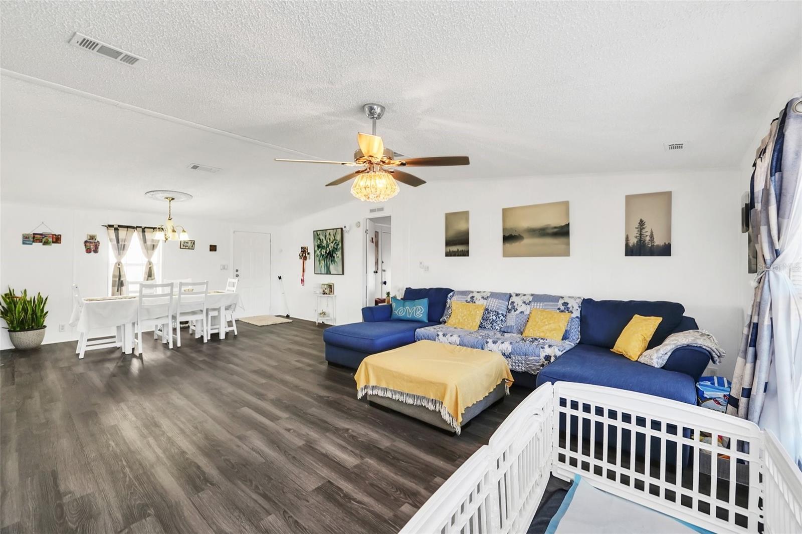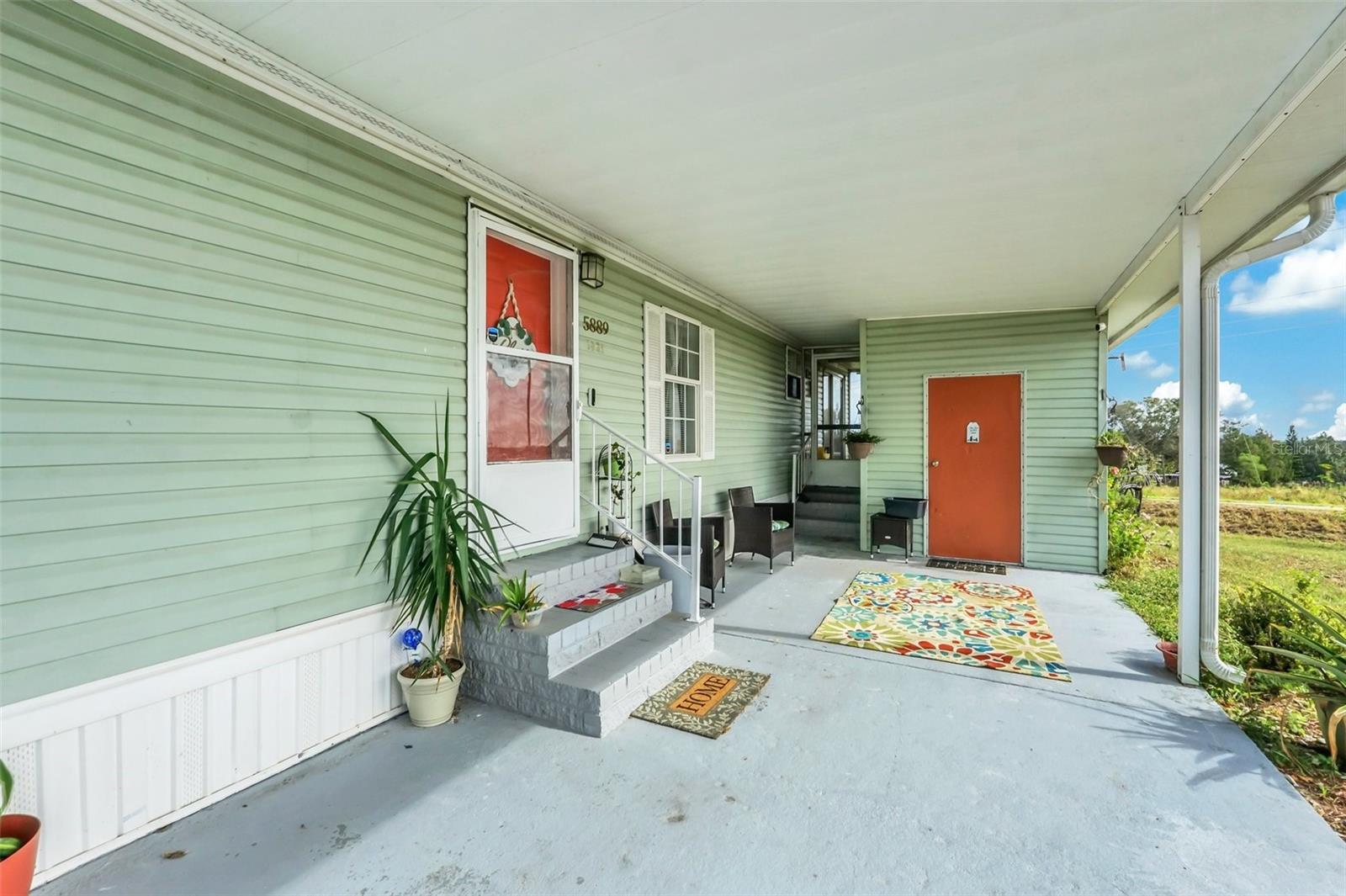 Esta serena casa pré-fabricada de 2 quartos e 2 banheiros de largura dupla em um amplo terreno de esquina de meio acre é a sua fuga perfeita. Imagine acordar com a tranquilidade da natureza, bem no seu quintal! Entre e seja recebido por uma espaçosa área de estar e jantar que flui perfeitamente para a cozinha bem equipada, oferecendo armários e balcão. A suíte master possui um amplo closet e banheiro privativo. O segundo quarto e o banheiro proporcionam privacidade para todos da casa. Os tetos abobadados criam uma atmosfera arejada e aberta, enquanto o pátio com tela oferece um ambiente externo encantador, acessível tanto pela sala de jantar quanto pelo exterior. Uma garagem coberta e muito espaço na garagem garantem um estacionamento conveniente, e um galpão de armazenamento oferece amplo espaço para todas as suas ferramentas e equipamentos.
