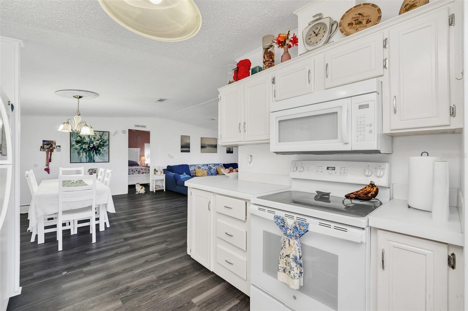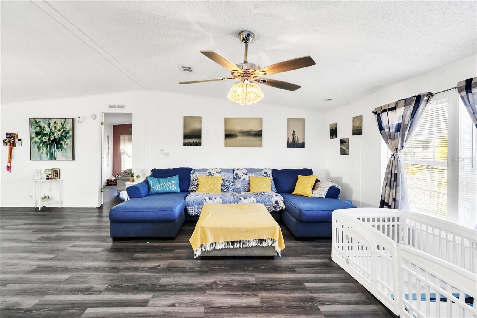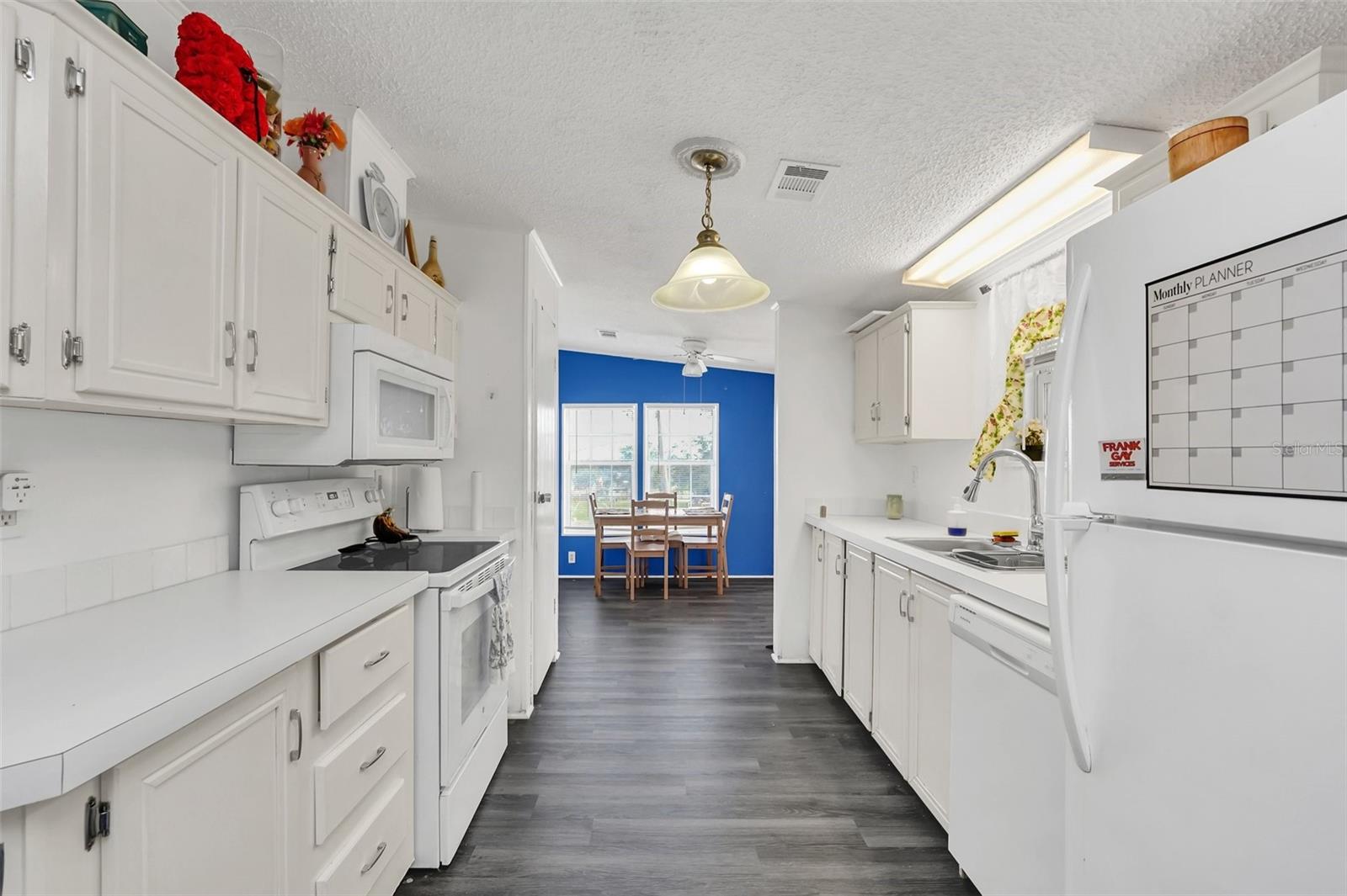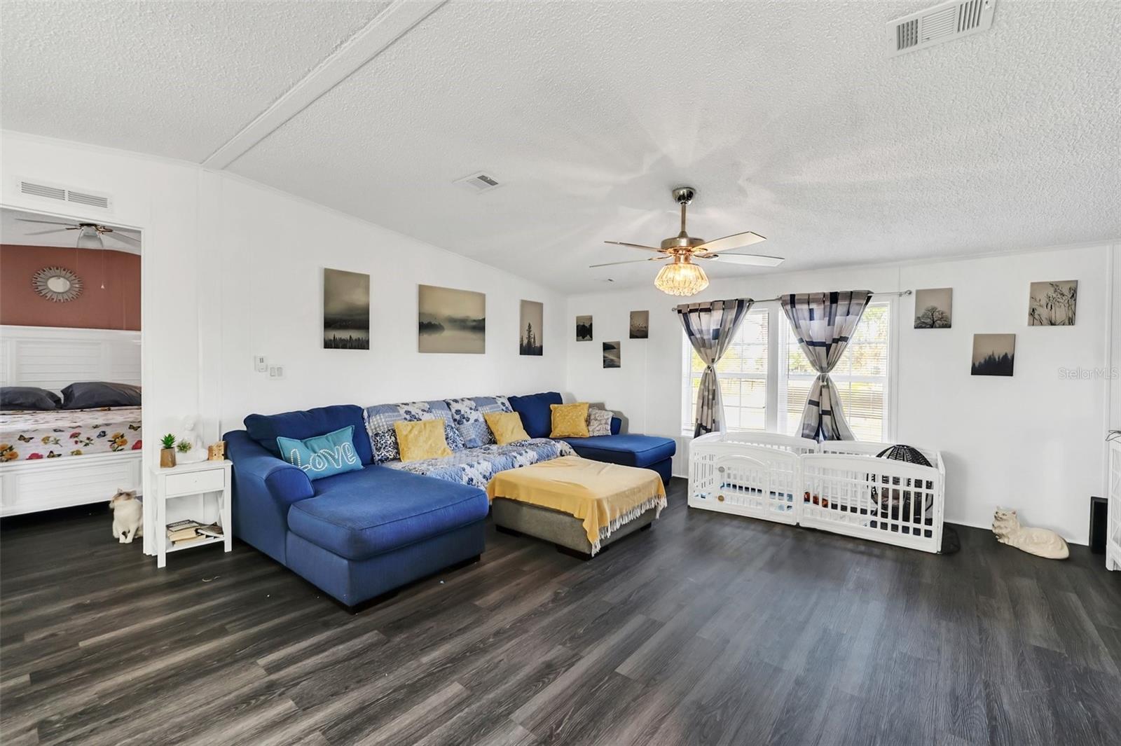 Esta serena casa pré-fabricada de 2 quartos e 2 banheiros de largura dupla em um amplo terreno de esquina de meio acre é a sua fuga perfeita. Imagine acordar com a tranquilidade da natureza, bem no seu quintal! Entre e seja recebido por uma espaçosa área de estar e jantar que flui perfeitamente para a cozinha bem equipada, oferecendo armários e balcão. A suíte master possui um amplo closet e banheiro privativo. O segundo quarto e o banheiro proporcionam privacidade para todos da casa. Os tetos abobadados criam uma atmosfera arejada e aberta, enquanto o pátio com tela oferece um ambiente externo encantador, acessível tanto pela sala de jantar quanto pelo exterior. Uma garagem coberta e muito espaço na garagem garantem um estacionamento conveniente, e um galpão de armazenamento oferece amplo espaço para todas as suas ferramentas e equipamentos.