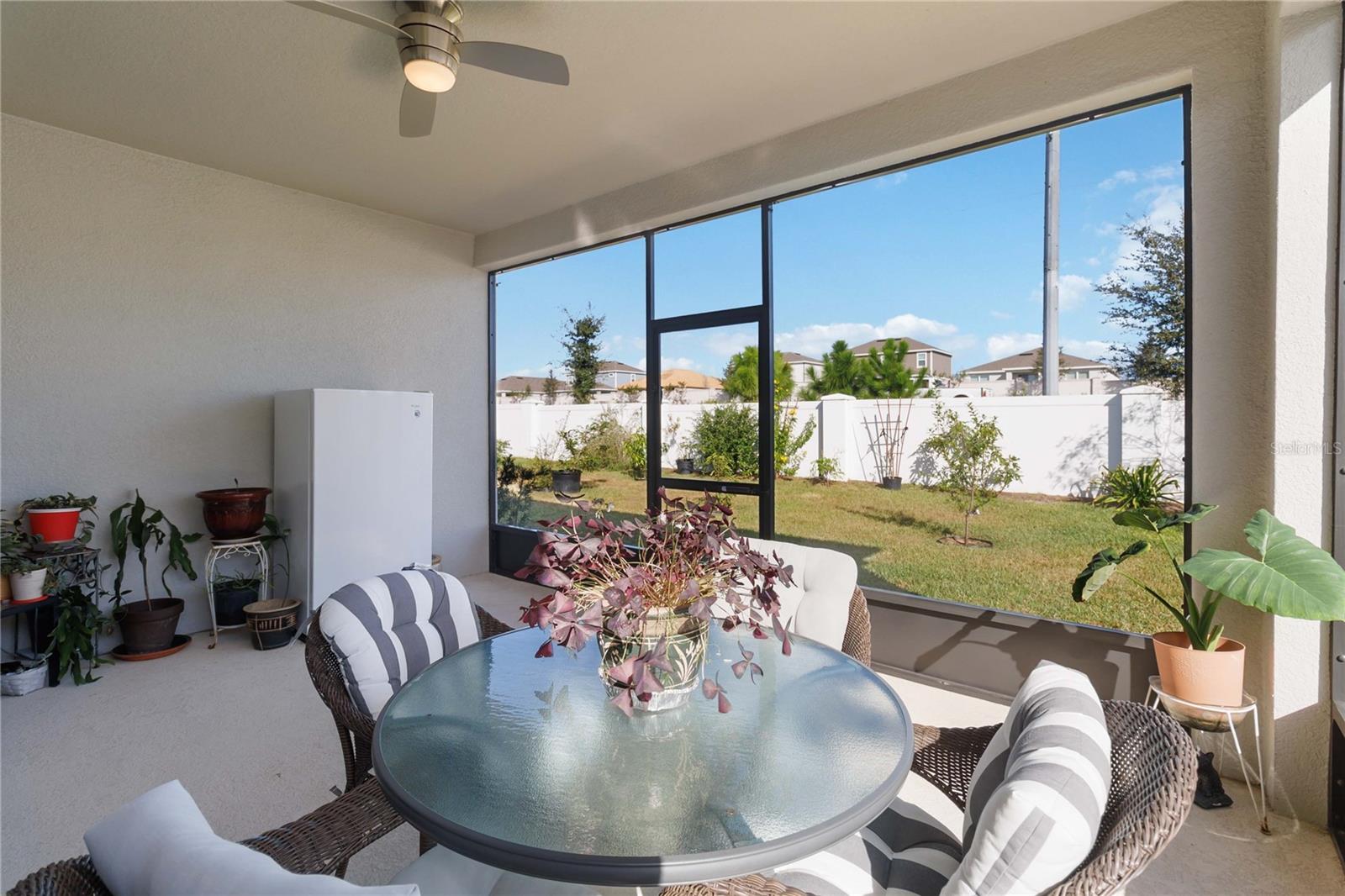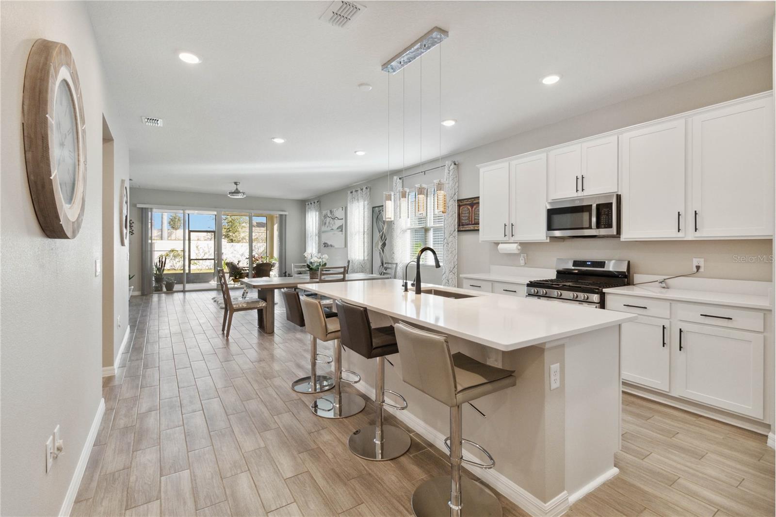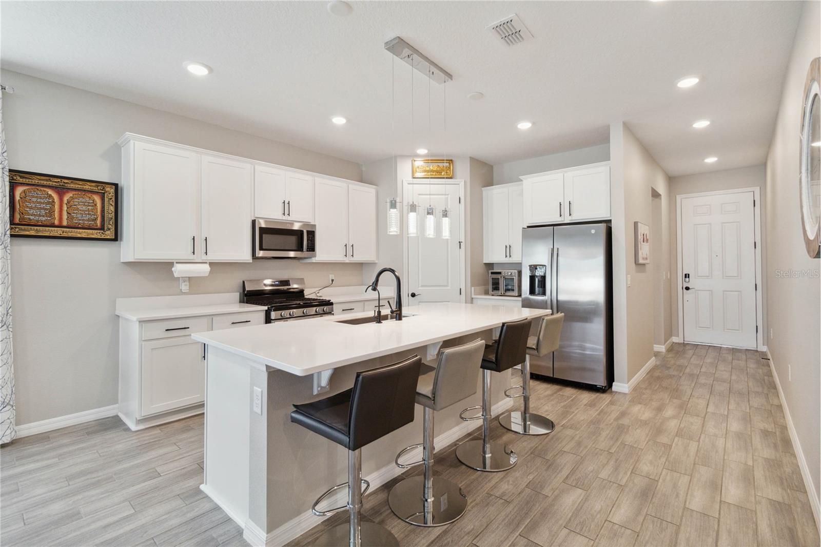 Entre nesta casa deslumbrante, onde o piso de cerâmica contemporâneo flui perfeitamente pela passarela principal, área de jantar, cozinha e sala grande. A cozinha gourmet é o sonho de qualquer chef, ostentando elegantes bancadas de quartzo, armários de 42” e eletrodomésticos GE de aço inoxidável de alta qualidade. A vida na Flórida ganha vida na ampla varanda com tela, oferecendo privacidade sem vizinhos traseiros e um lote premium para maior tranquilidade. A espaçosa suíte master oferece uma experiência de retiro, completa com banheiro privativo com box de chuveiro lindamente revestido de azulejos e pia dupla. Esta casa está repleta de atualizações elegantes, desde a elegante fachada de pedra e organizador de armário personalizado no quarto principal até o fogão a gás e ar central com luz ultravioleta. Recursos adicionais incluem: Calhas e alpendre para diversão ao ar livre, escada na garagem para armazenamento extra, ventiladores de teto na sala e varanda para maior conforto, bela iluminação sob as bancadas da cozinha, persianas em todas as janelas para maior privacidade, filtragem avançada de água com tecnologia ultravioleta O quintal paisagístico é um refúgio tropical, com árvores frutíferas como graviola, abacate, acerola, toranja, figueira, ameixa, manga, mamão e poejo. Não perca esta incrível oportunidade de possuir uma casa com acabamentos luxuosos e comodidades práticas.