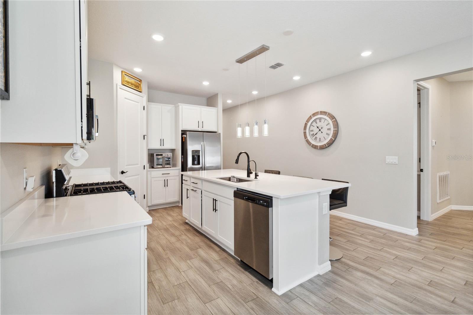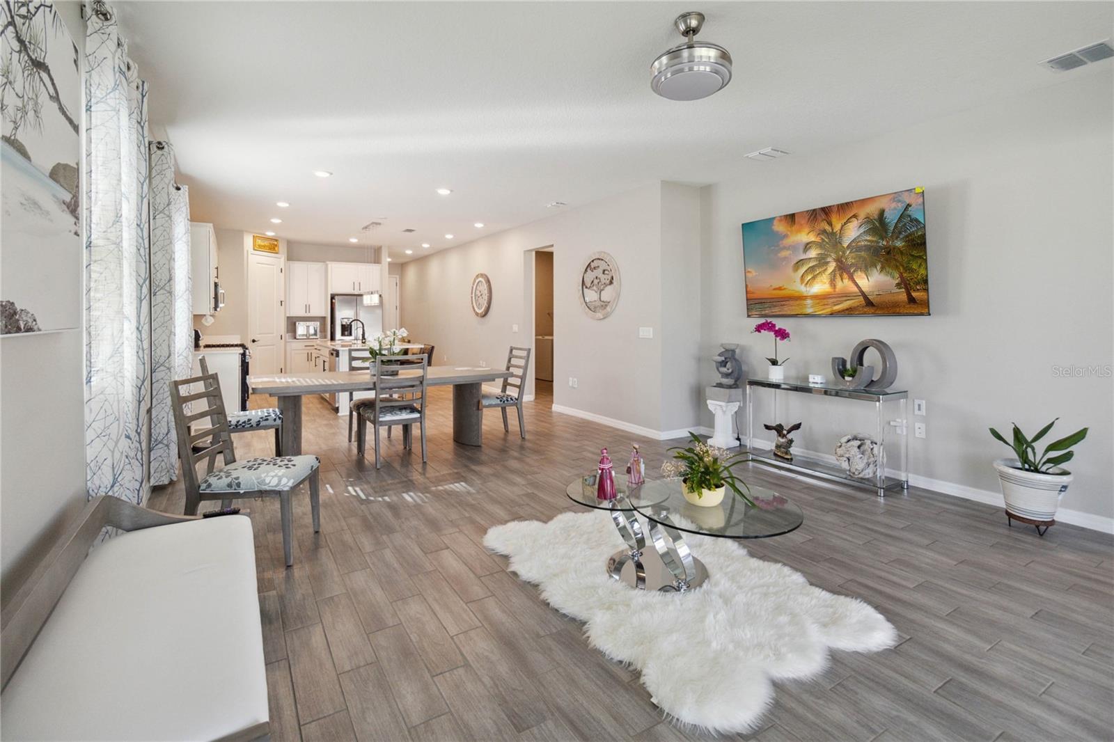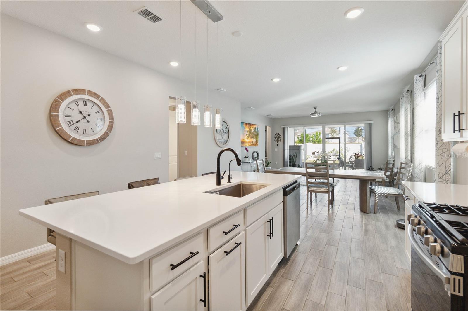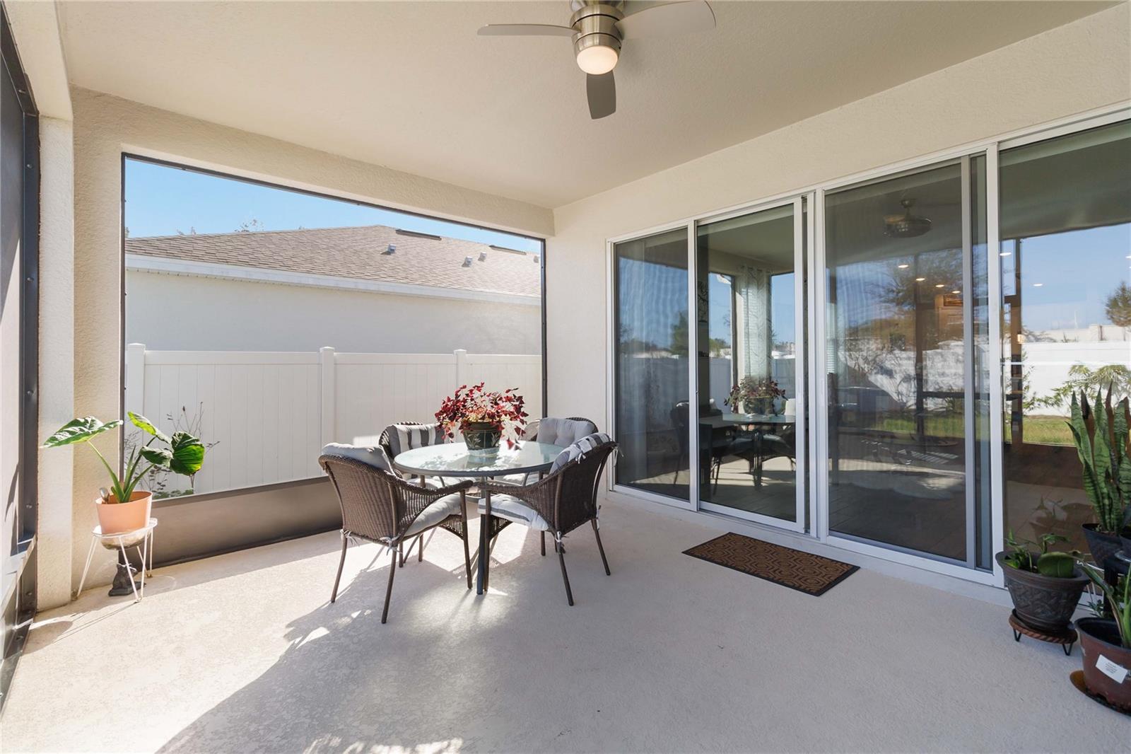 Entre nesta casa deslumbrante, onde o piso de cerâmica contemporâneo flui perfeitamente pela passarela principal, área de jantar, cozinha e sala grande. A cozinha gourmet é o sonho de qualquer chef, ostentando elegantes bancadas de quartzo, armários de 42” e eletrodomésticos GE de aço inoxidável de alta qualidade. A vida na Flórida ganha vida na ampla varanda com tela, oferecendo privacidade sem vizinhos traseiros e um lote premium para maior tranquilidade. A espaçosa suíte master oferece uma experiência de retiro, completa com banheiro privativo com box de chuveiro lindamente revestido de azulejos e pia dupla. Esta casa está repleta de atualizações elegantes, desde a elegante fachada de pedra e organizador de armário personalizado no quarto principal até o fogão a gás e ar central com luz ultravioleta. Recursos adicionais incluem: Calhas e alpendre para diversão ao ar livre, escada na garagem para armazenamento extra, ventiladores de teto na sala e varanda para maior conforto, bela iluminação sob as bancadas da cozinha, persianas em todas as janelas para maior privacidade, filtragem avançada de água com tecnologia ultravioleta O quintal paisagístico é um refúgio tropical, com árvores frutíferas como graviola, abacate, acerola, toranja, figueira, ameixa, manga, mamão e poejo. Não perca esta incrível oportunidade de possuir uma casa com acabamentos luxuosos e comodidades práticas.