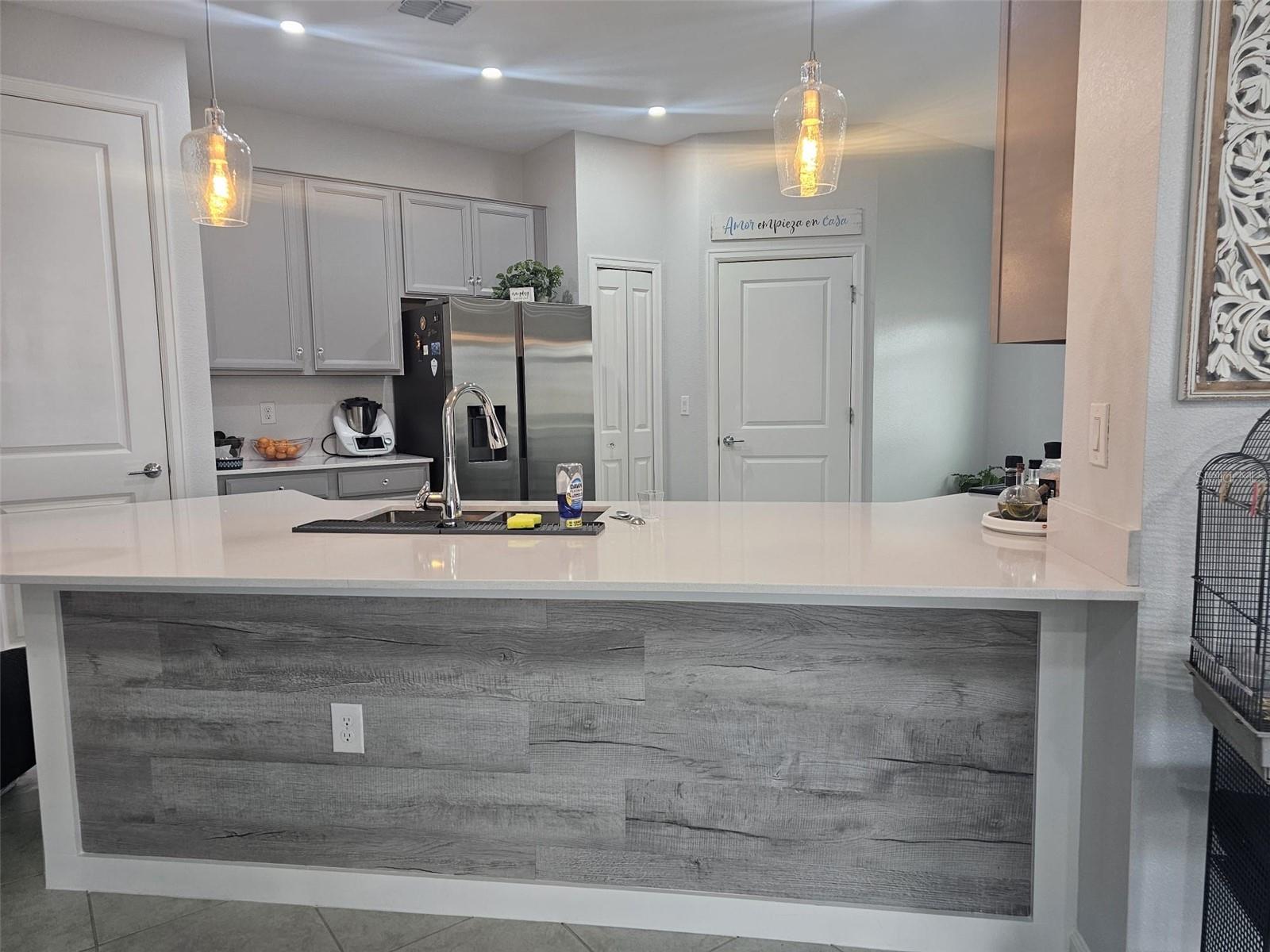Casa térrea Amazing Fence, planta aberta, cozinha aberta com balcões de quartzo, eletrodomésticos de aço inoxidável, recursos de casa inteligente, como fechaduras sem chave, campainhas de vídeo e câmera de segurança, varanda com tela, uma despensa fabulosa e vista para a sala da família. O sótão foi atualizado com madeira dura. Esta ótima casa tem uma suíte para sogra se tornando uma tendência cada vez mais popular entre as famílias hoje, com entrada separada para um quarto, com sala de estar própria, banheiro, chuveiro e uma cozinha compacta com lava-louças, micro-ondas, geladeira, máquina de lavar e secadora, dando sensação de privacidade e independência aos pais ou jovens ainda em casa. Ótima localização, fácil acesso à I-4, Walt Disney World, Universal Studios, Legoland, shopping center, hospitais, restaurantes e muito mais.