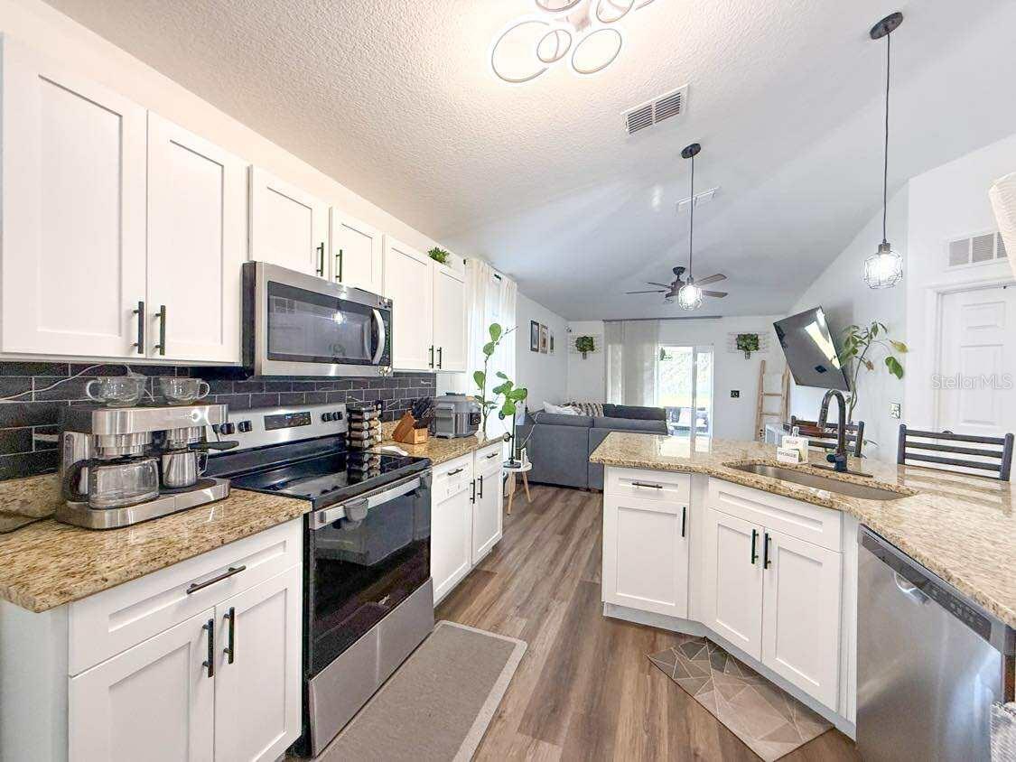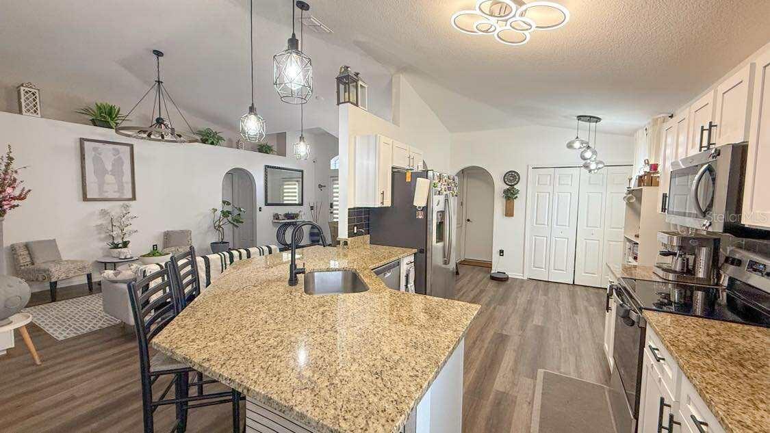 Casa à venda em Haines City !! Lindamente atualizada propriedade de 3 quartos e 2 banheiros, localizada na comunidade desejável de Stonewood Crossings. A partir do momento em que você chegar, você será recebido pelo charme de um imponente carvalho. Entre e descubra um interior brilhante e acolhedor que foi recentemente atualizado com decoração de bom gosto e acabamentos modernos por toda parte. Piso de vinil de luxo em áreas comuns. A cozinha é um verdadeiro destaque, oferecendo armários de estilo reprodutor refinados, bancadas de granito elegantes e aparelhos de aço inoxidável. A suíte primária possui um closet e um banho privativo, enquanto os dois banheiros foram reformados com novas vaidades, iluminação atualizada e detalhes elegantes. Desfrute de relaxar ou divertir na varanda traseira exibida com vista para um quintal cercado privado, aprimorado com a sombra natural do carvalho. Este espaço ao ar livre é perfeito para churrascos de fim de semana ou noites tranquilas. A casa também possui um sistema HVAC mais recente para maior conforto e eficiência. A poucos minutos da Highway 27, Posner Park e I-4, você terá acesso rápido a compras, restaurantes e entretenimento. Esta casa é a combinação perfeita de conforto, estilo e conveniência. Programe sua exibição particular hoje