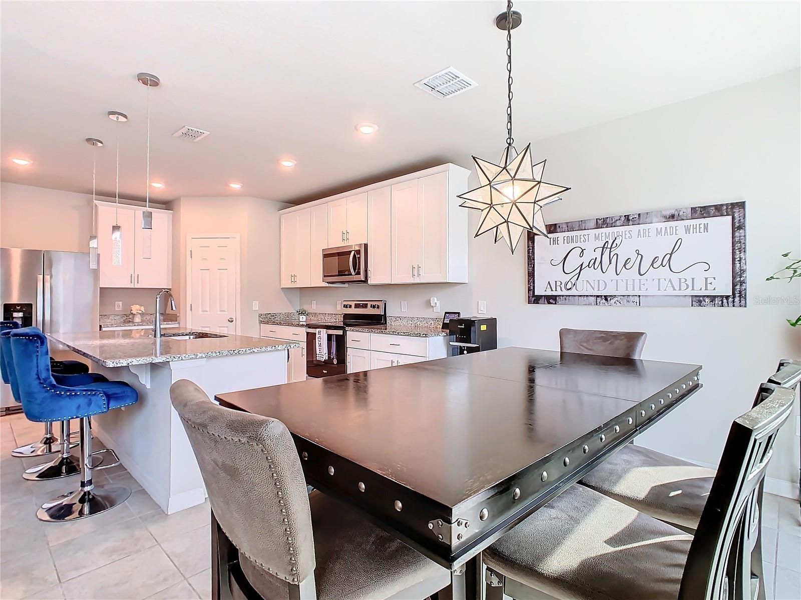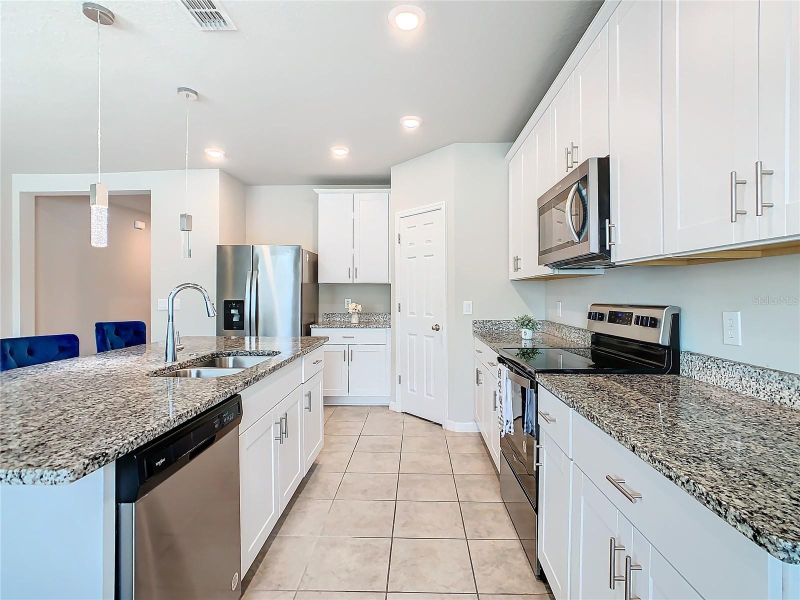 Descubra a combinação perfeita de estilo e eficiência nesta casa meticulosamente trabalhada e concluída em 2022 pela Meritage Homes. Esta residência possui 4 quartos, 3 banheiros completos, garagem para 2 carros e um layout aberto projetado para uma vida moderna. A 4 minutos das principais lojas, bancos e restaurantes. Localizado a apenas 25 minutos da Disney World, a cerca de 45 minutos do centro de Orlando e a uma hora de Tampa, oferece uma localização fantástica para trabalho e diversão. A entrada dá-lhe as boas-vindas com um amplo corredor que oferece espaço para uma mesa ou banco decorativo, criando uma primeira impressão convidativa. De um lado, você encontrará dois quartos com banheiro compartilhado convenientemente situados entre eles. No lado oposto encontra-se um quarto adicional, uma casa de banho completa e acesso à garagem. Mais ao fundo do corredor, a lavandaria aguarda-o com amplo espaço para eletrodomésticos e arrumação para manter a sua casa organizada. No final do corredor, a casa se abre para uma deslumbrante cozinha e área de estar. A cozinha apresenta elegantes bancadas em granito, despensa e eletrodomésticos de aço inoxidável de última geração, incluindo forno embutido. O fluxo contínuo para a área de estar o torna perfeito para entreter ou relaxar com a família. A suíte principal é escondida para máxima privacidade, com um quarto generoso, um banheiro tipo spa com box amplo e um grande armário que pode acomodar até o guarda-roupa mais extenso. Saia para desfrutar do quintal totalmente cercado, oferecendo privacidade e um espaço seguro para animais de estimação, atividades ao ar livre ou realização de reuniões. Construída pensando na sustentabilidade, esta casa está equipada com recursos que ajudam a economizar energia e água, garantindo o seu conforto. Não perca a oportunidade de fazer deste excepcional imóvel a sua nova casa!