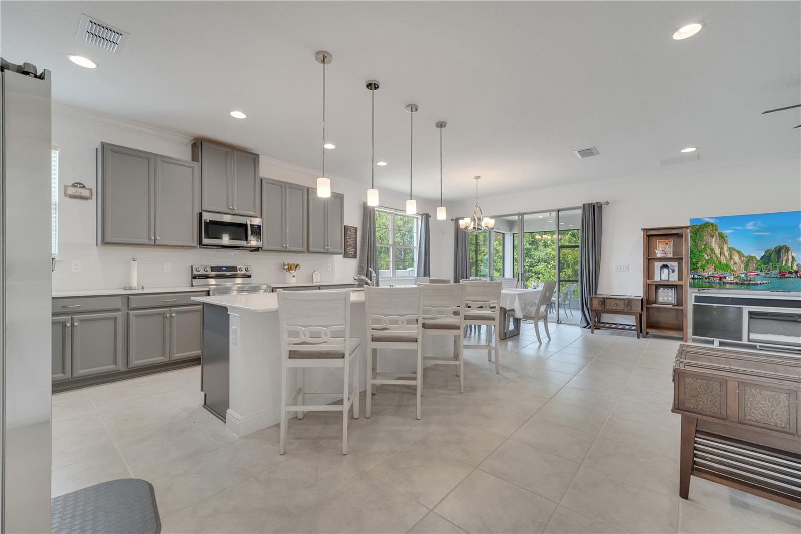 HIPOTECA ASSUMÍVEL! VENDEDOR MOTIVADO! Bem-vindo a esta casa unifamiliar lindamente decorada, localizada na pitoresca comunidade de Northlakes of Harmony. Projetada com conforto, acessibilidade e vida moderna em mente, esta espaçosa residência apresenta um layout de conceito aberto com 3 quartos, 3 banheiros, um quarto/arrumos flexíveis e uma generosa garagem para 2 carros, tudo distribuído em 2.355 pés quadrados de área útil com 3.000 pés quadrados de área total. Cada detalhe desta casa foi cuidadosamente aprimorado para proporcionar conveniência e estilo elevado. A cozinha gourmet é uma delícia para o chef, com bancadas de superfície de quartzo, armários personalizados atualizados em toda a casa e elegante piso de cerâmica em todos os quartos. Uma rede de Internet totalmente cabeada, Ethernet em cada quarto e cabeamento coaxial em todos os quartos suportam streaming e conectividade contínuos, complementados por uma antena de alta definição montada no sótão para acesso de TV local. Iluminação LED adicional e ventiladores em todos os quartos garantem uma iluminação brilhante e com baixo consumo de energia, enquanto um sistema de segurança residencial completo com fio e wi-fi e holofotes traseiros adicionais oferecem tranquilidade. Armários com pia na área de serviço proporcionam maior utilidade e armazenamento. A casa também foi projetada pensando na acessibilidade. Os banheiros adequados para deficientes físicos apresentam portas largas e vasos sanitários com altura confortável, e o chuveiro principal é equipado com chuveiros duplos, incluindo um para uso de deficientes físicos, e um assento embutido para maior facilidade e segurança. Desfrute de água limpa e refrescante em toda a casa com um sistema de filtragem de água UV para toda a casa e um sistema de ar condicionado UV para toda a casa. Sistema de supressão de surtos em toda a casa. Relaxe nas amplas áreas de jantar e de estar, ideais para entretenimento e conforto diário. A suíte principal oferece um retiro tranquilo com banheiro privativo tipo spa e um grande closet, enquanto dois quartos adicionais e um quarto/escritório versátil oferecem muito espaço para hóspedes, hobbies ou um escritório doméstico. Saia para a varanda coberta e aprecie a beleza serena desta comunidade lindamente mantida. Como residente de The Lakes at Harmony, você desfrutará de acesso privado a um condomínio fechado a uma impressionante variedade de comodidades em estilo resort, incluindo piscina com entrada zero, academia de ginástica de última geração, tênis, campo de golfe, quadras de pickleball e bocha, 19 quilômetros de trilhas cênicas, parques para cães e lagos tranquilos com barcos para alugar. As refeições no local e um calendário vibrante de eventos sociais e clubes oferecem inúmeras oportunidades para se conectar e desfrutar do estilo de vida que você merece. Esta casa não é apenas um lugar para morar, é uma porta de entrada para luxo, lazer e comunidade em um dos bairros mais procurados da Flórida.