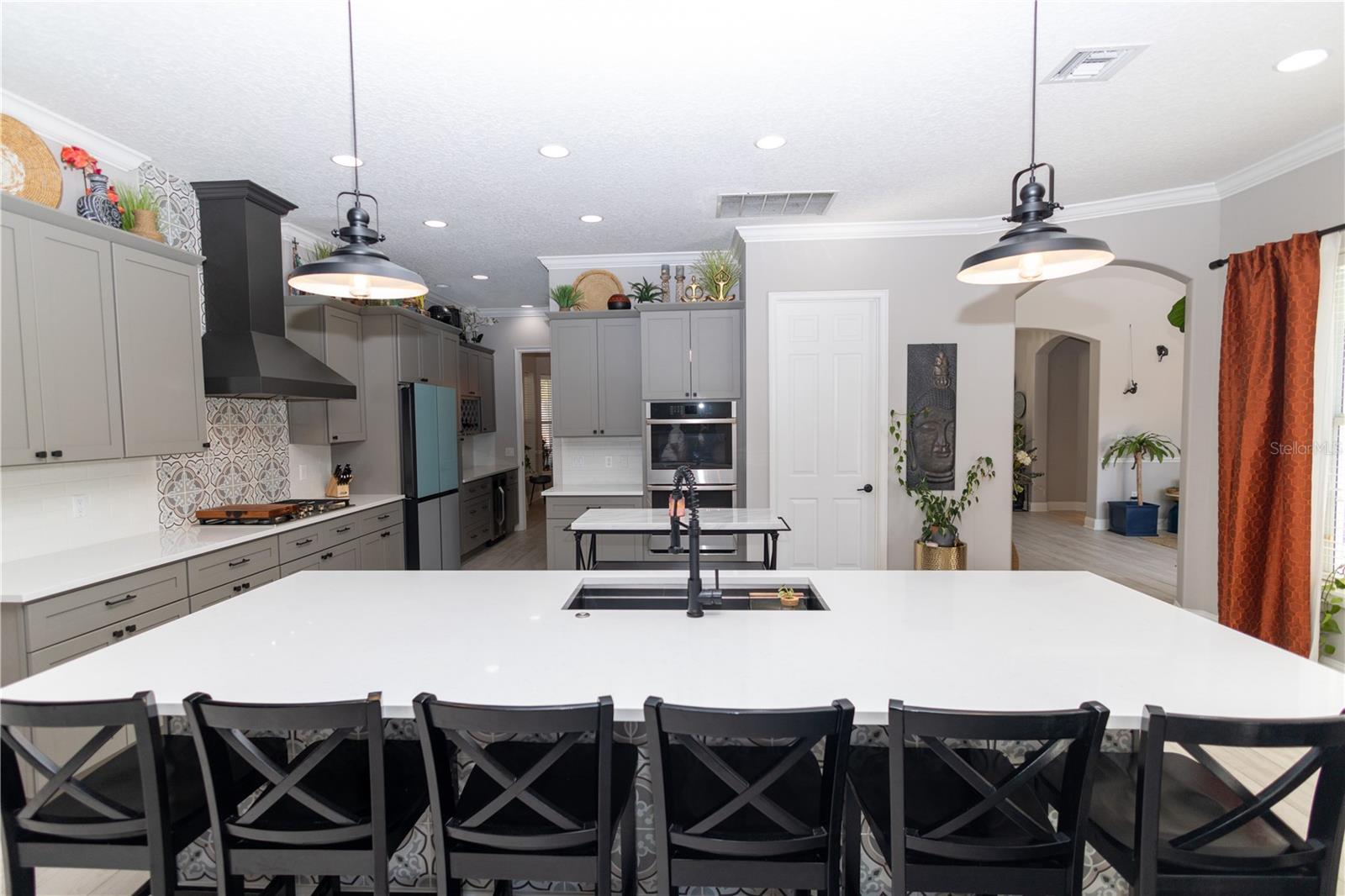 Apaixone-se por esta deslumbrante casa com piscina personalizada e um apartamento privativo para sogros - perfeita para uma vida multigeracional! O apartamento inclui cozinha própria, área de estar e banheiro completo, oferecendo flexibilidade e privacidade para hóspedes ou familiares. A suíte do proprietário no térreo está posicionada na frente da casa com belas vistas e acesso à piscina. Retire-se para sua espaçosa suíte com box amplo, banheira de hidromassagem, pias duplas e closet com prateleiras personalizadas. Um quarto flexível oculto exclusivo adiciona versatilidade incrível e pode ser usado como armário de segundo proprietário, academia particular, escritório ou quarto seguro. Saia para o seu oásis privado no quintal com uma piscina de água salgada com três cachoeiras, amplo pátio e privacidade adicional - perfeita para relaxar ou se divertir. Esta ampla residência oferece 5 quartos, 3 banheiros completos e 2 lavabos, além de garagem lateral para 2 carros com acesso conveniente por um beco. Aproveite a vida a poucos minutos do parque do bairro e do Lago Buck. Com 4.131 pés quadrados de área útil (5.656 pés quadrados no total), a casa recebe você com uma área de estar formal com vista para a linda piscina. O piso de porcelanato Monterey flui pela maior parte do andar de baixo, realçando o toque moderno. À direita do foyer, a sala de jantar formal oferece vista para o parque e para o splash pad do outro lado da rua. A cozinha gourmet atualizada foi projetada tanto para a vida cotidiana quanto para o entretenimento, com eletrodomésticos de aço inoxidável, bancada, backsplash de azulejos, forno embutido, micro-ondas, armários de madeira de 42 polegadas, uma grande ilha, despensa, iluminação embutida, sancas e despensa de mordomo. A lavanderia inclui armários adicionais e uma pia. As atualizações recentes incluem: novo telhado, bomba de piscina de água salgada de velocidade variável, pintura interna e externa, duas novas unidades de AC, calhas para toda a casa, corrimãos de escada de metal modernos, venezianas para todo o primeiro andar, piso de garagem em epóxi, azulejos no quarto do proprietário, dois novos aquecedores de água quente a propano e novo paisagismo. 2023: Instalação paga integral do painel solar de 4.000 watts. 2025: Instalação de sistema mini-split na garagem. Idealmente localizada perto da Harmony Community School, esta casa oferece acesso adequado para carrinhos de golfe através de um túnel próximo até a Harmony Middle e a Harmony High School. Os residentes desfrutam de comodidades excepcionais, incluindo Buck Lake com barcos comunitários, caiaques, canoas e um píer de pesca, além de piscinas em estilo resort, parques para cães, playgrounds, trilhas para caminhada, academia e ciclovias. Desfrute de passeios fáceis de carrinho de golfe até a cafeteria do bairro, pizzaria e restaurantes mexicanos. Convenientemente localizado perto do Aeroporto Internacional de Orlando, da Medical City em Lake Nona e das praias da Costa Leste da Flórida, o Harmony oferece a combinação perfeita de estilo de vida, natureza e localização. Não perca a oportunidade de possuir esta casa pronta para morar - agende sua exibição privada hoje mesmo! O comprador deve verificar todas as medidas do quarto.