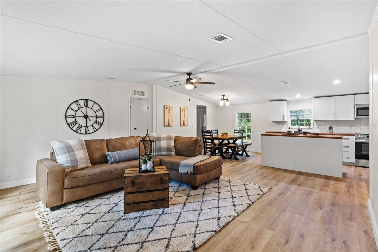 De volta ao mercado sem culpa do vendedor. Desfrute de um país tranquilo que vive neste banheiro de 3 quartos/2 lindamente atualizado com uma sala de bônus móvel, situada em um espaçoso lote de 1 acre. Entre para encontrar um interior brilhante e moderno com acabamentos novos. O piso plano aberto oferece uma área de estar acolhedora, cozinha atualizada e quartos confortáveis. O banheiro principal possui um chuveiro atualizado e uma banheira grande para molhar e relaxar depois de um longo dia. Lá fora, você vai adorar a área de fogueira- perfeita para noites aconchegantes sob as estrelas- e a laje de concreto na frente da propriedade, ideal para um galpão, RV ou futuros projetos ao ar livre. Com muito espaço para se espalhar e sem o HOA, essa propriedade oferece a mistura perfeita de conforto e liberdade. Convenientemente localizado com fácil acesso a Gainesville, Palatka e lagos locais. Esta casa está pronta e esperando por você!