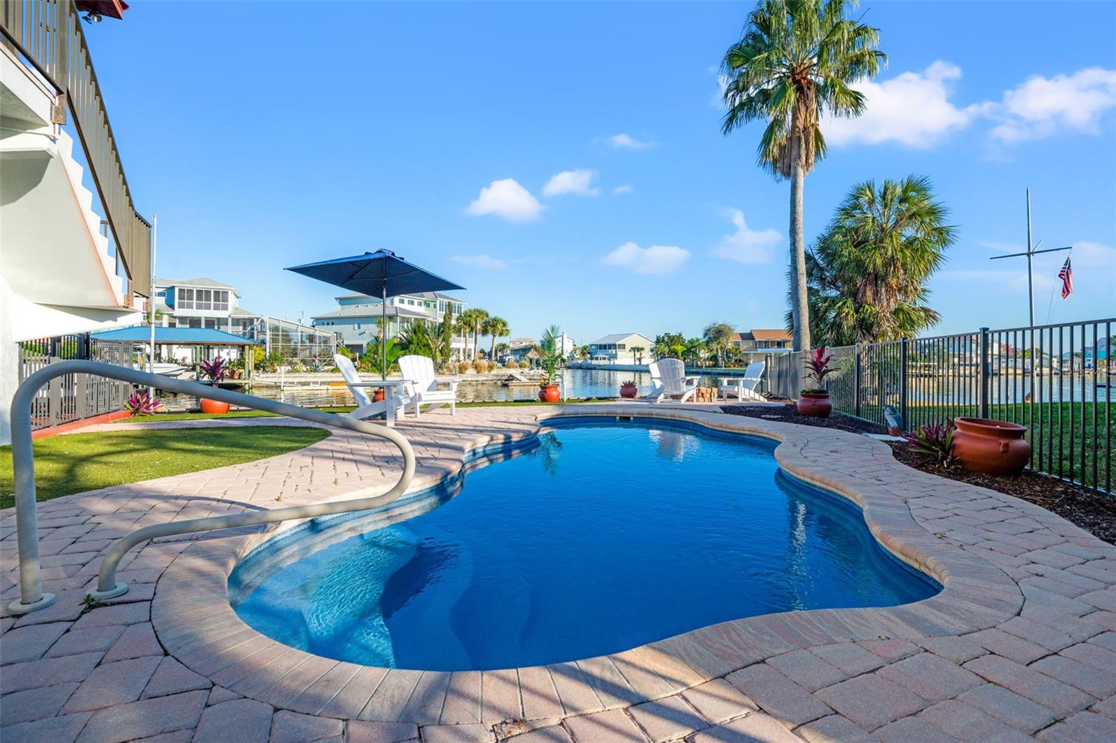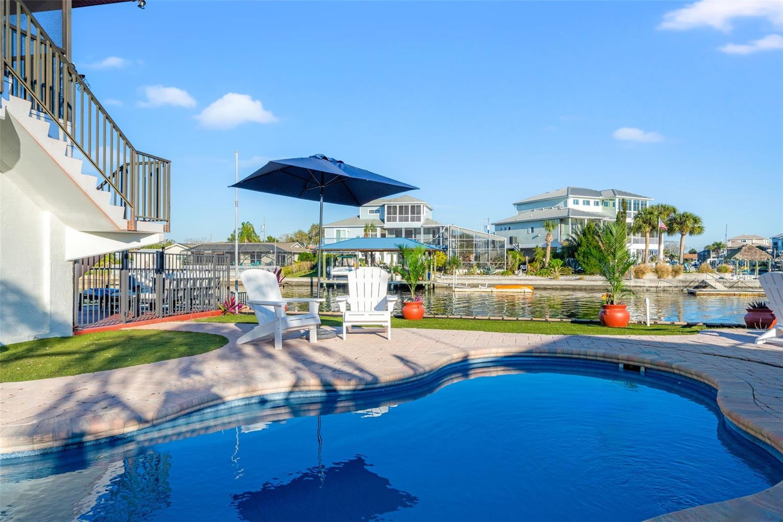 Uma ou mais fotos foram virtualmente encenadas. A luxuosa vida à beira-mar espera por você nesta deslumbrante casa em Hernando Beach! Esta residência com 3 quartos, 2 banheiros completos e 2 lavabos possui uma espaçosa garagem de 15 x 25 e 12 x 29 com espaço para três carros. Aproveite a flexibilidade de entretenimento de uma sala de teatro. No interior, persianas Bahama, pisos de madeira e tetos altos criam uma atmosfera luminosa e arejada. A cozinha dispõe de fogão a gás, eletrodomésticos de aço inoxidável e copa com vista para a água. Um quarto flexível em estilo loft no terceiro andar conecta dois quartos de hóspedes e um banheiro, abrindo para uma varanda com detalhes em ferro forjado para desfrutar do pôr do sol. Saia para uma varanda com escadas que levam a um oásis de piscina cercado por uma paisagem tropical. A piscina de água salgada, fogueira a gás, grama e chuveiro ao ar livre para um retiro perfeito. Uma cerca de alumínio envolve o convés que leva ao paredão de 124 pés e à doca de vinil. Localizada em uma rua sem saída, a poucos minutos do Golfo do México, desfrute de inúmeras atividades ensolaradas, como passeios de barco, caiaque, paddleboarding, mergulho com snorkel e pesca. Seu paraíso à beira-mar o aguarda!