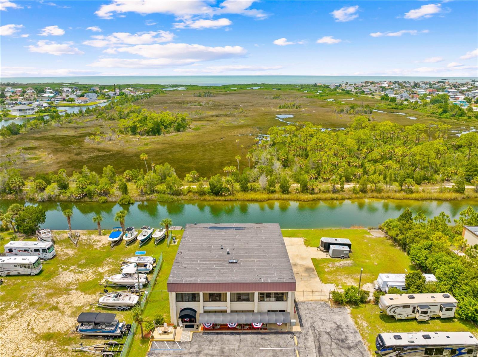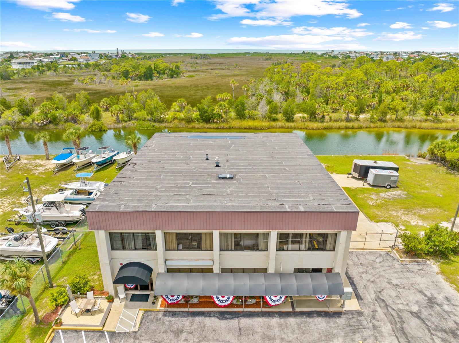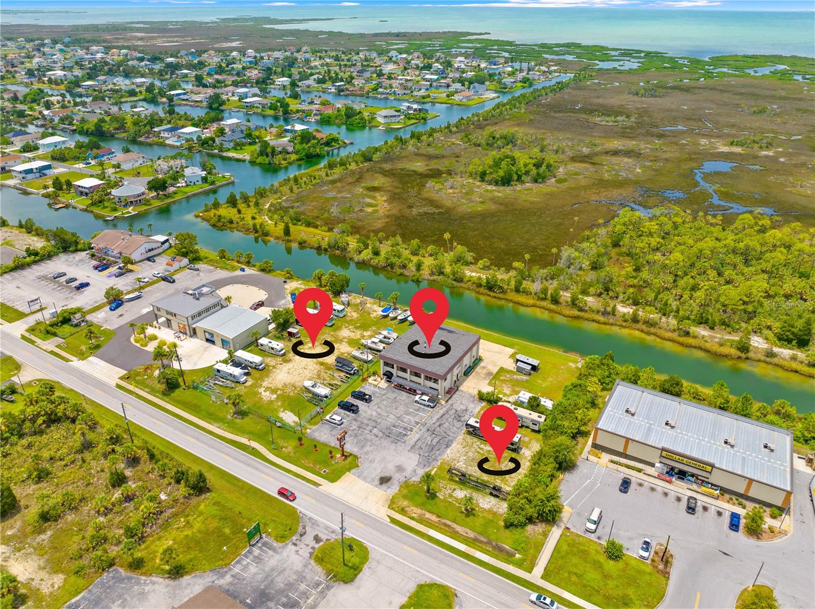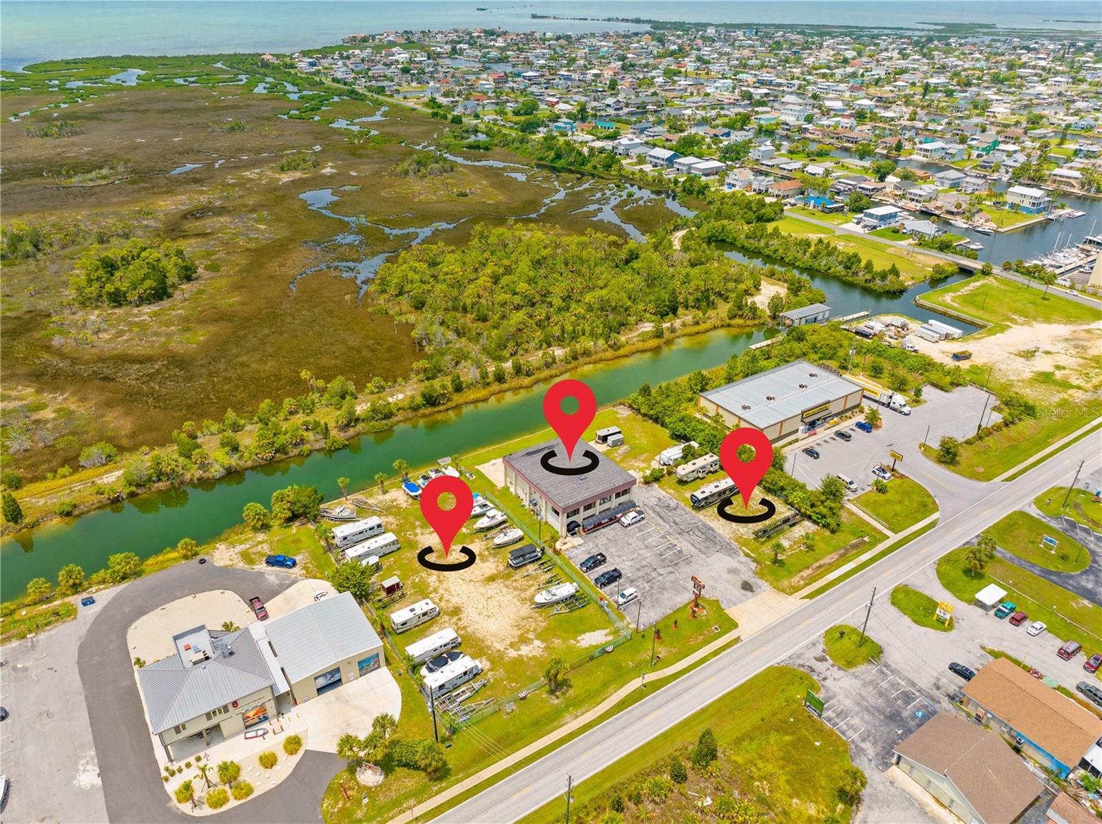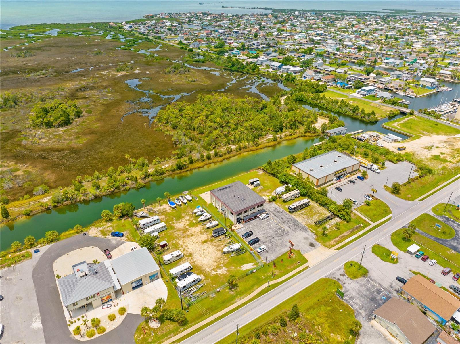 Descubra infinitas possibilidades com esta propriedade comercial privilegiada à beira-mar, estrategicamente dividida em zonas C1/C2! Localizado nos canais de água salgada de Hernando Beach, este edifício de 2 andares abrange 5 lotes totalizando quase 2 hectares e possui rampa própria para barcos! O piso principal possui duas versáteis unidades comerciais com piso vinílico totalmente novo, ideais para escritórios ou lojas. A unidade 1 possui balcão de bar, banheiro com cômoda e pia, e cozinha comercial bem equipada com estação de preparo de refeições, exaustor, fornos a gás e elétricos, pia com 3 compartimentos, piso frio, ampla iluminação e espaço para geladeiras. A segunda unidade comercial no piso principal oferece amplo espaço de escritório com dois banheiros adicionais. Acesse o segundo andar pela entrada própria na extremidade direita da frente do edifício. Este nível foi convertido em uma espaçosa área de estar de 4 quartos, que pode ser facilmente reconfigurada em escritórios separados ou mantida como um espaço confortável para um gerente local. O segundo andar também inclui um banheiro completo com banheira/chuveiro, pia única, cômoda e despensa que abriga os sistemas de ar condicionado e fogão elétrico. Uma porta adicional dá acesso ao primeiro andar, que pode ser trancada para separar as unidades. O nível inferior apresenta uma zona de arrumação seca adjacente à cozinha e uma grande garagem/armazém com dois vãos, cada um com portas de enrolar adequadas para quase todos os camiões. Uma garagem inclui uma arrecadação para equipamentos, um quarto com ar condicionado através da parede e um lavabo adicional. A propriedade tem um total de 5 banheiros com equipamentos e encanamentos mais novos para um potencial 6º banheiro. As comodidades adicionais incluem um tanque de propano de 220 galões e duas unidades de ar condicionado (substituídas em 2013 e 2014). A propriedade oferece amplas oportunidades de expansão, seja através da construção ascendente, da remoção de paredes internas para obter mais espaço de armazenamento ou da adição de extensões ao edifício. Atualmente, os terrenos baldios servem como depósito para trailers e barcos, proporcionando uma renda mensal estável. Desfrute de um paredão de 300 pés e doca para barcos na parte traseira da propriedade, com um elevador de barco que deixará seu barco nos canais de águas profundas de acesso direto que levam ao Golfo do México. Convenientemente localizada perto da marina local, Hernando Beach Yacht Club, e a apenas 1,6 km da rampa pública para barcos de Hernando Beach, esta propriedade está em uma localização privilegiada com excelente tráfego e potencial de crescimento. Com os próximos desenvolvimentos do condado nas proximidades, esta propriedade promete potencial de ganho e valor significativos.