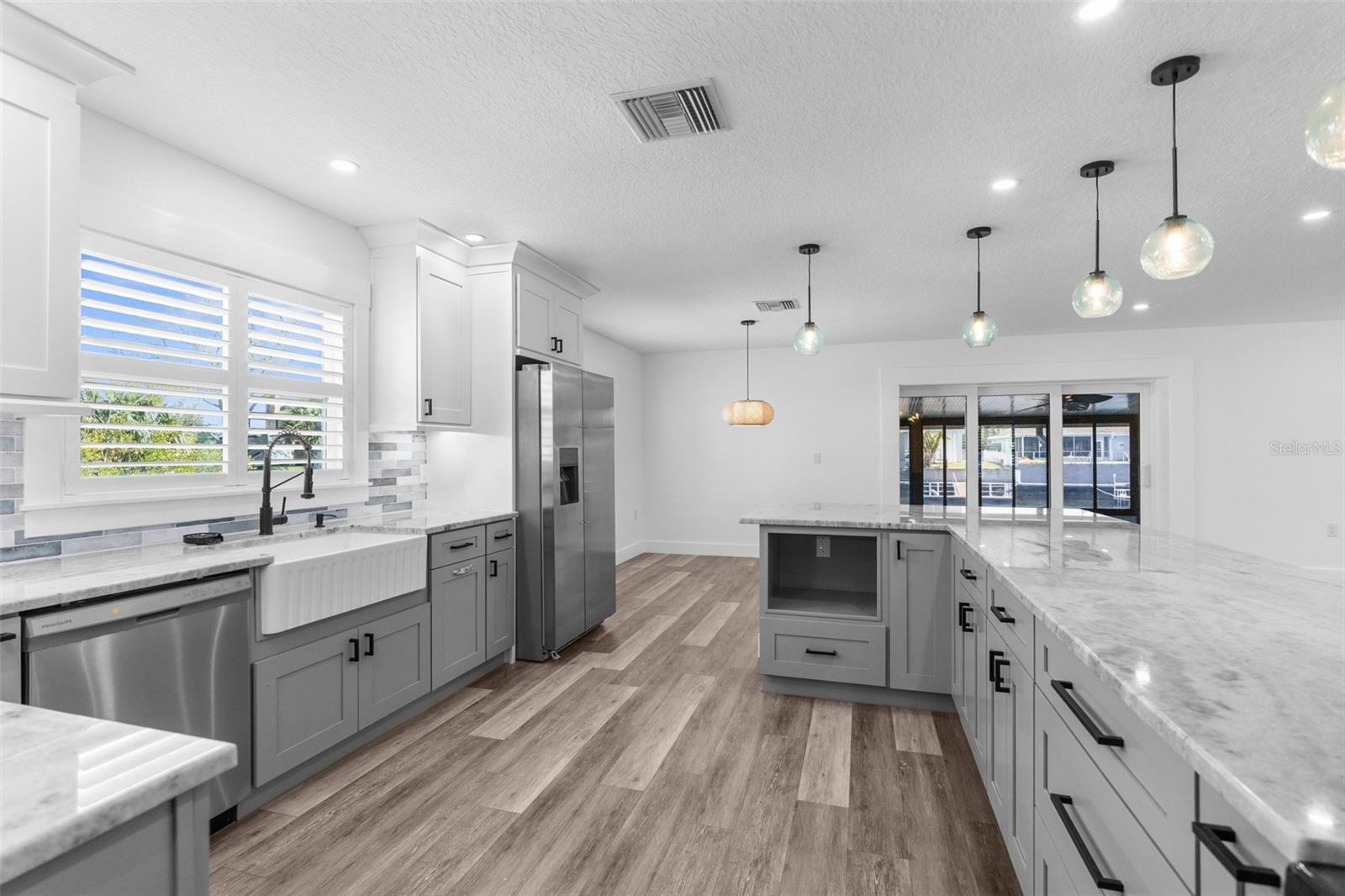 Bem -vindo ao seu retiro dos sonhos! This stunning updated waterfront, 2 bedroom, 2 bathroom, home offers the perfect blend of luxury and tranquility, nestled in the highly sought after community of Hernando Beach. As you step inside, you are welcomed by an inviting open-concept living space featuring a 'New Construction' feel and appeal with an eye catching triple sliding glass door that frames panoramic views of the shimmering canal and a ONE OF A KIND, air conditioned den/game room. A cozinha moderna é uma delícia de chef, completa com novos aparelhos brancos da Samsung, bancadas elegantes de quartzo, armários de madeira suaves. Farmhouse Sink e uma ampla ilha com bar de café da manhã - perfeita para entreter familiares e amigos. Flowing seamlessly into the dining and living areas, the space is accentuated by elegant finishes, coastal LVP flooring, and an abundance of natural light. Enjoy cozy evenings on your very own painted beach (on your den floor) or step outside to your private deck, ideal for casting a line and catching dinner or just enjoying the gentle breezes. O enorme paredão concreto e expandido leva à beira da água, onde você pode desfrutar da doca dupla e armazenar todos os seus brinquedos de água. Retreat to the cozy primary suite and guest bedroom complete with two luxurious updated bathrooms, both featuring new vanities, stunning showers, new toilets, new mirrors and new fixtures. Towards the back of the home is a dedicated entertainment room, encompassed with new windows, new AC, foam insulated roof, custom beach painted epoxy flooring and it also has the best views in the house. With updated plumbing, electrical, and HVAC systems, this home is not only on the cusp of being called new construction, but also completely move-in ready. Localizado a poucos minutos das comodidades locais, restaurantes e entretenimento, esta jóia à beira -mar é o lugar perfeito para criar memórias duradouras. Não perca a oportunidade de fazer este próprio lar impressionante - faça uma exibição hoje! Telhado 2015.