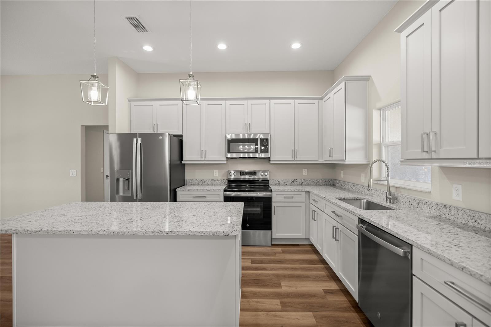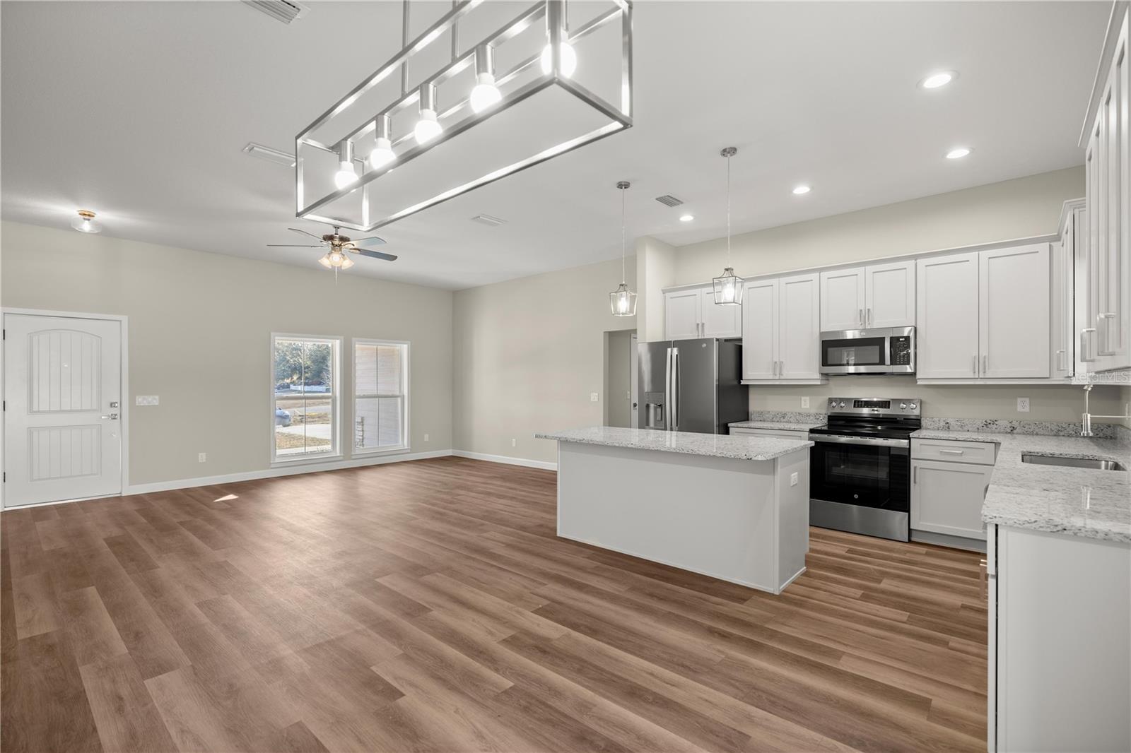 Esta nova casa de construção impressionante, acionada por um hectare de terra, oferece uma mistura perfeita de luxo e funcionalidade. A planta aberta convida a luz natural, com uma espaçosa cozinha e uma barra de café da manhã que é ideal para refeições ou divertidos casuais. A cozinha é o sonho de um chef, com bancadas de granito elegante, armários de madeira maciça com portas e gavetas de perto, uma grande despensa e utensílios de aço inoxidável modernos, todos complementados por acabamentos pretos foscos elegantes. O piso de tábua de vinil de luxo flui perfeitamente por toda a casa, combinando durabilidade com estilo. Cada quarto oferece armários generosos, proporcionando amplo armazenamento. A suíte master possui um banheiro parecido com um spa com um chuveiro, completo com vidro sem moldura para um toque moderno. A eficiência energética é o topo de espírito, com isolamento de espuma com spray, garantindo conforto ideal o ano todo. Esta casa é o epítome da vida moderna, misturando recursos sofisticados com um cenário sereno e espaçoso. Esta casa está localizada centralmente no Condado de Citrus, mantendo você perto de tudo, incluindo o Golfo do México e o Crystal River e todas as compras que você deseja nos novos compras no Black Diamond Shopping Center, que apresenta um lobby e alvo de hobby! Ligue -me hoje para vir ver esta casa elegante pessoalmente!