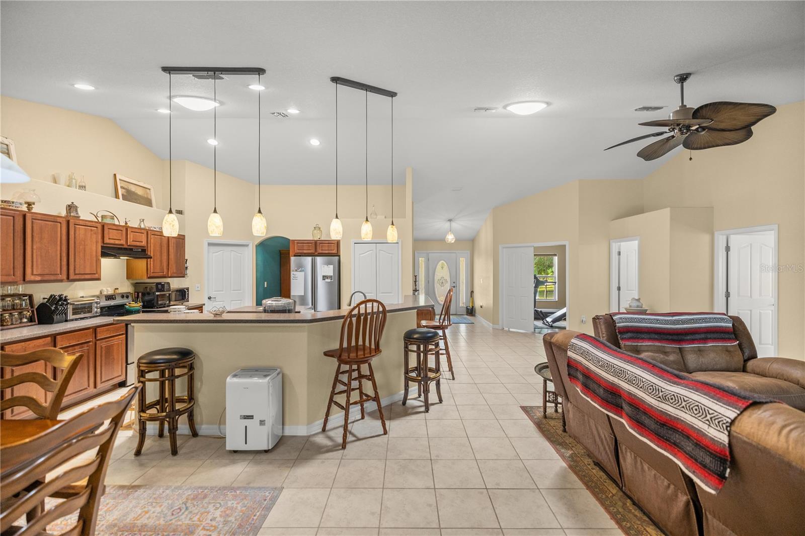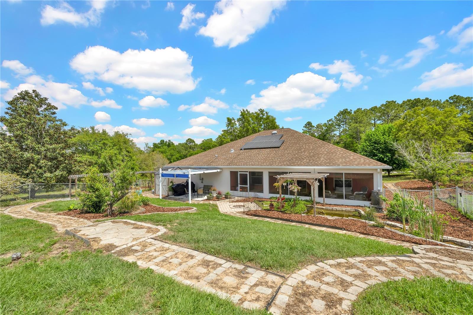 Localização, localização em lindas colinas cítricas! Paisagístico! Koi Pond! Dê uma olhada neste adorável 4/3, mais uma casa de piso aberto Den/Office. Isso é totalmente cercado com mais de 2.600 pés quadrados, fica em um hectare de terra e apresenta paisagismo de apelação de alto nível. Uma vez lá dentro, você notará a grande planta aberta com tetos abobadados e piso de azulejos. Eat-In Kitchen, utensílios de aço inoxidável grande despensa, juntamente com muitos armários e bancadas de Corian. Outras características dignas de nota incluem espaçosos quartos primários, armários dele e dela, Walk in Shower, Soaker Tub e Double Vanity Sinks. Grande, rastreado em Lanai, com vista para o Koi-Pond e a cachoeira, além de uma área externa adicional para sua grelha ou adicione uma banheira de hidromassagem! Dentro de roupa, os galpões ficam e a casa é movida a energia solar! Não deixe essa oportunidade escapar, marque sua consulta hoje!