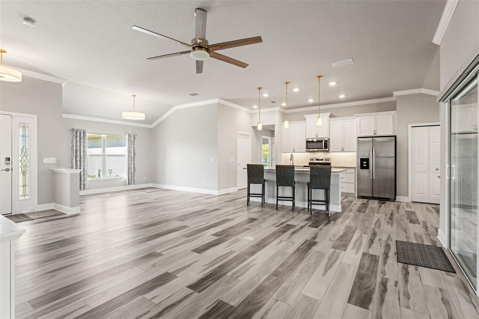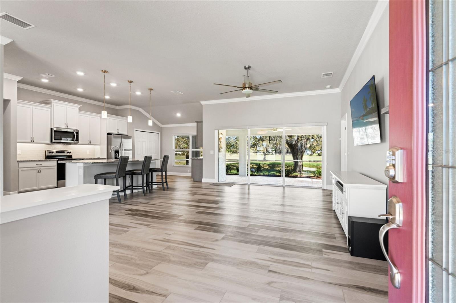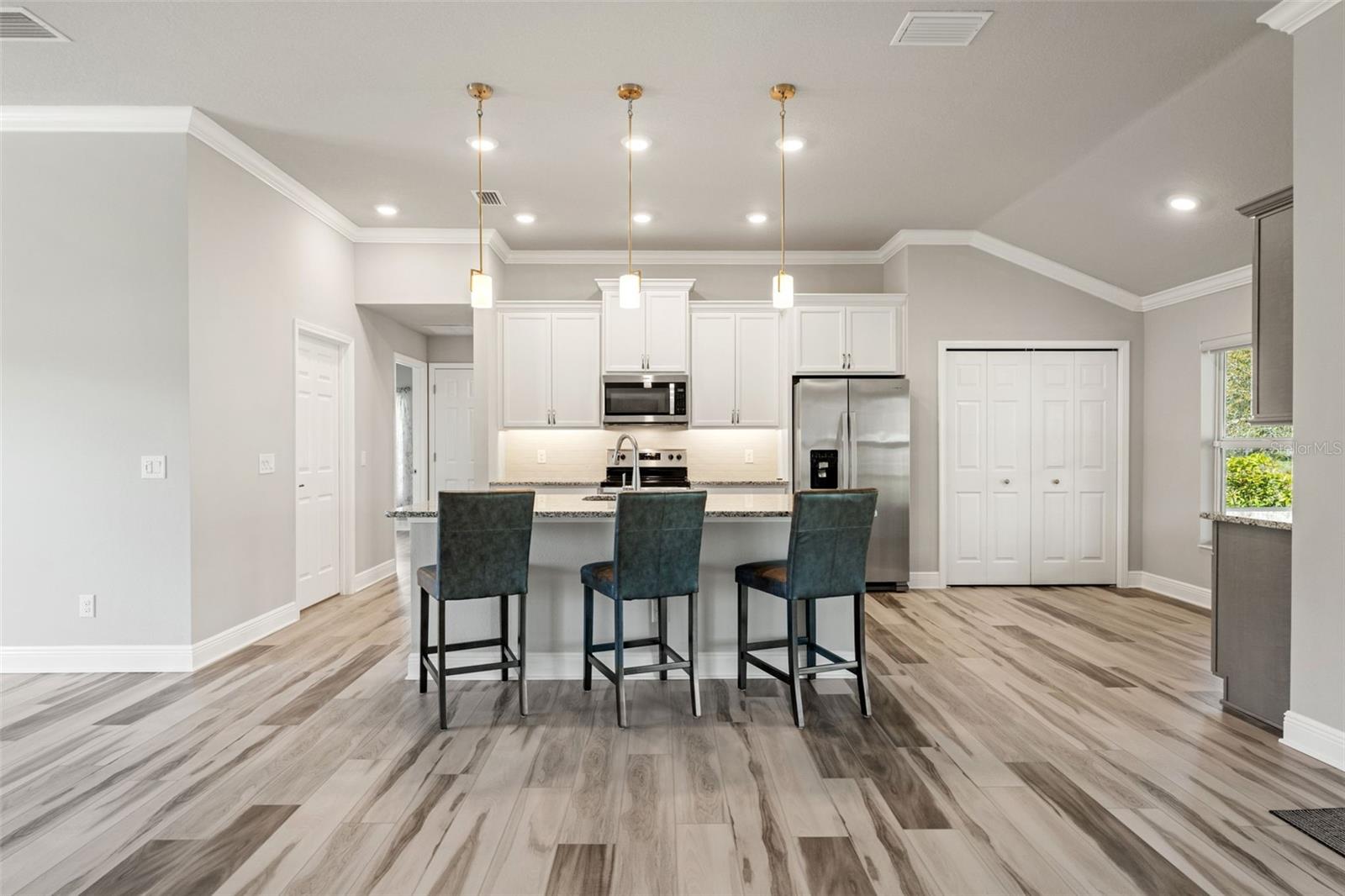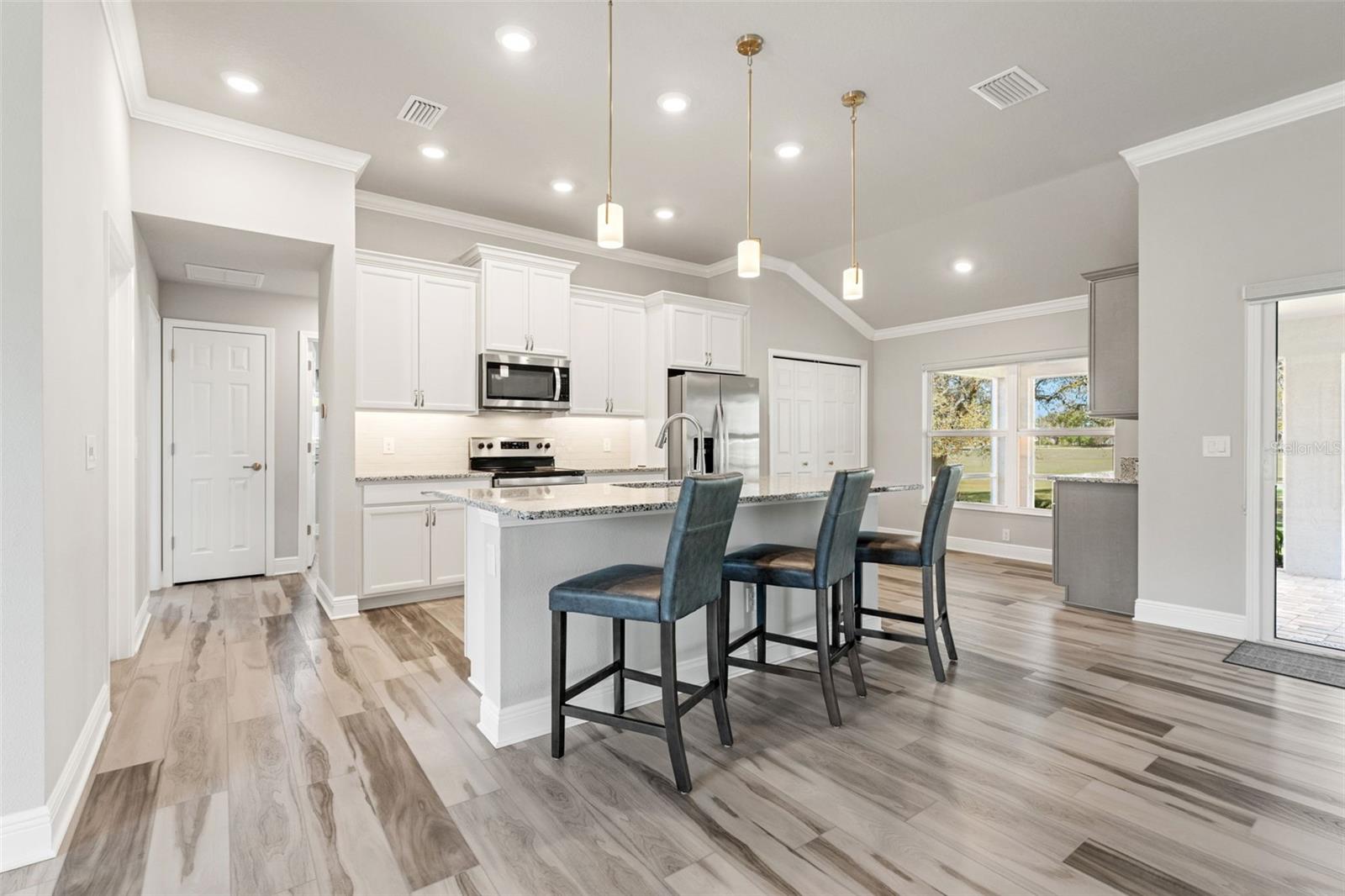 Bem -vindo a este modelo Allison lindamente atualizado, oferecendo 1.796 pés quadrados de espaço de vida cuidadosamente projetado com uma cobiçada associação social Citrus Hills Golf & Country Club! Desfrute de acesso exclusivo a comodidades de primeira linha, incluindo campos de golfe do campeonato, centros de fitness de última geração, quadras de tênis, piscinas em estilo resort, vários restaurantes e um calendário completo de eventos sociais. Esta casa pronta para uso está totalmente equipada com todos os aparelhos, um sistema de alarme Simplisafe, três TVs, um console de TV, uma barra de som e subwoofer, barstools e uma cadeira de sofá-cama-tudo incluído na venda! No interior, o design de conceito aberto combina estilo e funcionalidade. A cozinha possui bancadas em granito, utensílios de aço inoxidável, armários adicionados com puxões e iluminação sub-cabinete, criando um espaço ideal para cozinhar e divertir. Os tratamentos de janelas personalizados e a iluminação atualizada adicionam um toque elegante, enquanto a Sony Smart TV de 65 "com uma barra de som e subwoofer aprimora sua experiência de entretenimento. A suíte primária é um retiro privado com piso de tábua de vinil de luxo, dois armários personalizados e um banho de banho com bancadas em granito, espelhos atualizados, utensílios, um chuveiro e tratamentos de vitrais personalizados. Dois quartos adicionais oferecem versatilidade, um com um amosso de gêmeos e o outro com prateleiras personalizadas de armário e uma TV inteligente da Samsung. O banho de hóspedes possui acessórios atualizados, barras de toalhas e uma bancada em granito, elevando o design original. A lavanderia está bem equipada com uma lavadora e secadora de perfil GE, armários de armazenamento, pia de utilidade e armário de armazenamento. Saia para o lanai exibido com vista para o campo de golfe, oferecendo um cenário pacífico para relaxar. A garagem de dois carros inclui escadas no sótão puxadas, armazenamento e entrada do teclado. Para completar tudo, não há sinal de carpete - toda a prancha de vinil de luxo por toda parte! Com atualizações premium, comodidades de estilo resort e uma localização privilegiada, esta casa é uma descoberta rara! Agende sua exibição hoje.