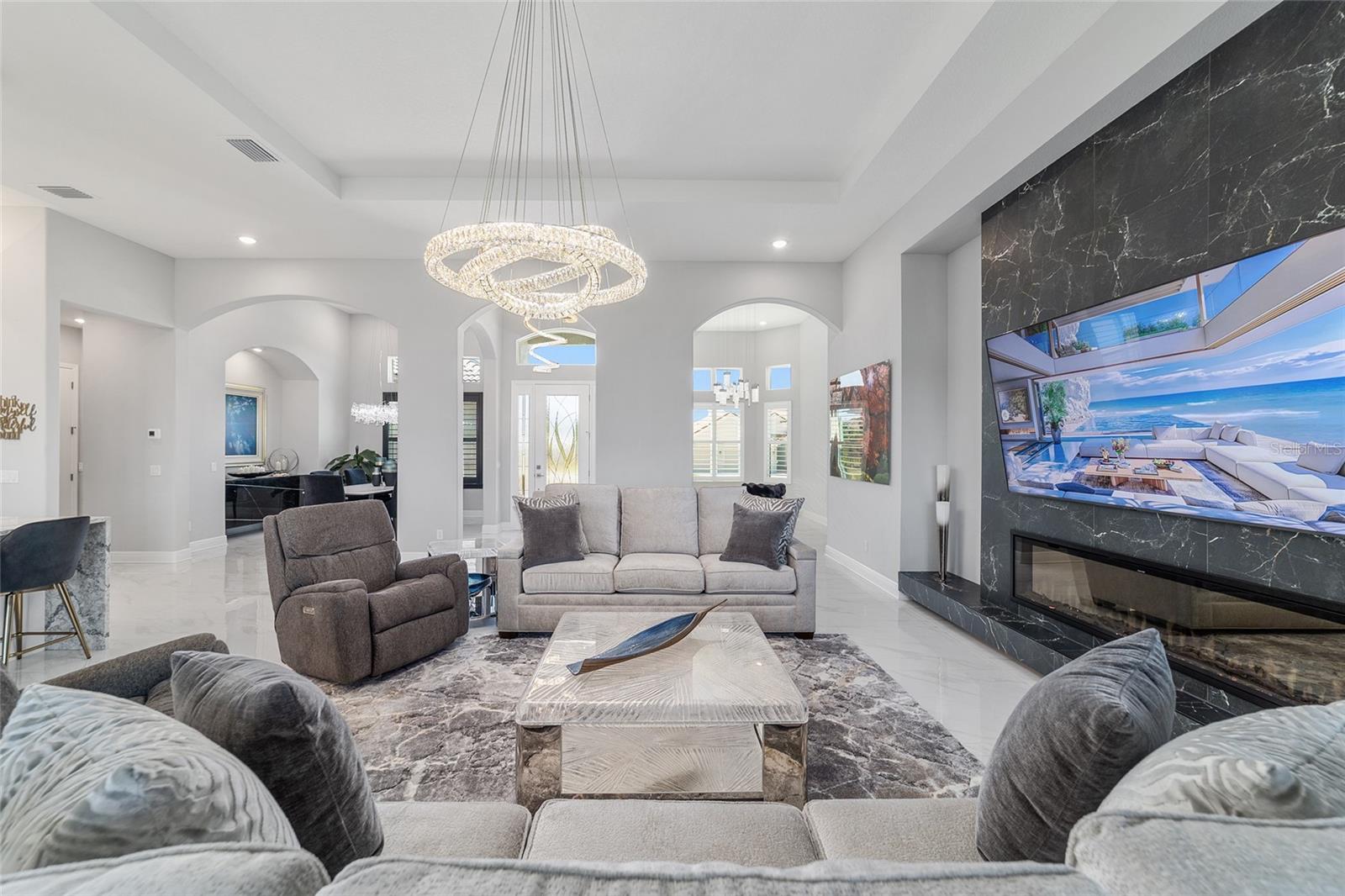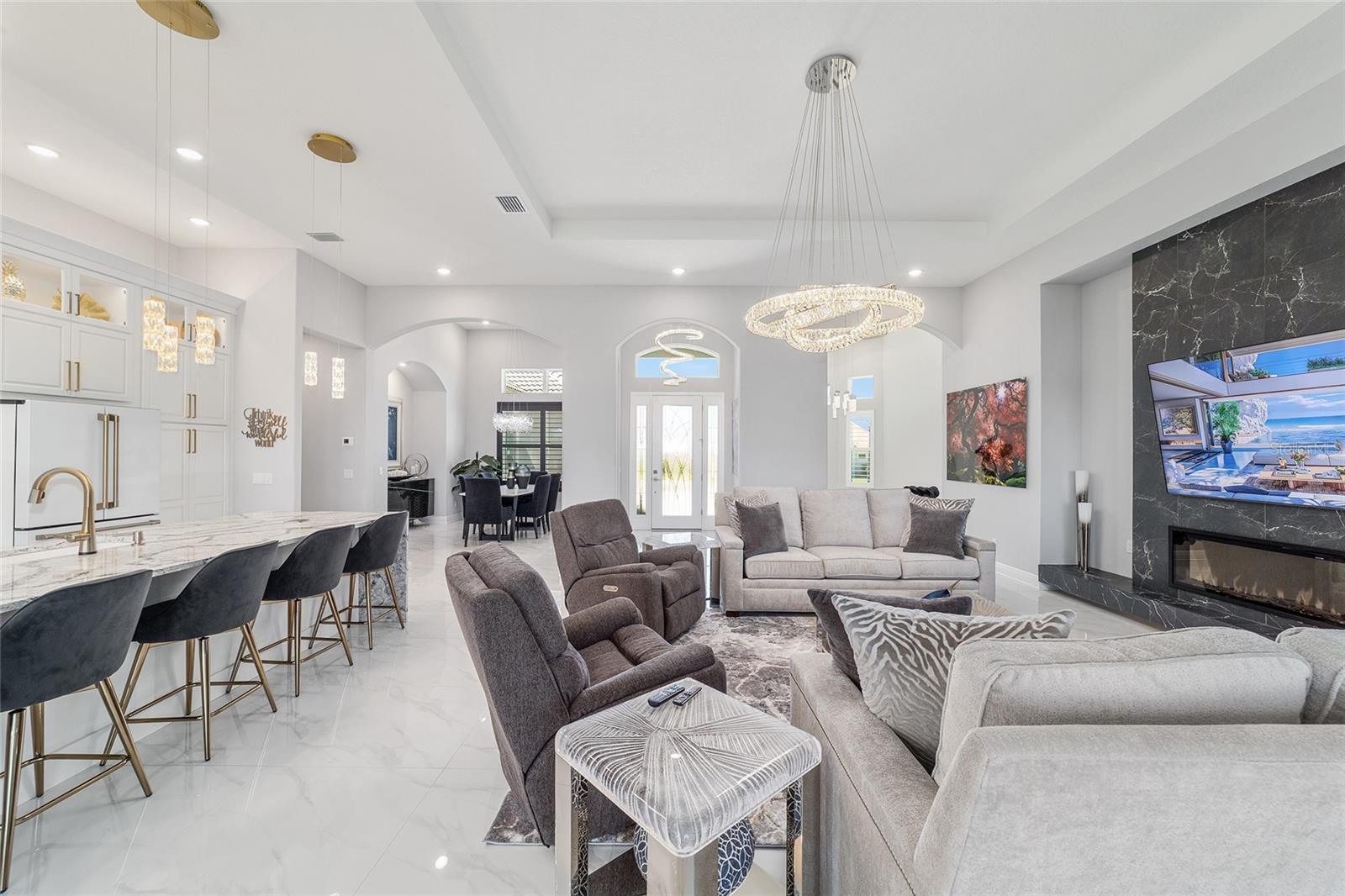 Campo de golfe cênico que vive no exclusivo de Terra Vista Roberts Ridge Hernando. Observe que esta casa tem quatro meses. Por que esperar 18 meses para construir? Você está procurando uma casa excepcional, não deixe de ver esta bela casa de três quartos e três banheiros no 2280 N. Peakview Loop em Hernando. Este modelo expandido da Tiffany oferece 2.515 pés quadrados de espaço confortável com vistas deslumbrantes de campo de golfe. Entre para descobrir um piso plano aberto com tetos altos e acabamentos modernos por toda parte. As principais áreas de estar mostram pisos elegantes de azulejos, enquanto os quartos são confortavelmente acarpetados. A sala da família inclui uma lareira extra grande feita sob medida para curar um sentimento luxuoso distinto na sala de estar da casa. Ao visualizar as fotos, observe a iluminação personalizada em toda a casa, essa é definitivamente uma casa única. A sensação de luxo e conforto é abundante. A cozinha é o sonho de um chef com bancadas de quartzo com bordas em cascata e completamente atualizada com a mais nova aparência de botões de latão, os aparelhos do fogão a gás de seis queimadores e a máquina de lavar louça embutidos e o microondas são todos os showstoppers. Uma sala de jantar formal oferece um espaço para entreter hóspedes ou reuniões de família. A suíte principal do quarto oferece luxo e privacidade com pias duplas na banheira, um chuveiro de grandes dimensões e um grande closet. A garagem expandida possui uma abertura de 8 pés e profundidade de 25 pés, proporcionando amplo espaço para veículos e armazenamento. A vida ao ar livre é uma delícia com uma varanda traseira exibida que inclui uma cozinha ao ar livre, ideal para o lindo clima da Flórida. A propriedade é aprimorada pelo paisagismo exuberante e pelo lindo campo de golfe do quintal e dirige para a comunidade de Roberts Ridge nos portões Terra Vista. Recursos adicionais incluem um telhado, uma lavanderia conveniente e inúmeras atualizações modernas por toda parte. Esta casa pronta para uso está convenientemente perto de compras, restaurantes e outras comodidades. Não perca esta oportunidade de possuir uma casa espaçosa e bem equipada em uma desejável Hernando de Terra Vista!