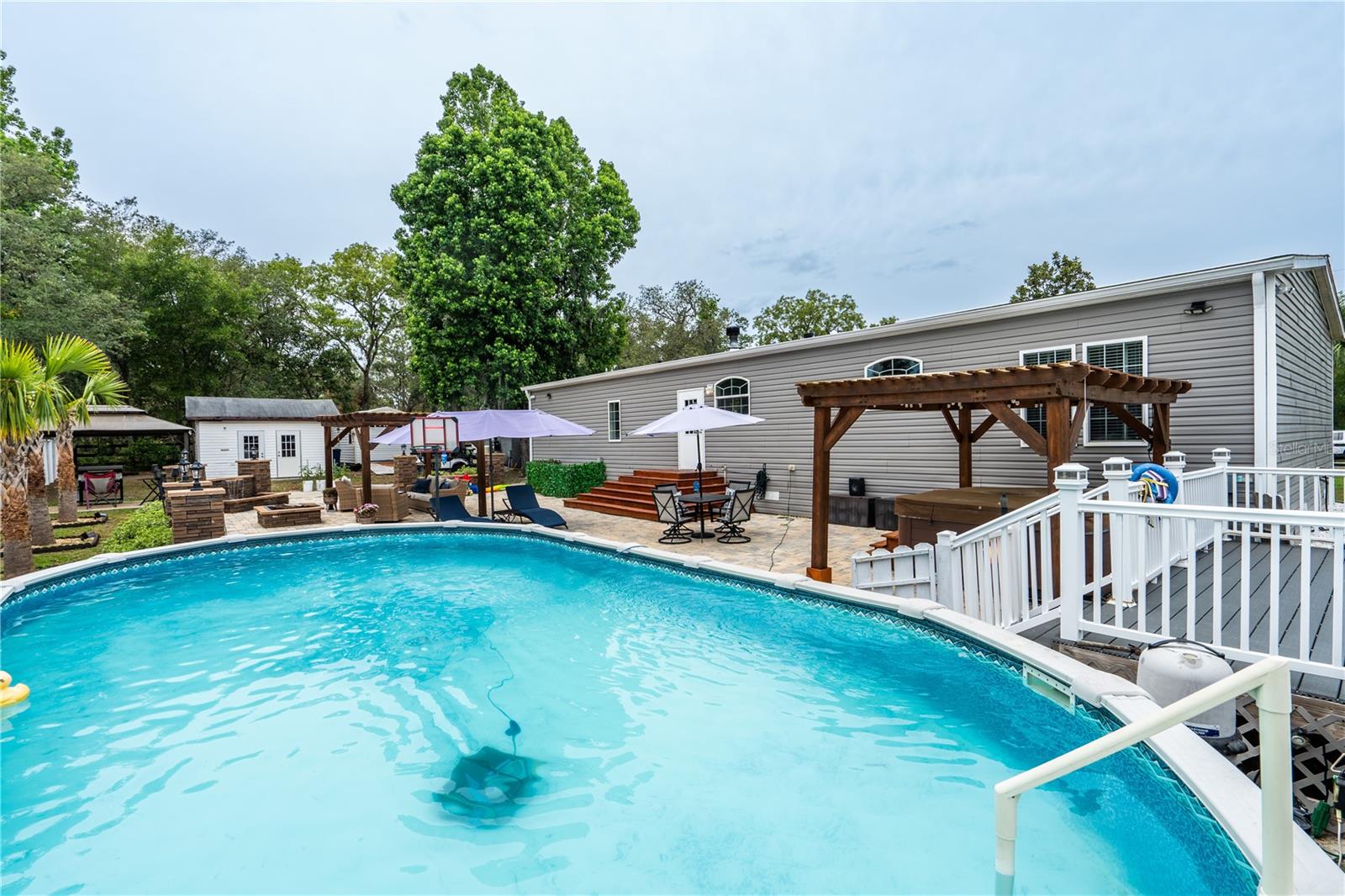 A impressionante casa de 2.352 pés quadrados de 3 quartos e 2 banheiros fabricados em 0,62 acres sem HOA-o seu sonho oásis aguarda! Além disso ... há 1,25 acres adicionais disponíveis adjacentes a esta propriedade, para um total potencial de 1,87 acres !! Não é muito grande, mas também não muito pequeno! Bem -vindo ao seu retiro perfeito localizado a meia milha da entrada das trilhas do estado de Withlacoochee! Esta requintada casa manufaturada de 3 quartos e 2 banheiros possui todas as conveniências modernas e recursos luxuosos que você poderia desejar. Aninhado em um espaçoso lote de 0,62 acres, esta casa oferece um hall de entrada convidativo que o leva a uma planta baixa e brilhante com um impressionante layout espaçoso! Principais recursos: -Espaços de estar cheios de luz: Aproveite a grande sala de estar com uma inserção para uma TV de tela grande, iluminação enlatada, uma lareira a lenha com detalhes de alvenaria deslumbrante e prateleiras laterais para sua decoração. - Cozinha gourmet: cozinhe e entregue em grande estilo com uma ilha e bancos espaçosos, armários de madeira abundantes, uma linha chique moderna com um forno separado e uma área de serviço de mordomo. - A sala de estar formal é o espaço adicional perfeito para entretenimento, seu próprio refúgio, sala de jogos ou apenas uma área adicional para passar um tempo com amigos e familiares! - Sala de jantar elegante: com um teto bandeja, perfeito para hospedar reuniões. - Retiro de suíte master: relaxe no quarto principal com tapete de pelúcia, levando a um banheiro privativo luxuoso e atualizado que deixará qualquer pessoa com ciúmes! Equipados com as pias de banheiro dele e dela, muito espaço de balcão e armários, uma banheira de jardim, um chuveiro grande separado com muito espaço para dois, um assento duplo e amplo espaço para conforto! -Espaçosos quartos secundários: dois quartos de tamanho generoso com grandes armários e um banheiro secundário bem equipado com uma banheira de grandes dimensões. Um dos quartos secundários possui um sistema de armário organizado personalizado, perfeito para manter suas coisas organizadas! Paraíso ao ar livre: Saia para descobrir seu oásis externo privado! O quintal é lindamente paisagístico e recursos: - Pátio pálido de grandes dimensões: perfeito para entretenimento, com duas cachoeiras impressionantes de tijolos e paredes de paisagem de sotaque. - Gazebo Retreats: Dois Gazebos, um com uma banheira de hidromassagem sofisticada e outra com uma área de estar espaçosa ideal para noites estreladas. - Pedra de fogo - Refrescante piscina alongada acima do solo: mergulhe na diversão de verão! - Área de grelhar coberto: perfeito para churrascos com amigos e familiares. - Múltiplas opções de armazenamento: inclui um galpão de armazenamento com eletricidade e um celeiro para todos os seus projetos. - Deck de madeira composta grande e elevada, fora do deck pavimentado ... perfeito para relaxar, entretenimento, relaxamento e/ou comer! Recursos extras: - Upgrade de parede externa de 6 polegadas, torna esta casa mais sólida e insultada. - Drywall interior em todo o interior do lar. - linda porta de vidro transparente na frente - passarelas em arco em toda a casa adicionam personagem. - O piso de tábua de vinil e o tapete criam um interior aconchegante e elegante por toda parte. - Lavanderia com armários e pia por conveniência. - Janelas de grau de furacão para isolamento e segurança sonora. - Propriedade fechada e cercada com uma entrada de automóveis de asfalto que leva a passarelas de pavimentadora de tijolos. -Gutters e calhas em casa inteira. Esta casa combina elegância moderna com conforto, tornando -a um retiro familiar ideal ou um espaço divertido. Não perca esta incrível oportunidade de possuir sua casa de sonho com todos os sinos e assobios!