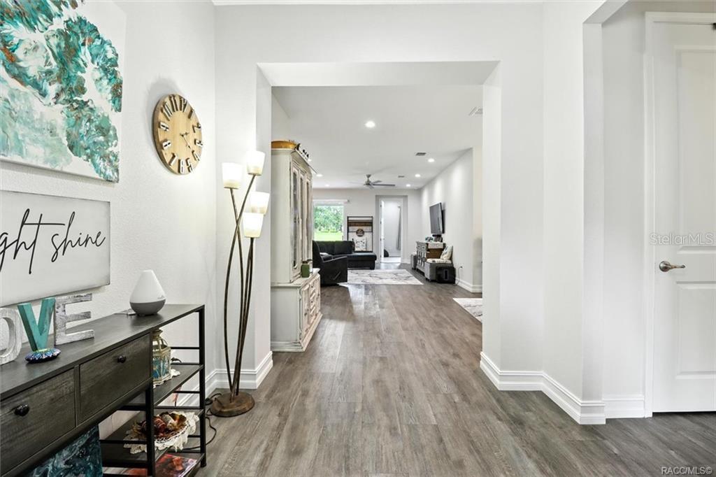Entre nesta casa deslumbrante que oferece espaço, luxo, preço acessível e artesanato de qualidade que você procura na desejável comunidade de Citrus Hills. Com quase US$ 25.000 em upgrades para clientes, uma planta dividida cuidadosamente projetada com quatro quartos posicionados para privacidade, uma garagem para dois carros com oficina ou espaço de armazenamento, além de espaçosas despensas e lavanderias, esta casa pronta para morar oferece todos os itens essenciais. Construído em 2024, as características arquitetônicas de estilo artesanal melhoram o apelo do meio-fio com telhados de duas águas baixos, beirais pendentes com vigas decorativas expostas, colunas cônicas pesadas e acabamentos detalhados das janelas exibidos na espaçosa varanda frontal coberta. A casa possui tetos volumosos, portas de 2,5 metros, luxuoso piso de pranchas de vinil nas áreas principais, azulejos nos banheiros e na lavanderia e carpete macio nos quartos. A cozinha gourmet apresenta uma enorme ilha de quartzo com pia de pia única, torneira de cozinha sem toque, eliminação de ar, backsplash elegante de azulejos, armários de madeira com fechamento suave e iluminação sob o armário, despensa e eletrodomésticos de aço inoxidável. O design de conceito aberto conecta perfeitamente a cozinha, a área de jantar e a grande sala, com portas de correr que levam a uma varanda coberta - perfeita para ambientes internos e externos. A espaçosa suíte do proprietário oferece pias duplas com bancadas de quartzo, um closet Closets by Design, um banheiro tipo spa com pias duplas, um lavatório privativo e um box amplo com belos azulejos e box de vidro. Na frente da casa, você encontrará um quarto com banheiro completo e armário de roupa de cama. A ala esquerda possui dois quartos com banheiro Jack-and-Jill. O segundo quarto na frente da casa tem seu próprio banheiro completo, enquanto o terceiro e o quarto quartos compartilham um banheiro Jack-and-Jill, frequentemente usado para hóspedes ou como suíte da sogra. A lavanderia é escondida para maior privacidade, com espaço suficiente para uma geladeira grande e inclui um armário de roupa de cama embutido para maior comodidade. Situada em um pitoresco terreno de 1,14 acres cercado por árvores, esta casa oferece privacidade e charme. O paisagismo inclui um sistema de irrigação e uma abundância de árvores frutíferas, videiras, bananeiras, arbustos de mirtilo, framboesa e amora também!! Atualizações adicionais incluem um sistema de água Culligan, persianas celulares blackout Levolor Premium, ventiladores de teto operados remotamente em todos os quartos, abridores de portas de garagem e muito mais. Aproveite o acesso a três Citrus Hills Golf & Country Clubs — todos abertos ao público — além de instalações médicas, restaurantes e lojas próximas. Agende sua exibição hoje antes que esta acabe! A lista de recursos e a planta baixa estão anexadas.