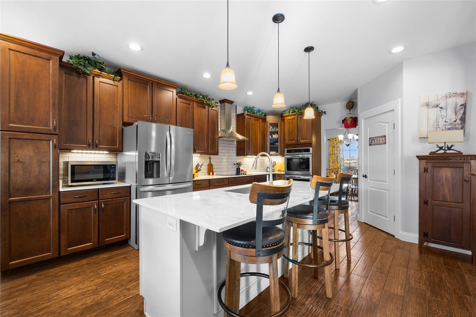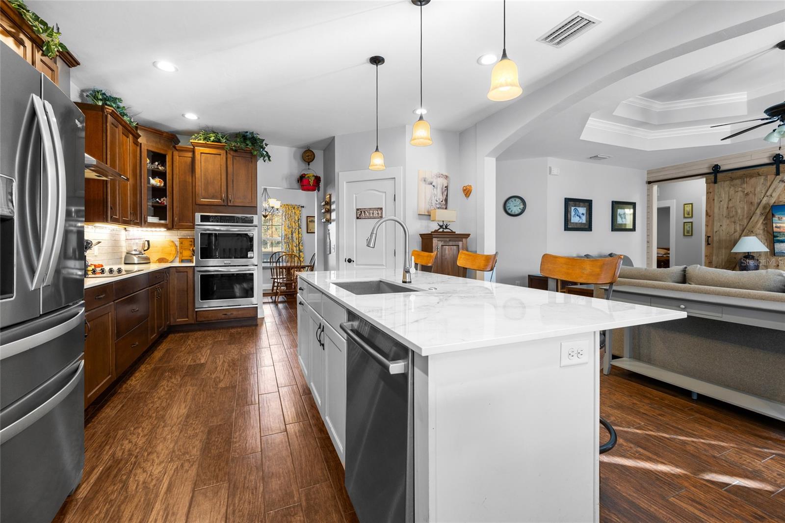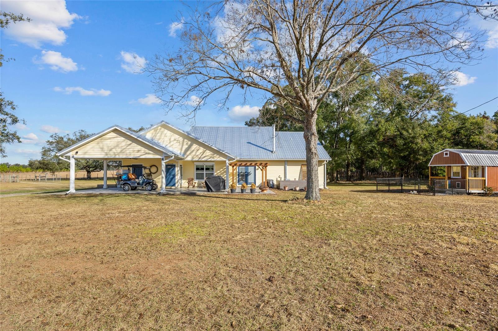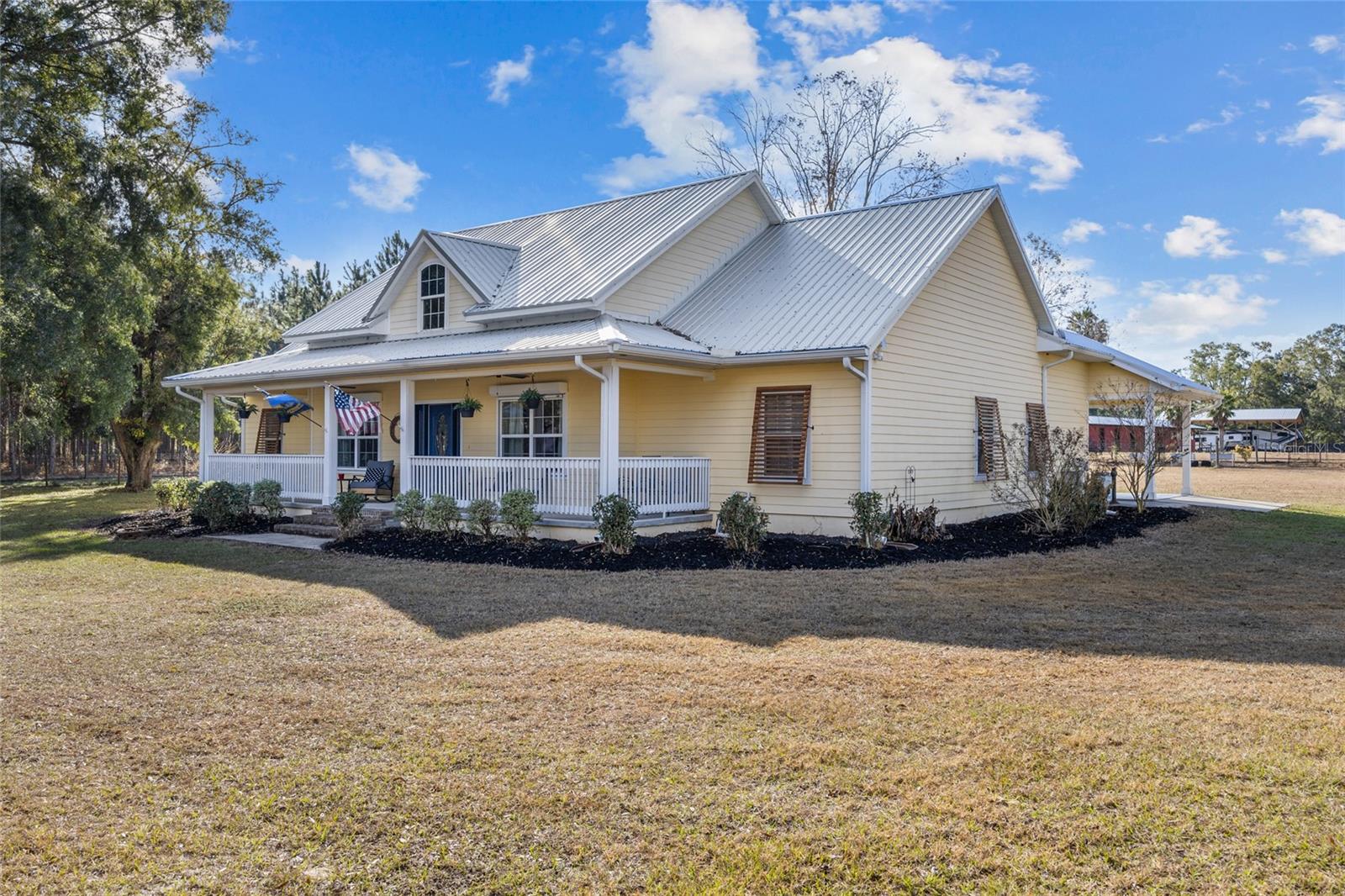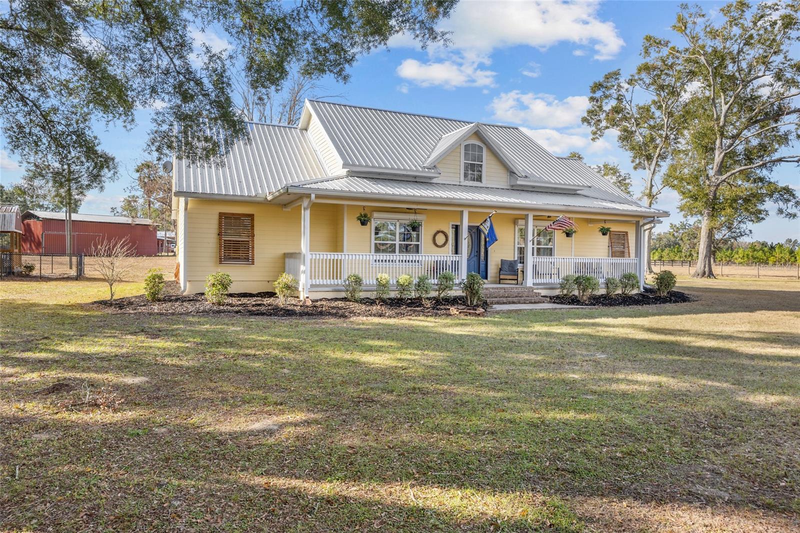 Descubra a combinação perfeita de charme campestre e conveniência moderna com esta deslumbrante casa personalizada de 4 quartos e 2,5 banheiros em 10 acres privados no condado de Gilchrist, com um endereço muito procurado em High Springs. Escondida em uma estrada pavimentada, a propriedade é acessada por uma estrada privada com portão elétrico, oferecendo paz e privacidade em um ambiente sereno e natural. Esta propriedade é um sonho para os entusiastas de cavalos, ostentando um celeiro de 20x180 com seis baias, cada uma equipada com água corrente e eletricidade, além de um conveniente armazenamento de feno no final. Serviço de 200 A para o celeiro. Um celeiro fechado em metal 20x48 fornece armazenamento adicional, enquanto um celeiro de 40x60 oferece espaço para equipamentos agrícolas, trailers, barcos e muito mais. A propriedade está totalmente vedada e vedada, preparando-a para os seus animais. Um pequeno galpão com eletricidade acrescenta ainda mais versatilidade. A cozinha foi projetada para inspiração culinária, com novas bancadas, um backsplash estiloso, eletrodomésticos atualizados, forno duplo, uma ilha espaçosa ideal para entretenimento, armários amplos e despensa generosa. Uma área de refeições aconchegante e uma sala de jantar formal oferecem opções flexíveis de refeições. A convidativa sala de estar apresenta um fogão a lenha colocado em uma bela lareira de tijolos, encantadoras paredes shiplap, uma porta deslizante de celeiro e um impressionante teto duplo que acrescenta interesse arquitetônico. Retire-se para a suíte master, que oferece closet e banheiro privativo luxuoso completo com pia dupla, box amplo e vários chuveiros para uma experiência de spa. Desfrute do pôr do sol de tirar o fôlego e do entretenimento ao ar livre sob a garagem coberta e a pérgula. O ambiente tranquilo e isolado da propriedade proporciona uma fuga perfeita da agitação. Esta casa foi cuidadosamente atualizada com: persianas anti-furacão e um telhado de metal durável, janelas suspensas de madeira para maior charme, plug-ins de gerador e conexões para trailers para maior conveniência, sistema HVAC mais recente e um sistema de amaciante de água. Convenientemente localizada a apenas 10 minutos do centro de High Springs, esta casa oferece fácil acesso a nascentes, rios e aventuras ao ar livre, permanecendo a apenas 30 minutos do HCA Hospital, Shands, da Universidade da Flórida e do Santa Fe College. A Costa do Golfo fica a menos de uma hora de distância, tornando-a um retiro ideal. Com sua combinação de belo artesanato, comodidades adequadas para cavalos e ambiente tranquilo, esta propriedade oferece tudo que você precisa para um estilo de vida rural privado com conveniências modernas. Agende sua exibição hoje mesmo!