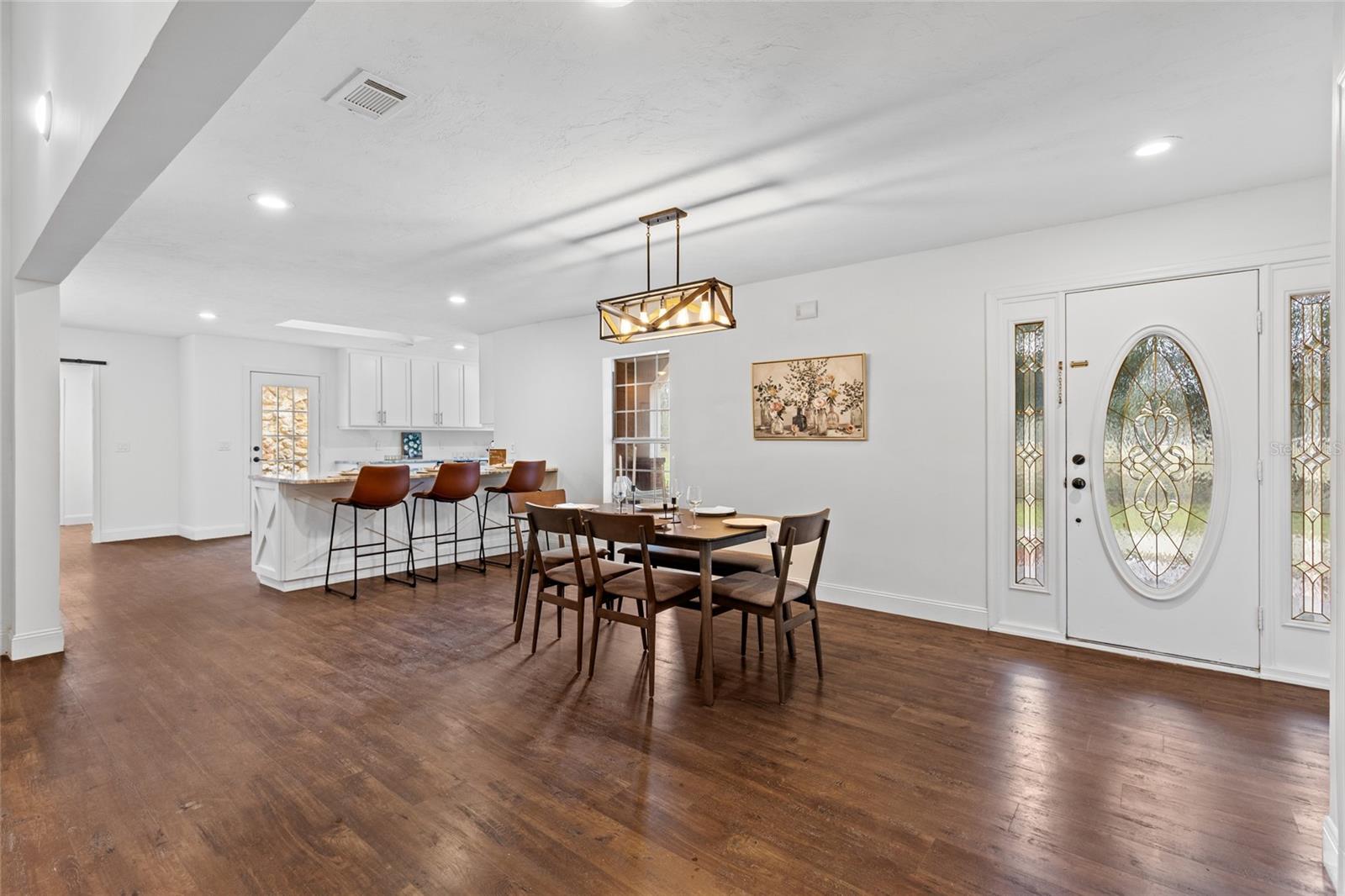 Situado em 6,38 acres totalmente cercados e fechados em High Springs, Flórida, esta encantadora casa de campo renovada de 3 quartos e 2 banheiros oferece uma fuga serena a poucos minutos do centro e da I-75. Enquanto você dirige pela calçada sinuosa, a fachada de tijolos e convidam a varanda da frente coberta o atrai, prometendo noites tranquilas assistindo o pôr do sol. No interior, a área de estar e jantar de conceito aberto recebe você com sua vibração moderna de meados do século, desde as vigas de madeira quente acima e o brilho suave de uma lareira imponente. A cozinha, atualizada cuidadosamente com armários agitados e bancadas elegantes de quartzo, flui perfeitamente para um bar peninsular, perfeito para refeições casuais ou tomar café enquanto desfruta da vista do espaço para jantar. A planta baixa da casa oferece privacidade e facilidade, com dois quartos aconchegantes e um banheiro escondido de um lado. A suíte primária parece seu próprio retiro, completo com um closet e um banheiro pacífico privado com vaidades duplas e uma banheira de imersão, ideal para noites longas e descontraídas. Além da sala de estar, uma marquise fechada convida você a sentar e apreciar a luz da Flórida em conforto, não importa a temporada. A garagem de dois carros, perto da cozinha, leva a uma espaçosa sala de bônus acima-um espaço inspirador para criatividade, relaxamento ou o que você sonha. Do lado de fora, o mirante fica ao lado de um lago tranquilo, sua fonte de rocha esperando alguém trazê -lo de volta à vida. É um local perfeito para relaxar, desfrutar da natureza ou iniciar um projeto divertido - apenas esperando seu toque. O financiamento do proprietário está disponível para compradores qualificados! O que você está esperando? Faça esta casa a sua hoje!