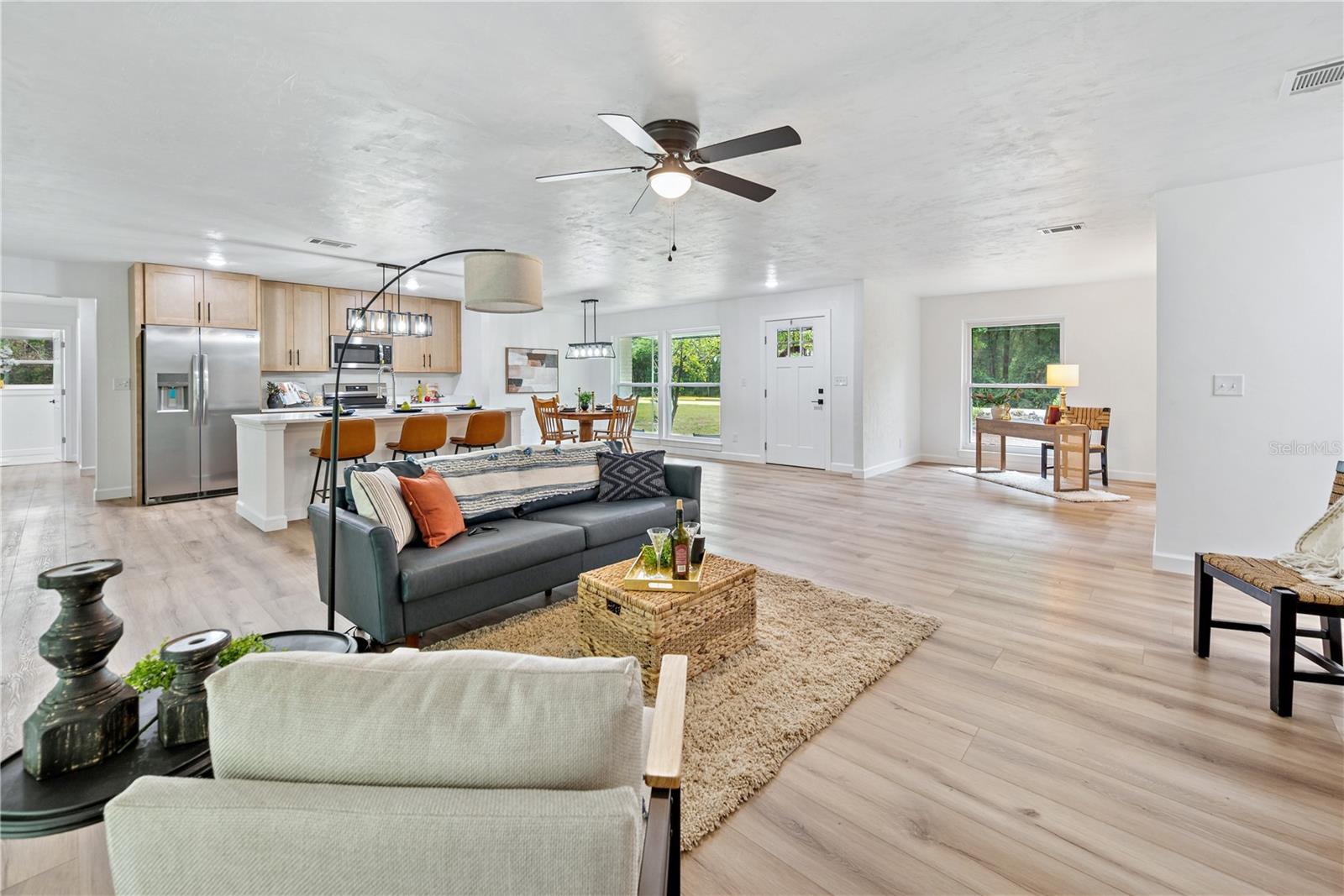 Esta casa de 4 quartos e 3 banheiros fica em um lote de 0,69 acres em High Springs e oferece uma mistura confortável de espaço e função. Um grande salão com banho completo acrescenta flexibilidade, enquanto atualizações recentes fornecem tranquilidade com um novo telhado, novo AC e novo piso LVP. A cozinha possui bancadas de quartzo e armários de qualidade, e a suíte master inclui armários duplos e entrada privada para a varanda dos fundos. A luz natural preenche os espaços por janelas grandes e uma porta de vidro deslizante que se abre para uma generosa varanda privada. O quintal sombreado é acentuado com árvores maduras, árvores frutíferas e um jardim de ervas, criando um cenário privado para desfrutar. Uma garagem para dois carros completa a propriedade. Convenientemente localizado perto do centro de High Springs e a poucos minutos do rio Santa Fe e das Springs locais. (O agente de listagem tem propriedade desta casa.)