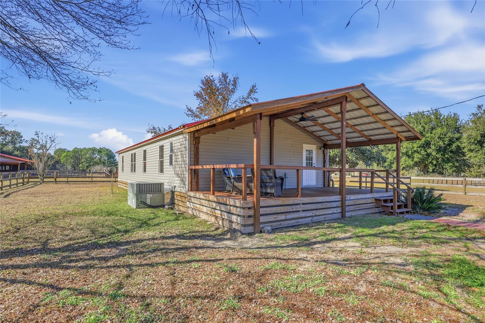 Experimente o máximo em serenidade rural com esta deslumbrante propriedade equestre de 5 acres localizada em uma tranquila rua arborizada em High Springs! Esta propriedade versátil é um sonho para os amantes de cavalos e também para os agricultores amadores, apresentando um celeiro de 4 baias no corredor central totalmente equipado com esteiras, ventiladores, dormentes, suportes para selas e uma sala de arreios isolada e ecológica. A residência é uma casa fabricada meticulosamente atualizada com 3 quartos e 2 banheiros, ostentando um telhado de metal durável de 50 anos e uma extensa lista de atualizações recentes de alto valor para total tranquilidade. As principais melhorias incluem um AC totalmente novo e dutos totalmente novos instalados em 2023, encanamentos totalmente novos, um novo tanque de água quente e novos isolamentos e barreiras de vapor. A casa foi nivelada profissionalmente com amarrações contra furacões e apresenta uma planta aberta, planta de quarto dividida, novo piso de pranchas de vinil de luxo nas áreas de estar e quartos e banheiros atualizados, incluindo banheiro privativo com pia dupla e box amplo de vidro com azulejos personalizados. A iluminada e iluminada cozinha da ilha apresenta piso de cerâmica novo, balcões de fórmica, eletrodomésticos de aço inoxidável e entrada para a lavanderia, completa com lavadora e secadora. A infraestrutura externa é igualmente impressionante com uma nova bomba de poço e casa de bombas isolada, celeiro de estacionamento com 3 vagas, área de armazenamento de feno e uma linha elétrica dedicada pronta para sua futura banheira de hidromassagem. Os terrenos são protegidos com novas cercas ao redor da casa e dois amplos pastos cercados, todos iluminados por luz solar ao redor da casa e do celeiro. Ao contrário de muitas propriedades rurais, você ficará perfeitamente conectado com a internet por cabo e fibra óptica disponíveis. Desfrute de relaxamento ou entretenimento na grande varanda coberta com vista para sua área privada. Sem restrições HOA ou CDD, você tem a liberdade de criar seu próprio santuário a apenas 13 km das charmosas boutiques e restaurantes do centro de High Springs. Esta localização privilegiada fica a apenas 19 km de Poe e Gilchrist Blue Springs, com fácil acesso à I-75 e Gainesville. Tudo está pronto para o seu próximo capítulo; tudo o que falta são seus cavalos, móveis e senso de aventura. Agende hoje mesmo seu tour privado e comece a viver o estilo de vida que você sempre sonhou!