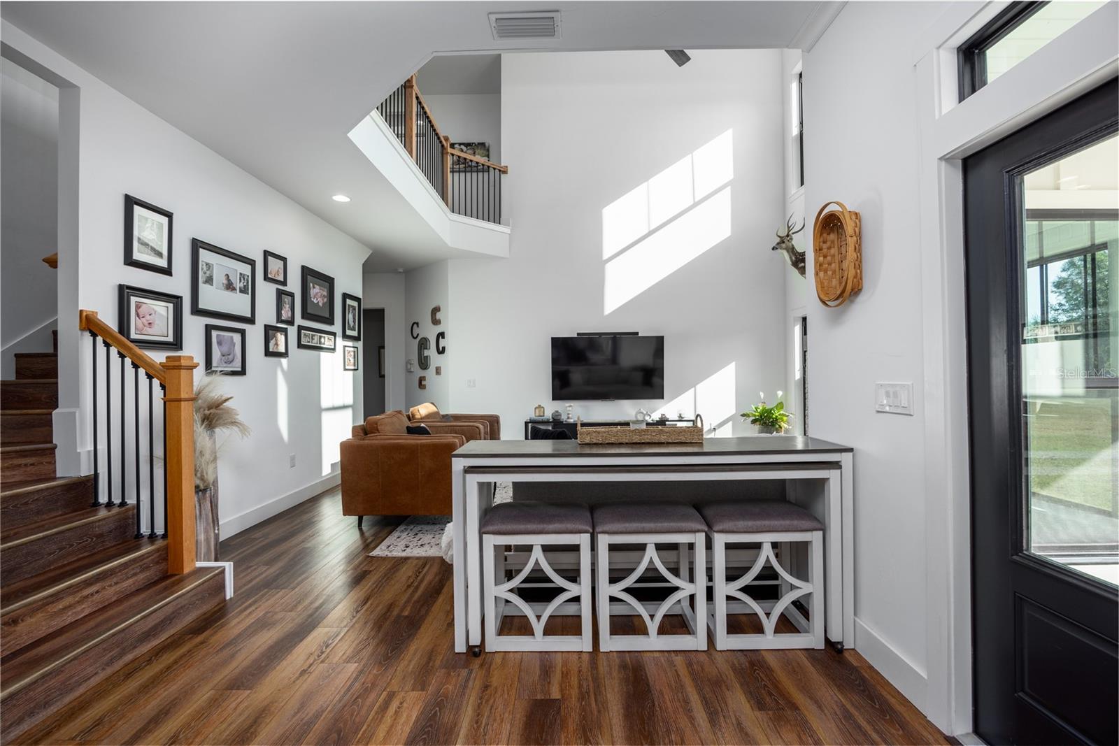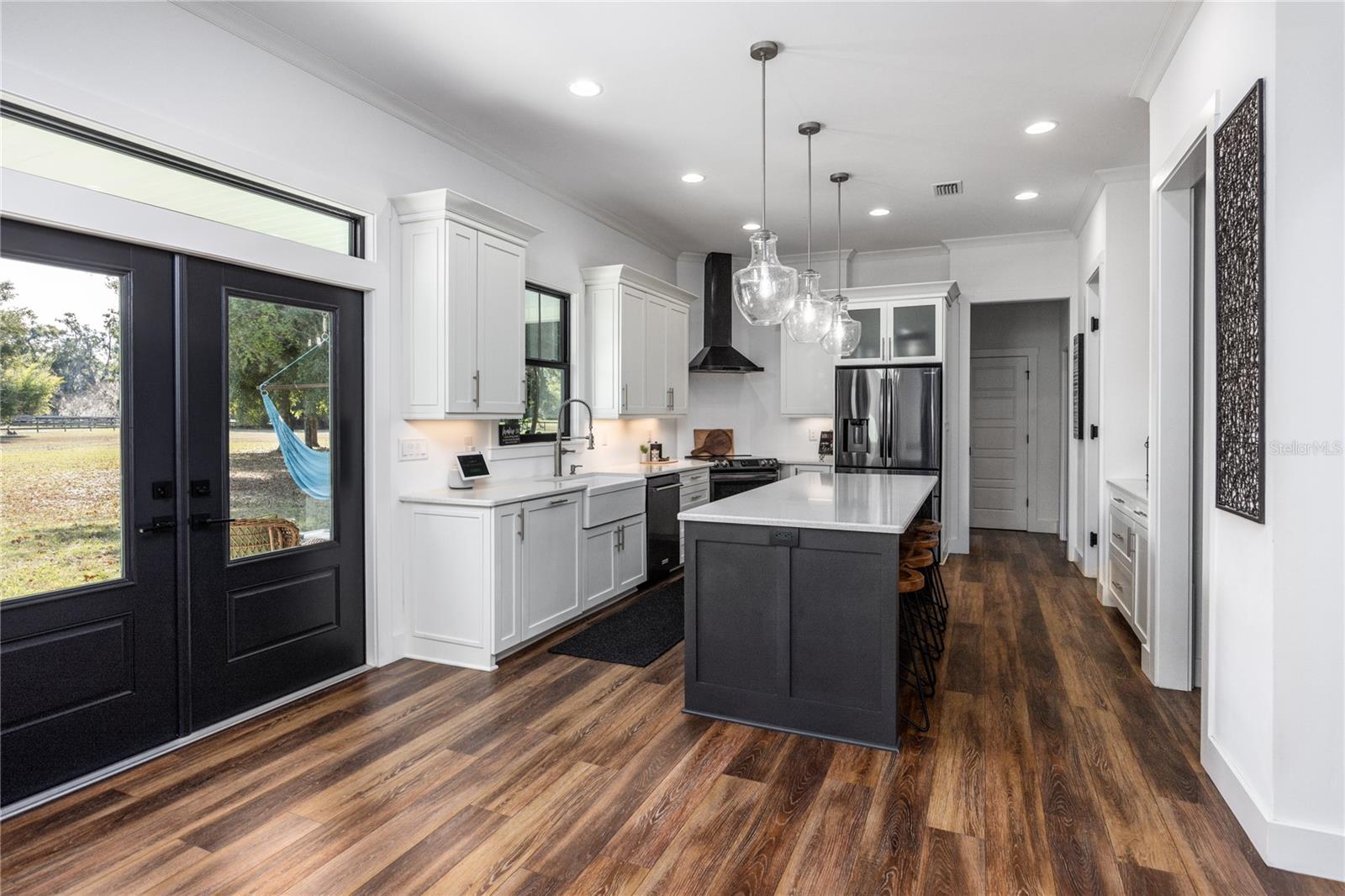 Situada em mais de cinco hectares pitorescos no cobiçado bairro de Cinnamon Hills, em High Springs, esta deslumbrante casa de fazenda moderna de 5 quartos e 3,5 banheiros combina charme atemporal com design sofisticado e sofisticado. Belo paisagismo, garagem com entrada lateral, detalhes em colunas de madeira e uma impressionante porta frontal de madeira criam um apelo excepcional, enquanto a grande varanda frontal convida você a desacelerar e desfrutar de manhãs ou noites tranquilas em cadeiras de balanço. Entre em uma entrada arejada e iluminada que imediatamente parece acolhedora. Logo na entrada, um escritório privativo oferece o espaço ideal para trabalhar em casa. O coração da casa é a sala de estar com um manto aconchegante e janelas amplas, que se abrem perfeitamente para a cozinha dos sonhos de um chef, com amplo espaço de trabalho e uma despensa com porta de vaivém que é ao mesmo tempo funcional e charmosa. Uma passarela cuidadosamente projetada fora da cozinha inclui um bar seco que se abre para a sala de jantar, perfeito para receber e receber reuniões. A espaçosa lavanderia está convenientemente localizada ao lado da cozinha, junto com um lavabo que oferece acesso direto ao quintal, ideal para ambientes internos e externos. A entrada da garagem leva a um mudroom dedicado, tornando as idas e vindas do dia a dia fáceis e organizadas. A suíte principal está localizada no andar principal, oferecendo um retiro privativo com área de estar própria, dois closets e um banheiro tipo spa completo com banheira de imersão, box amplo e pia dupla. O acesso duplo por escadas, tanto pela entrada quanto pela área de estar principal, leva ao andar de cima para quatro quartos adicionais e dois banheiros completos, proporcionando flexibilidade para hóspedes, familiares ou uso multiuso. Uma área comum compartilhada no andar de cima cria o recanto de leitura perfeito ou um espaço de lounge tranquilo. Nos fundos, relaxe na varanda coberta com vista para o amplo quintal e imagine as infinitas possibilidades...uma futura piscina, jardim, espaços de entretenimento ao ar livre ou simplesmente desfrutando da paz e privacidade que a vida na área oferece. Tudo com garagem para 2,5 carros e muito espaço! Esta propriedade excepcional oferece espaço, estilo e serenidade, tudo a poucos minutos do charme de High Springs. Esta localização é conveniente para I-75, Gainesville, Alachua e Lake City!