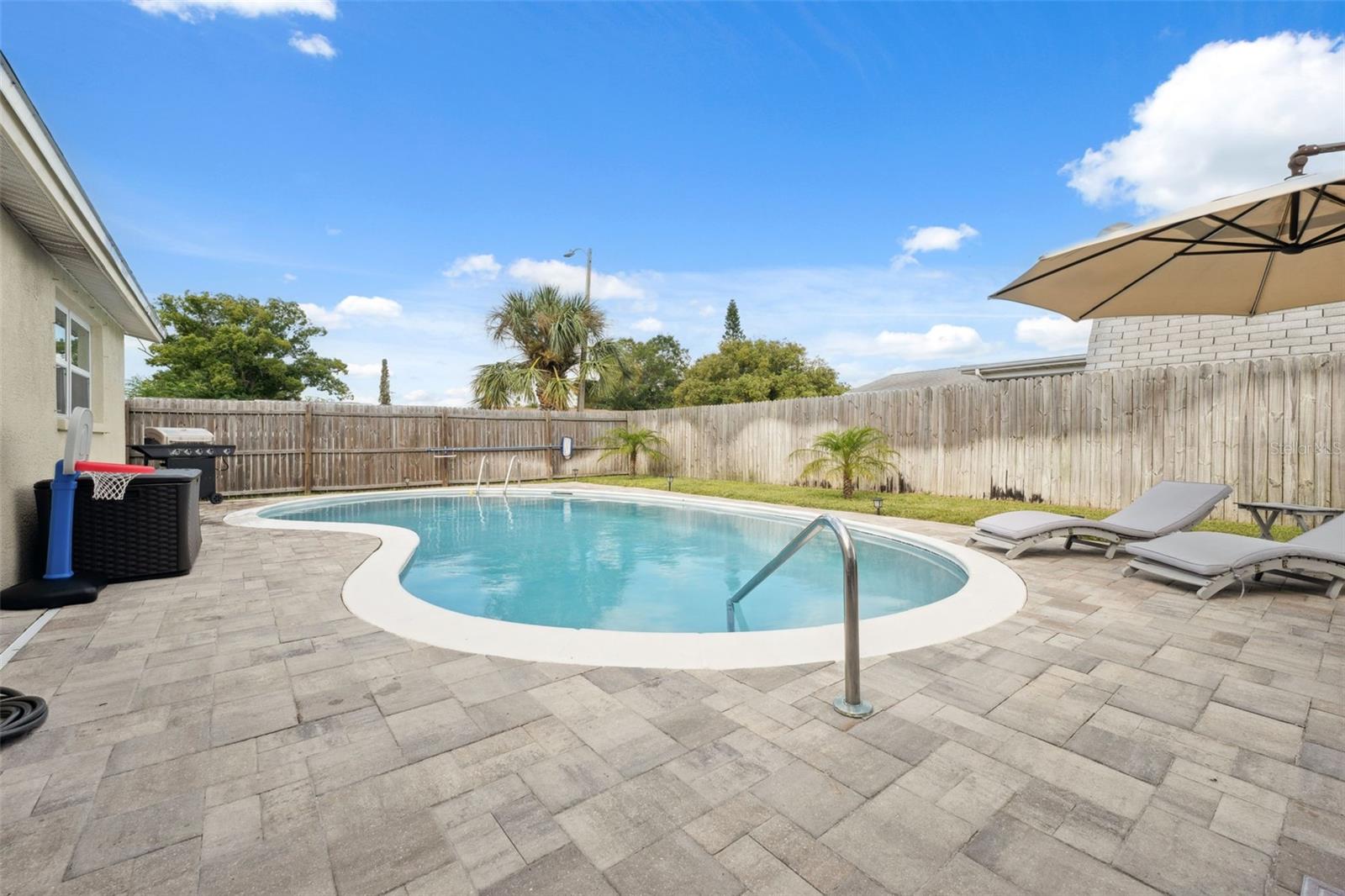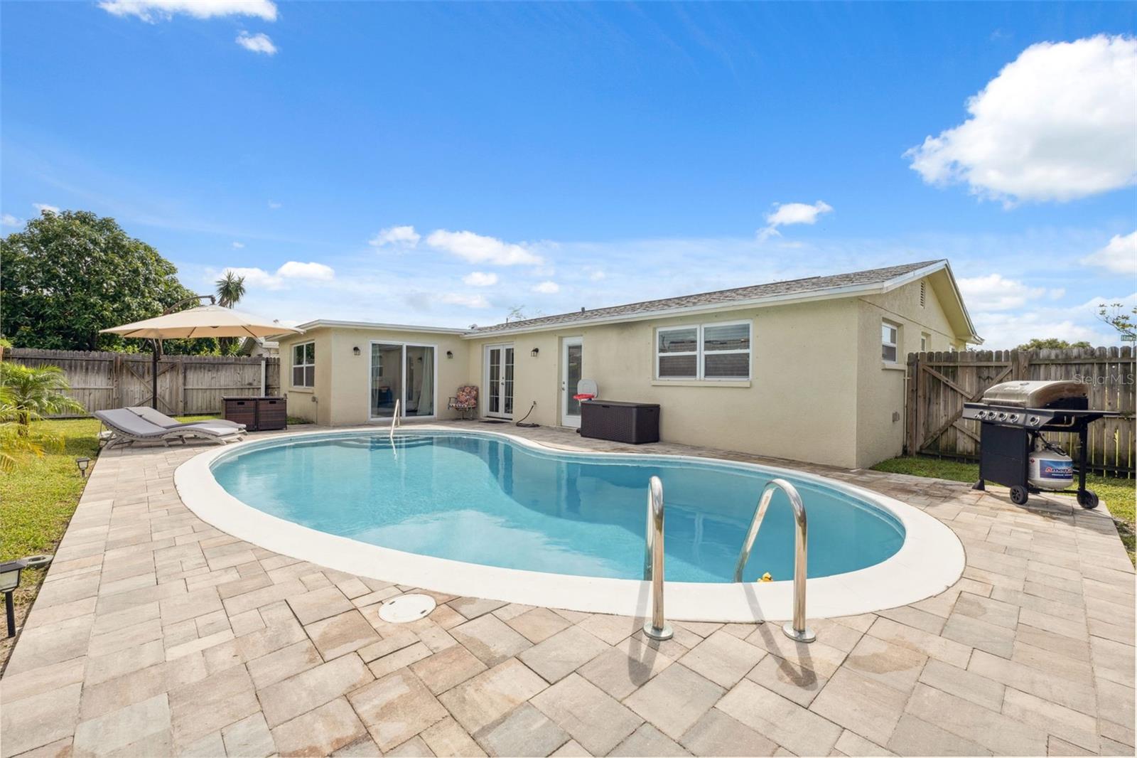 Bem-vindo a esta linda casa com PISCINA DE ÁGUA SALGADA de 3 quartos e 2 banheiros em um terreno de esquina no coração de férias! NENHUM DANO ou INUNDAÇÃO durante furacões. Perfeito como residência principal ou arrendamento gerador de rendimento. Atualmente arrendado como arrendamento de curta duração. Esta joia foi completamente remodelada em 2020, apresentando um TELHADO mais novo, janelas mais novas e piso de pranchas de vinil luxuoso. A cozinha atualizada possui bancadas de GRANITO e eletrodomésticos de AÇO INOXIDÁVEL. PLANTA ABERTA E ILUMINADA. Um banheiro abre diretamente para a PISCINA AQUECIDA - perfeita para viver ao ar livre! SEM HOA, SEM CDD e uma localização em zona NÃO INUNDANTE, esta casa oferece tranquilidade e estilo. Pronto para morar e cheio de potencial. Perto de PRAIAS, comércio e entretenimento. Não perca esta oportunidade!