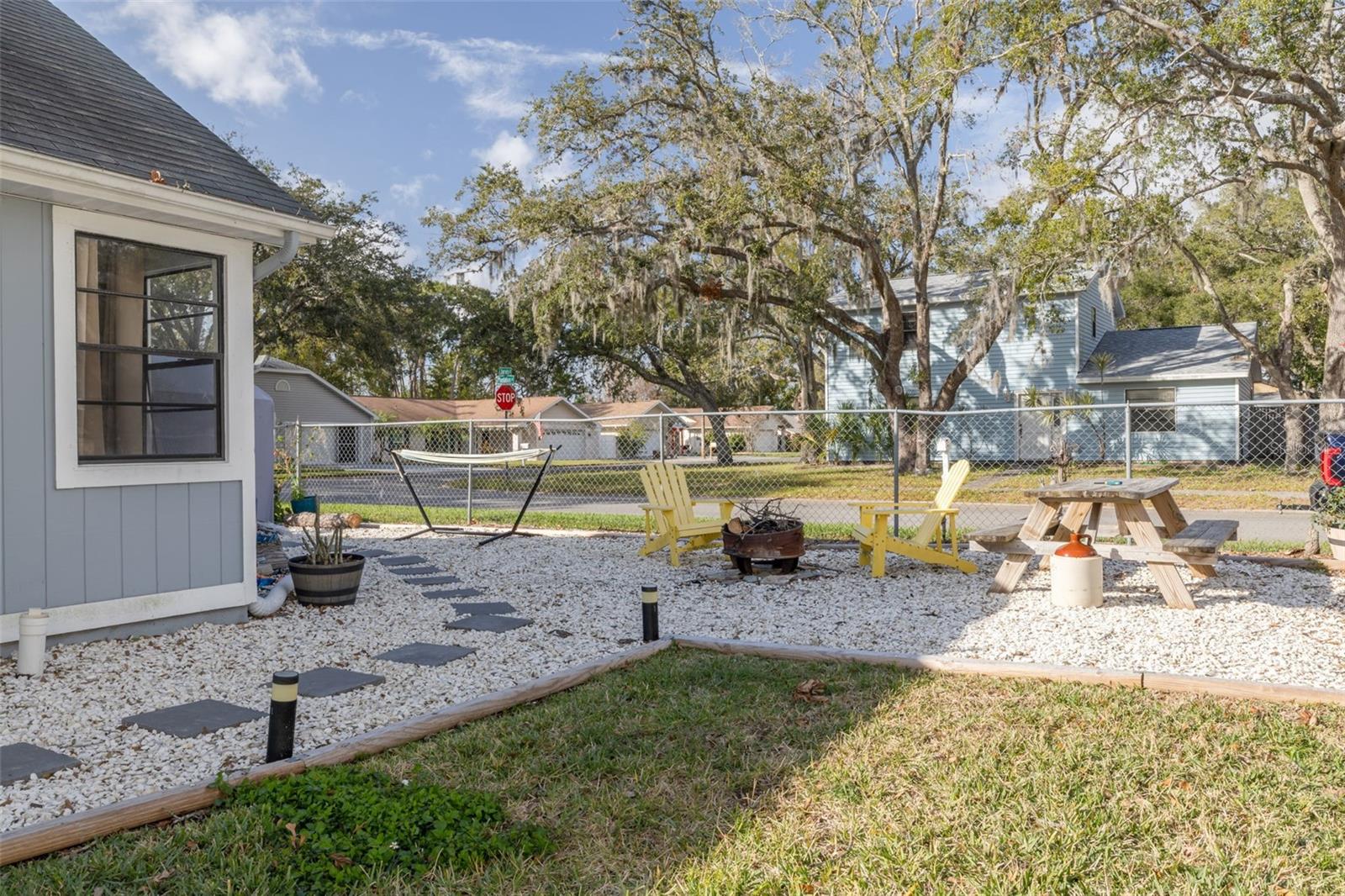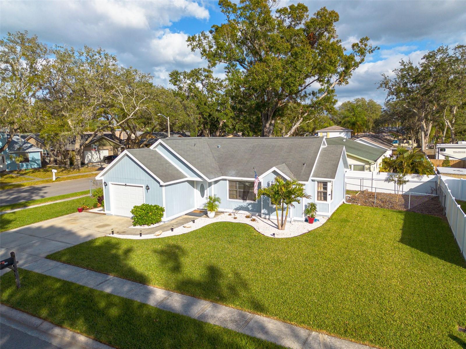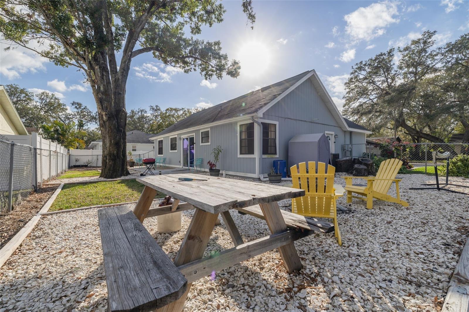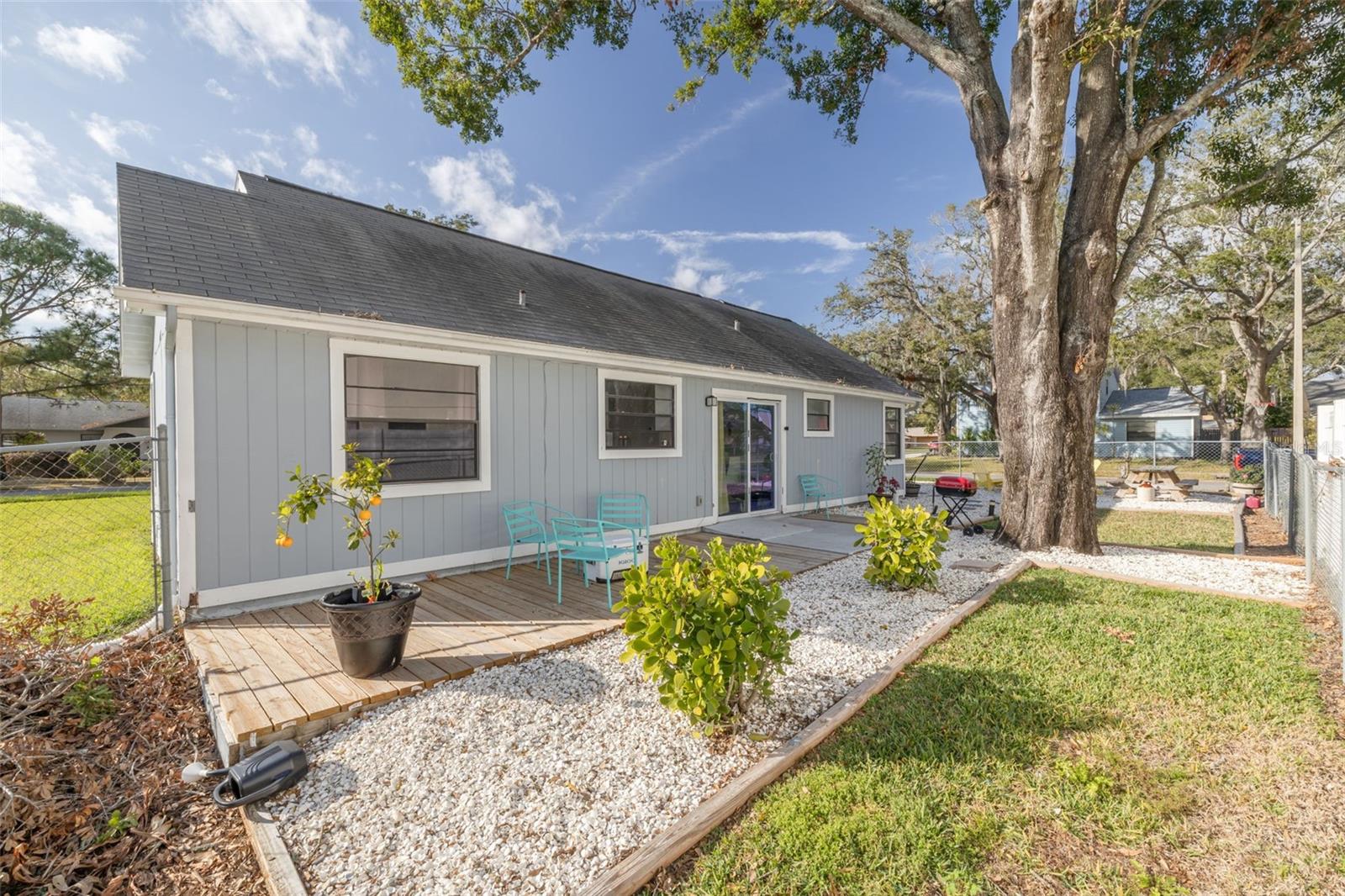 Casa costeira na esquina! Agora é a sua oportunidade de possuir esta adorável casa azul com um quintal imaculadamente mantido -fornecido !!!! Esta encantadora casa de 2 quartos e 1,5 banheiro tem um teto lindos altos e abobadados na área de estar, dando à casa uma sensação espaçosa. O novo A/C mantém tudo em ordem de funcionamento, bem como uma unidade de A/C dividida na garagem, tornando a roupa confortável com a lavadora/secadora incluída. Cozinha atualizada com bancadas em granito e banheiro atualizado, deixa você querendo nada. Novos pisos de ladrilhos de grãos de madeira por toda parte. Imagine -se vivendo o sonho da Flórida com um incrível espaço ao ar livre, completo com deck e fogueira. Agende sua exibição hoje!