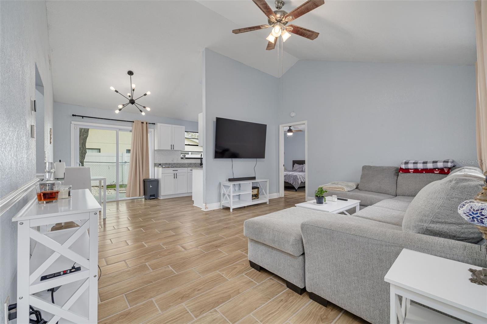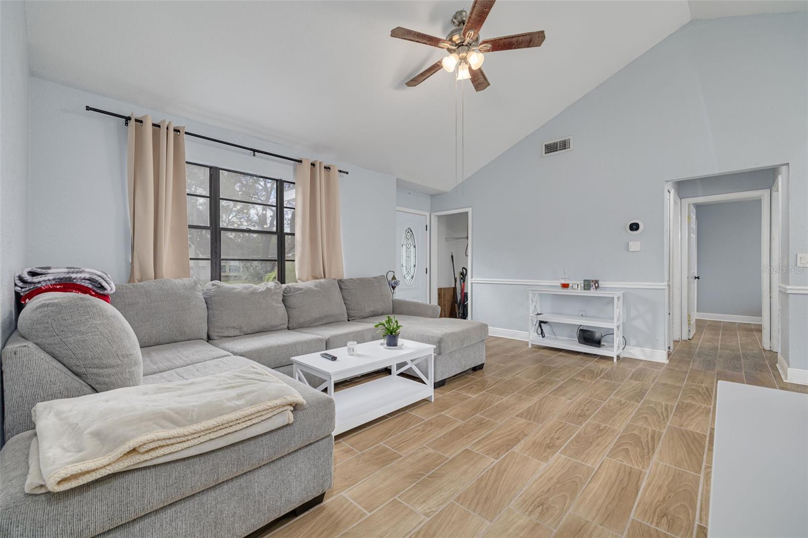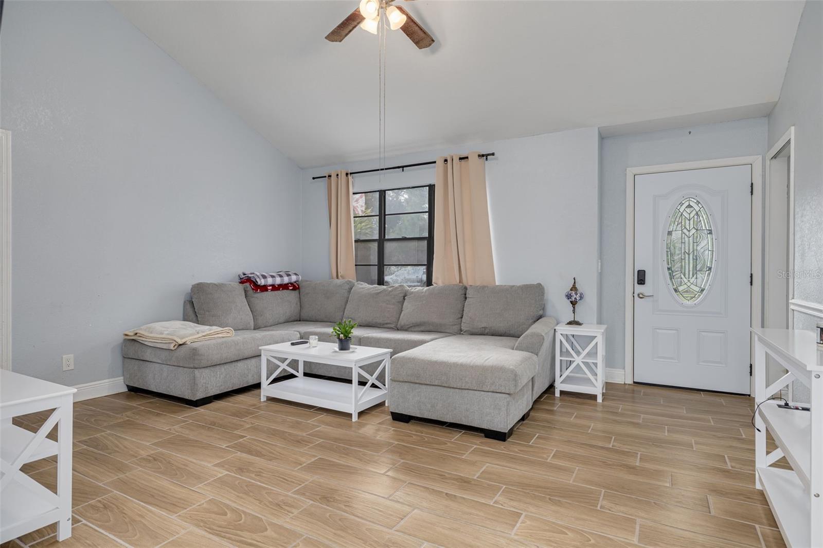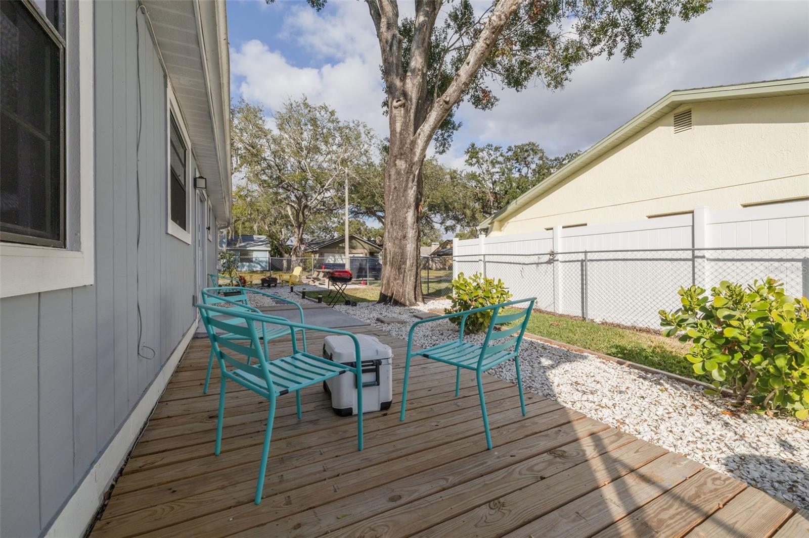 Casa costeira na esquina! Agora é a sua oportunidade de possuir esta adorável casa azul com um quintal imaculadamente mantido -fornecido !!!! Esta encantadora casa de 2 quartos e 1,5 banheiro tem um teto lindos altos e abobadados na área de estar, dando à casa uma sensação espaçosa. O novo A/C mantém tudo em ordem de funcionamento, bem como uma unidade de A/C dividida na garagem, tornando a roupa confortável com a lavadora/secadora incluída. Cozinha atualizada com bancadas em granito e banheiro atualizado, deixa você querendo nada. Novos pisos de ladrilhos de grãos de madeira por toda parte. Imagine -se vivendo o sonho da Flórida com um incrível espaço ao ar livre, completo com deck e fogueira. Agende sua exibição hoje!