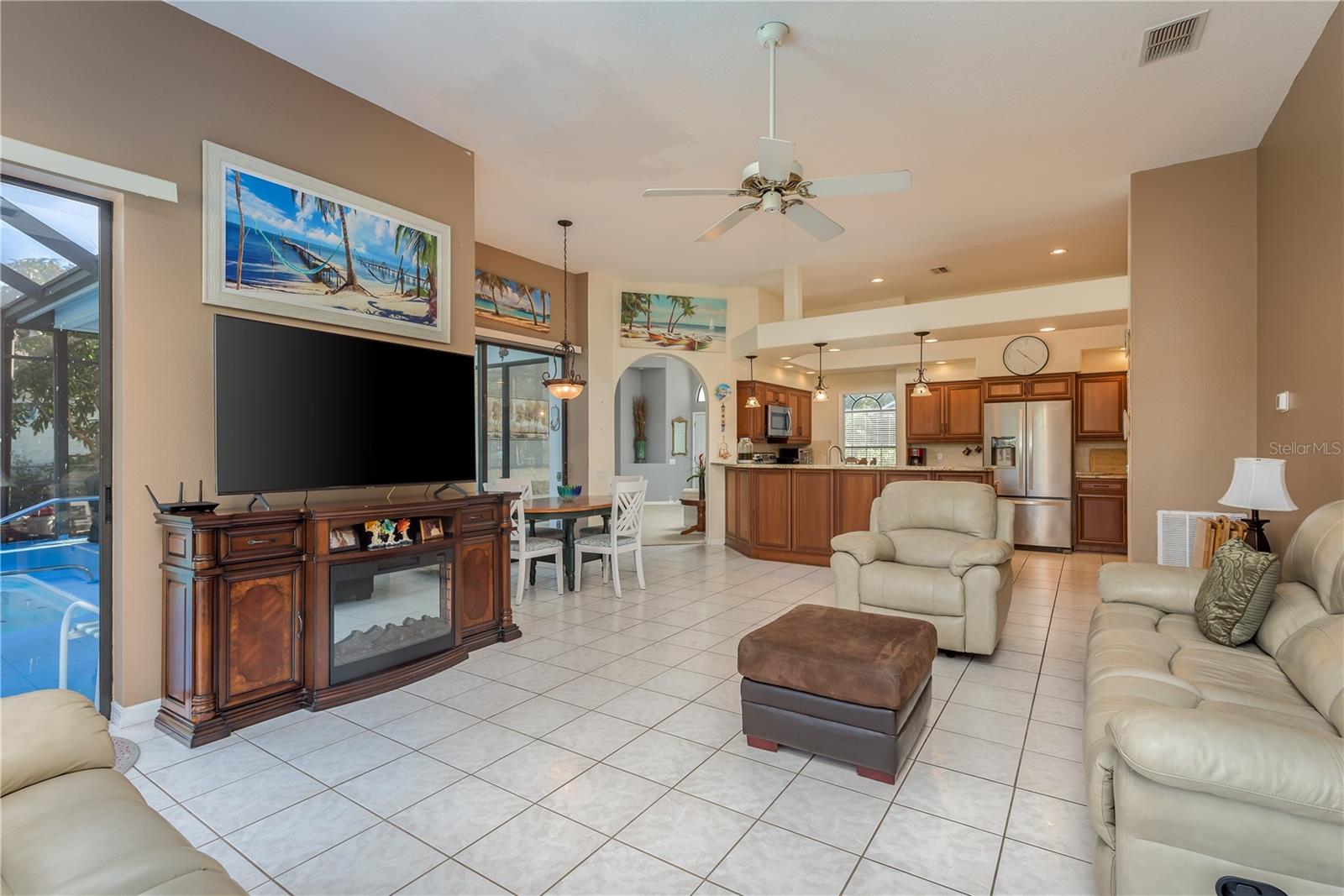Redução de preços, layout bonito e elegante, casa de grande escala, com piso plano aberto com a combinação de sala de estar/área de jantar, enorme janela da frente decorativa, prateleiras arquitetônicas, molduras de coroa e controles deslizantes de parede para parede na parte de trás da casa se abre para a grande piscina e a área de Lanai, com vista para os jardins e os frutos que farão de qualquer jardineira. A sala de estar/jantar se abre para a cozinha bem decorada e a enorme sala da família, também emoldurada por controles deslizantes de parede a parede, permitindo vistas para toda a área traseira. Esta cozinha de tamanho generoso possui balcões de granito, utensílios de aço inoxidável, cargas de armários (muitos com empate) grande península com muito espaço para bancos de bares iluminados com iluminação pingente, iluminação de teto e armário de despensa e é flanqueado pela conveniente lavanderia completa com a pia de utilidade, mais armários e utilidade. Desde o final da sala da família, o corredor se abre para o segundo quarto brilhante, que poderia facilmente dobrar como um escritório convidativo com seu teto abobadado, grande janela decorativa e portas francesas que se abrem em direção à sala da família. O banheiro do Hall e o terceiro quarto também estão localizados no corredor. O quarto principal está localizado do outro lado da área de estar, proporcionando grande privacidade e um grande espaço, permitindo caminhadas duplas em armários, deslizadores de parede a parede que se abrem para a área da piscina, uma grande suíte com armário de toalheta separado, 2 áreas de pia de vaidade separadas com balcões de granito, uma banheira de jardim sob uma grande janela decorativa e uma caminhada separada no chuveiro. Esta casa está localizada na bela subdivisão estabelecida do Gulf Trace, convenientemente localizada perto de grandes cruzamentos, mas muito particulares e perto das águas do Golfo, Key Vista Nature Trail, Pasco County Park com praia, rampas de barcos, terrenos de recreação e marinas de Historic Tarpon Springs. Muitas compras e restaurantes próximos por ... apenas 38 minutos para o Aeroporto Internacional de Tampa e 20 minutos para Clearwater. Novo telhado 2024 e quase novo AC, não em uma zona de inundação.